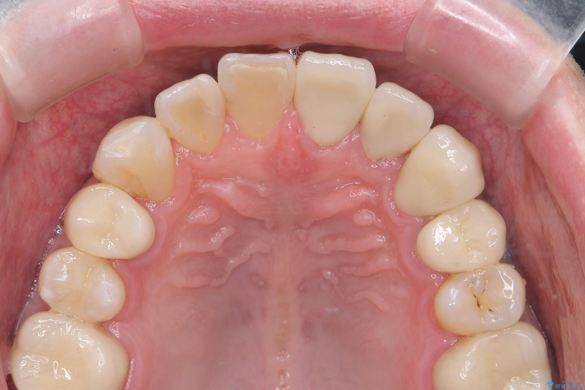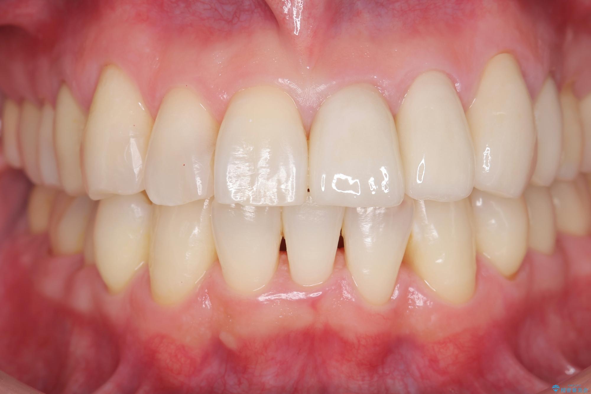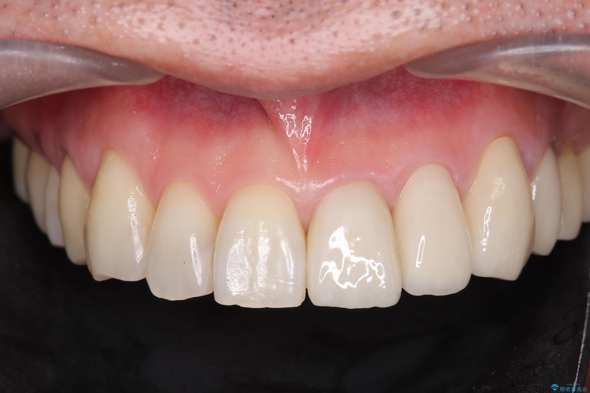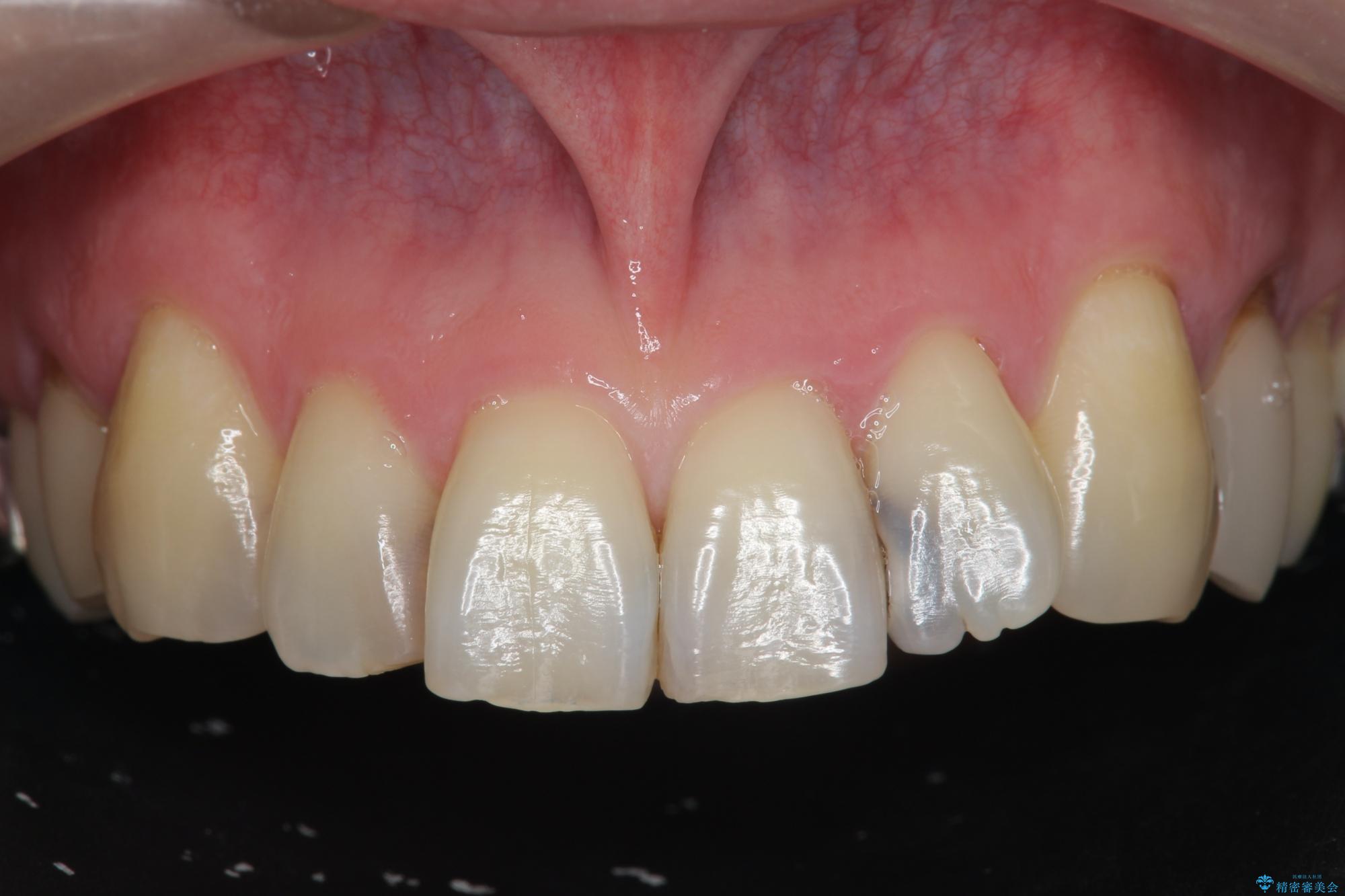 セラミック治療を行うことで、虫歯の再発リスクをおさえ、審美的な前歯の見た目を回復することができました。
