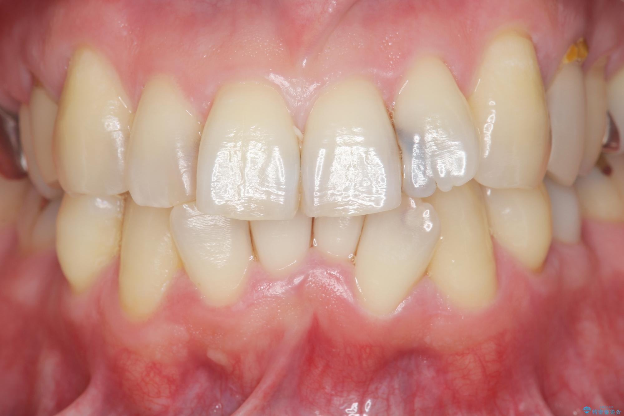 - 前歯の黒い影が大きくなってきている、と虫歯の治療を希望され来院されました。
