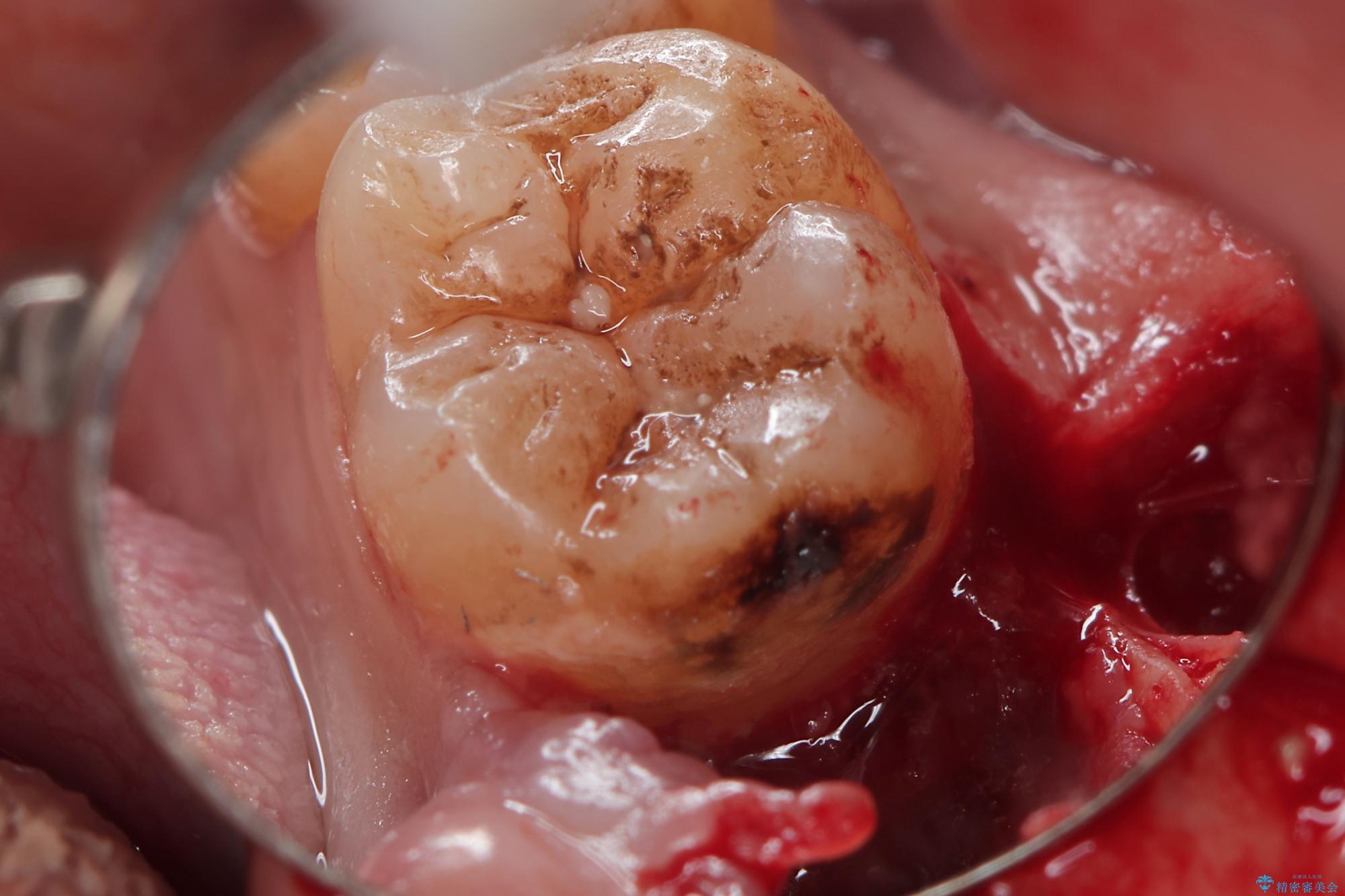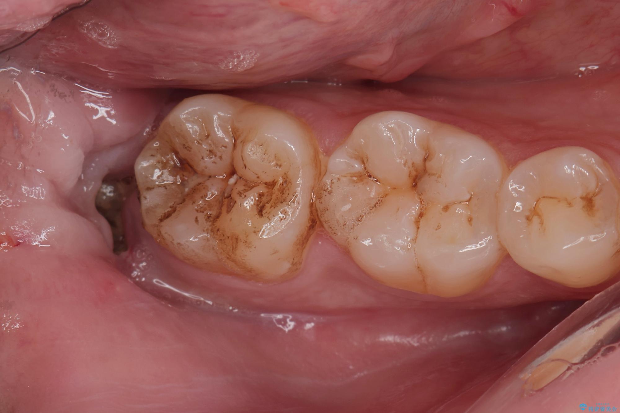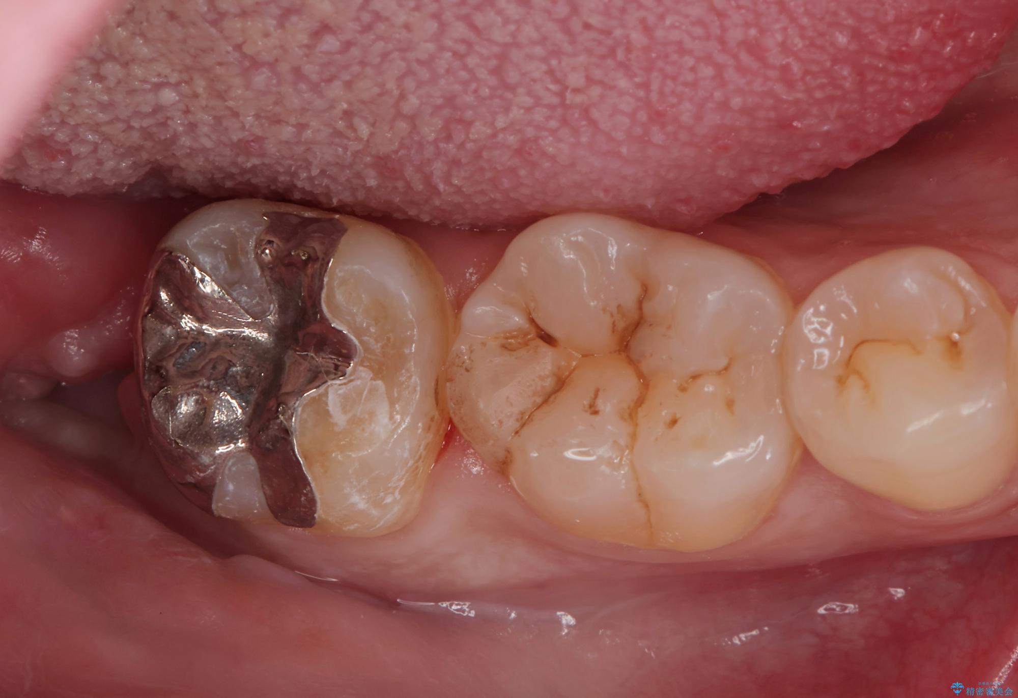 抜歯後、奥歯にも虫歯があったので虫歯を拡大鏡下で取りきり、メタルインレーにて治療を行いました。