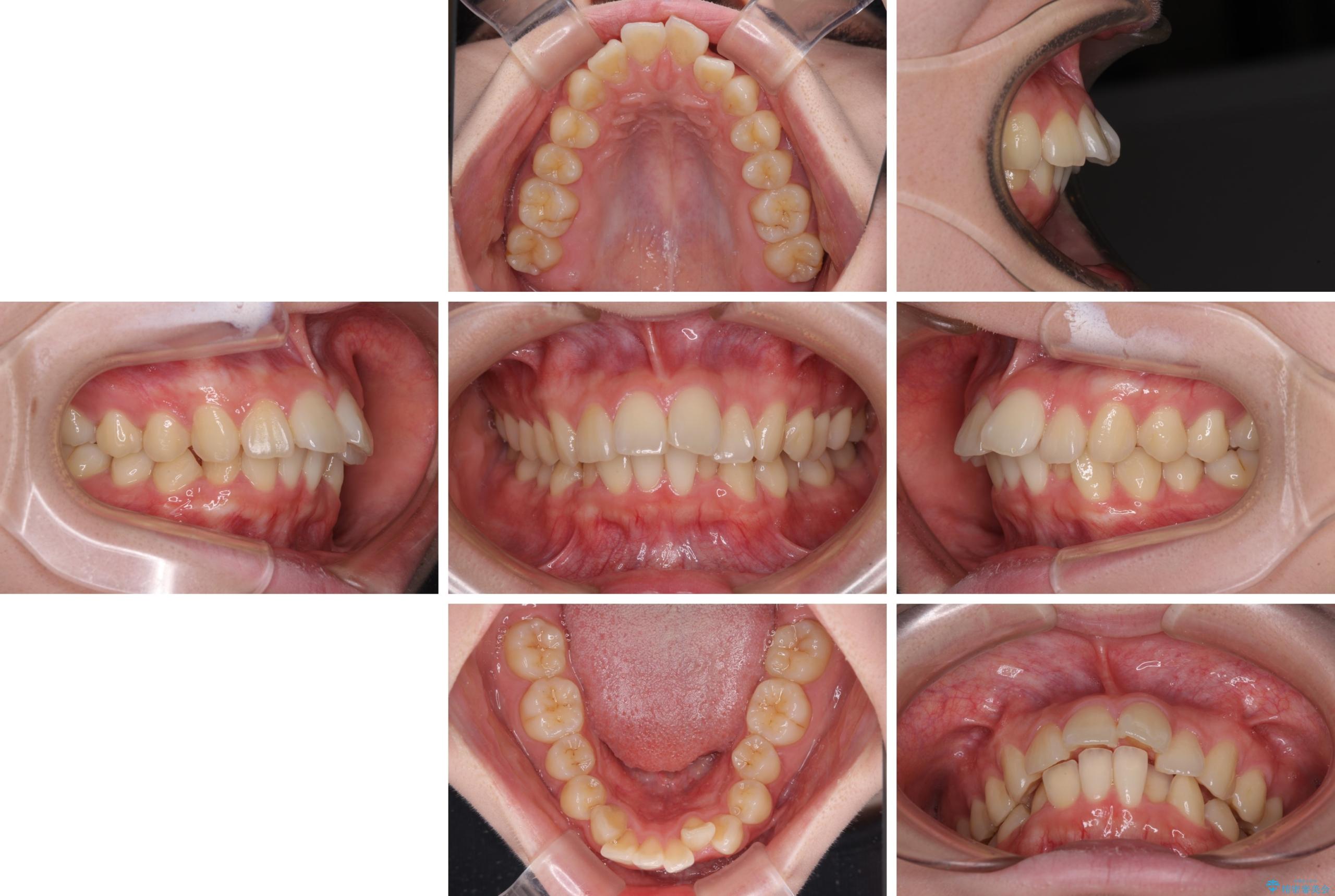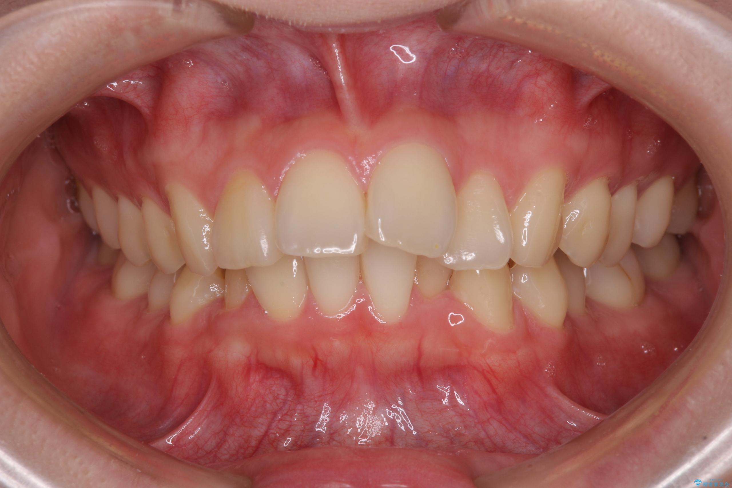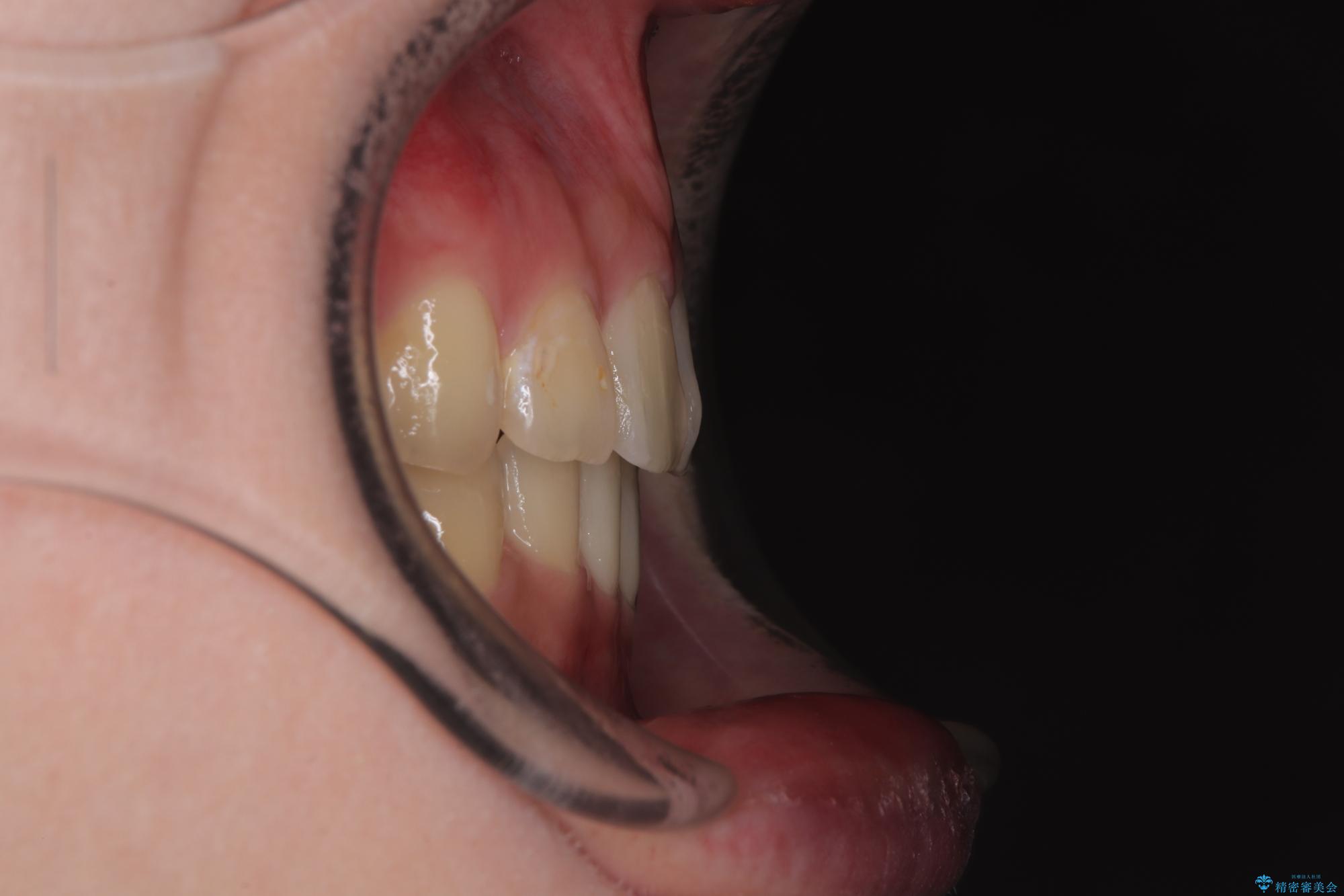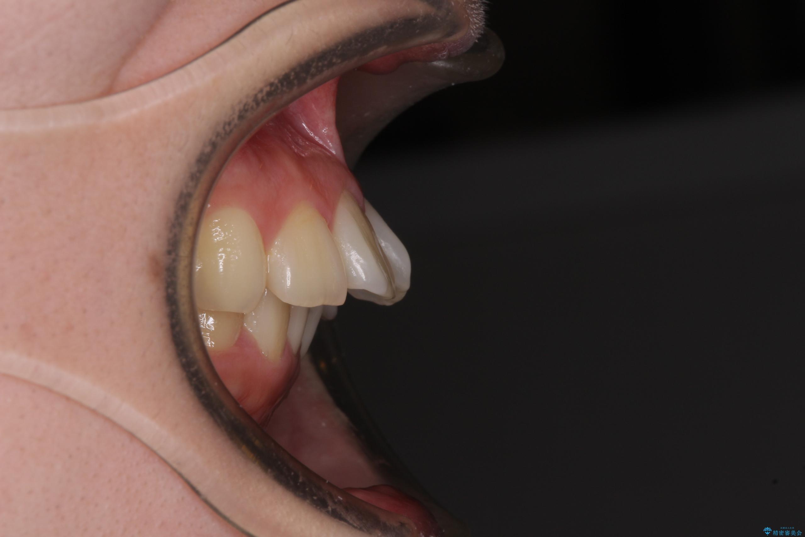 口元の突出感はないものの、上顎前歯が前方に傾斜して突出しており、前後に大きなズレがあり非常に深い咬み合わせとなっていました。