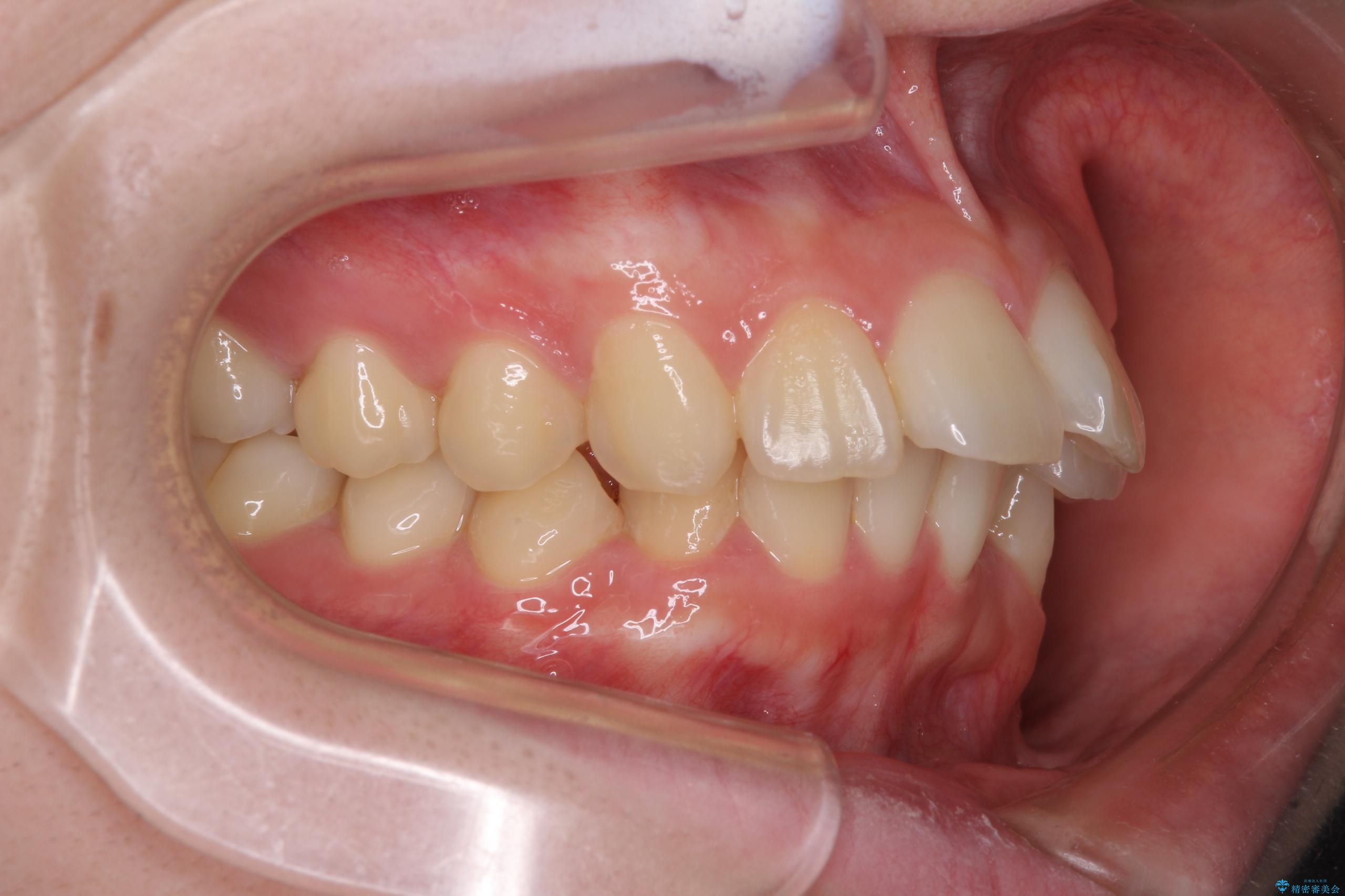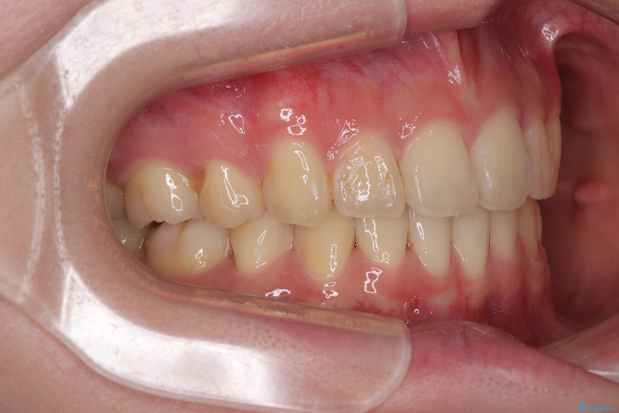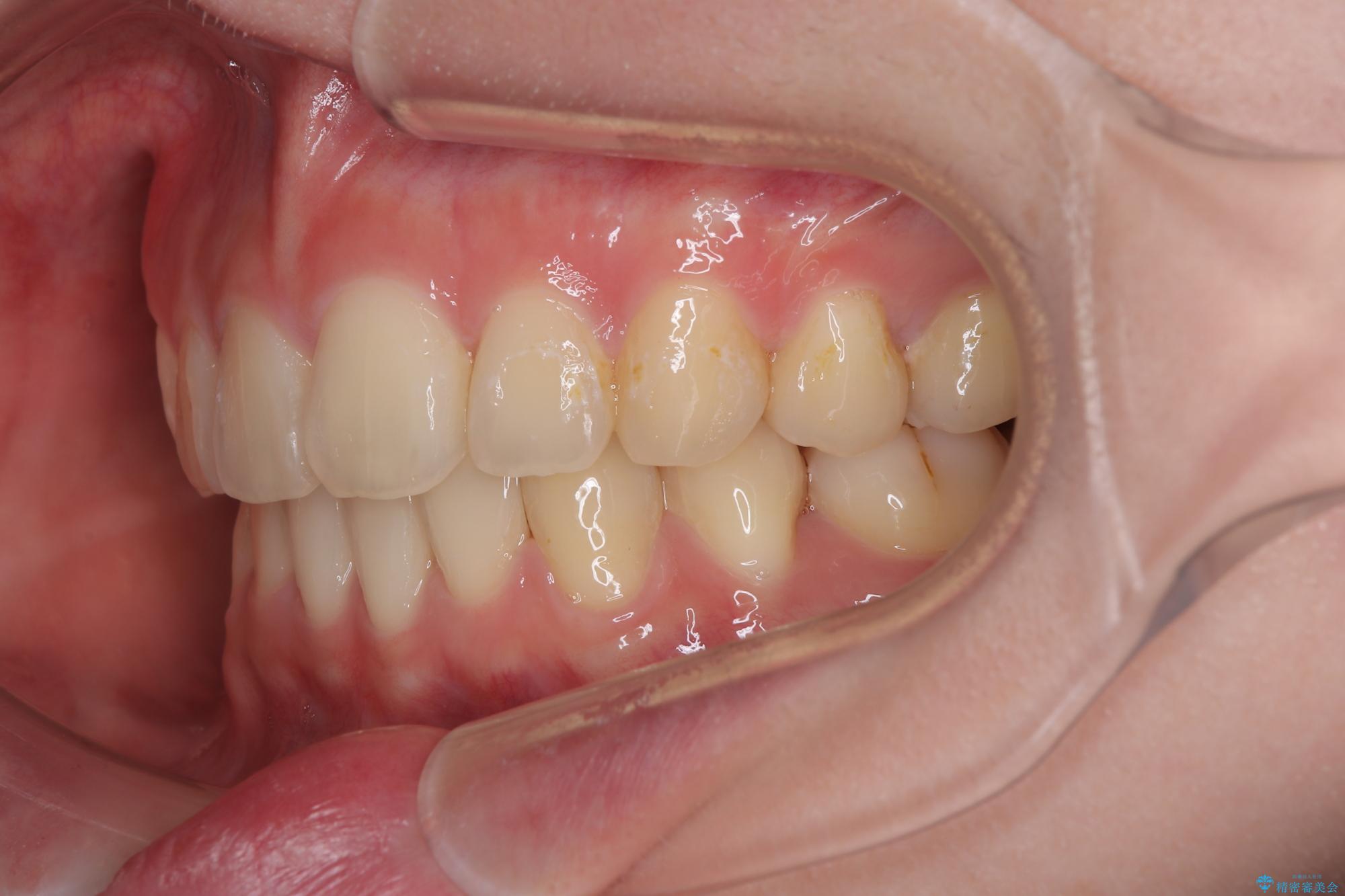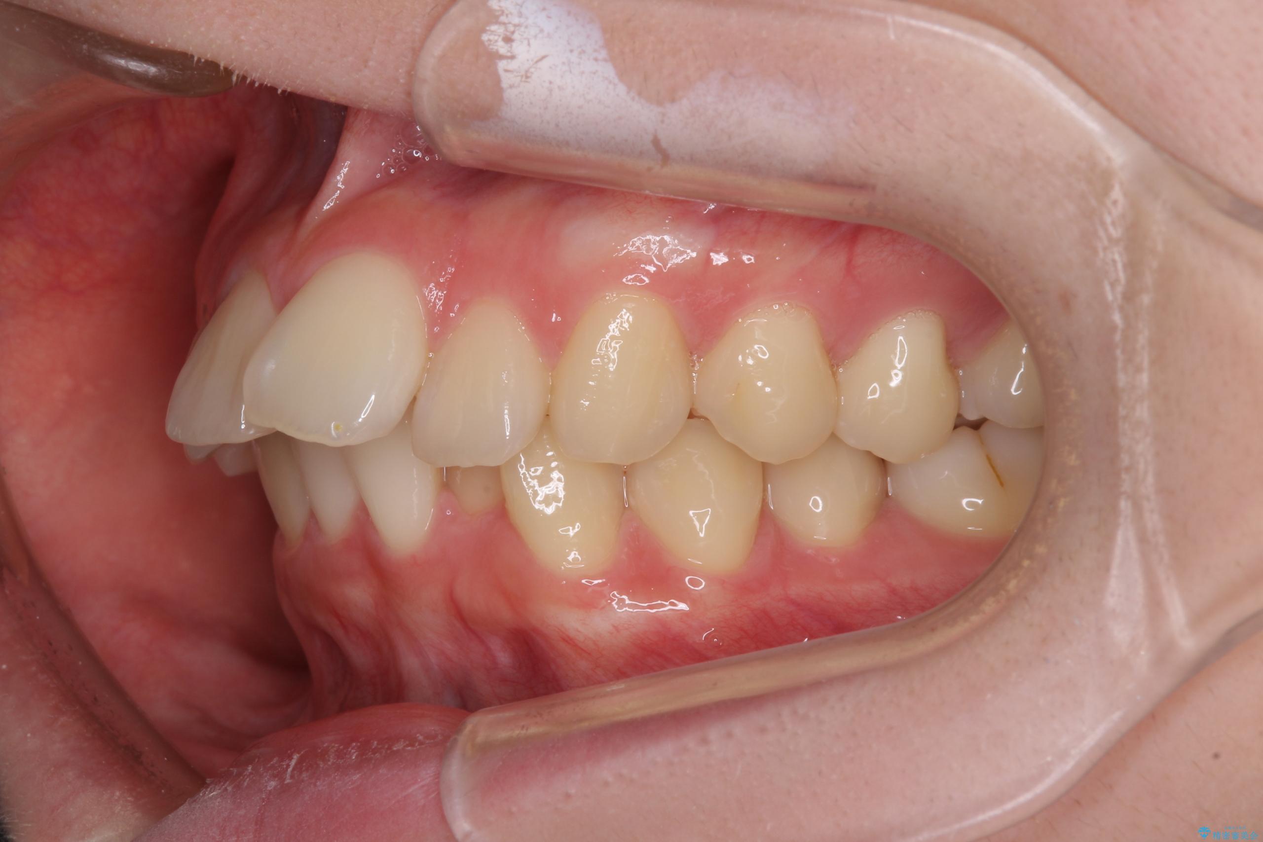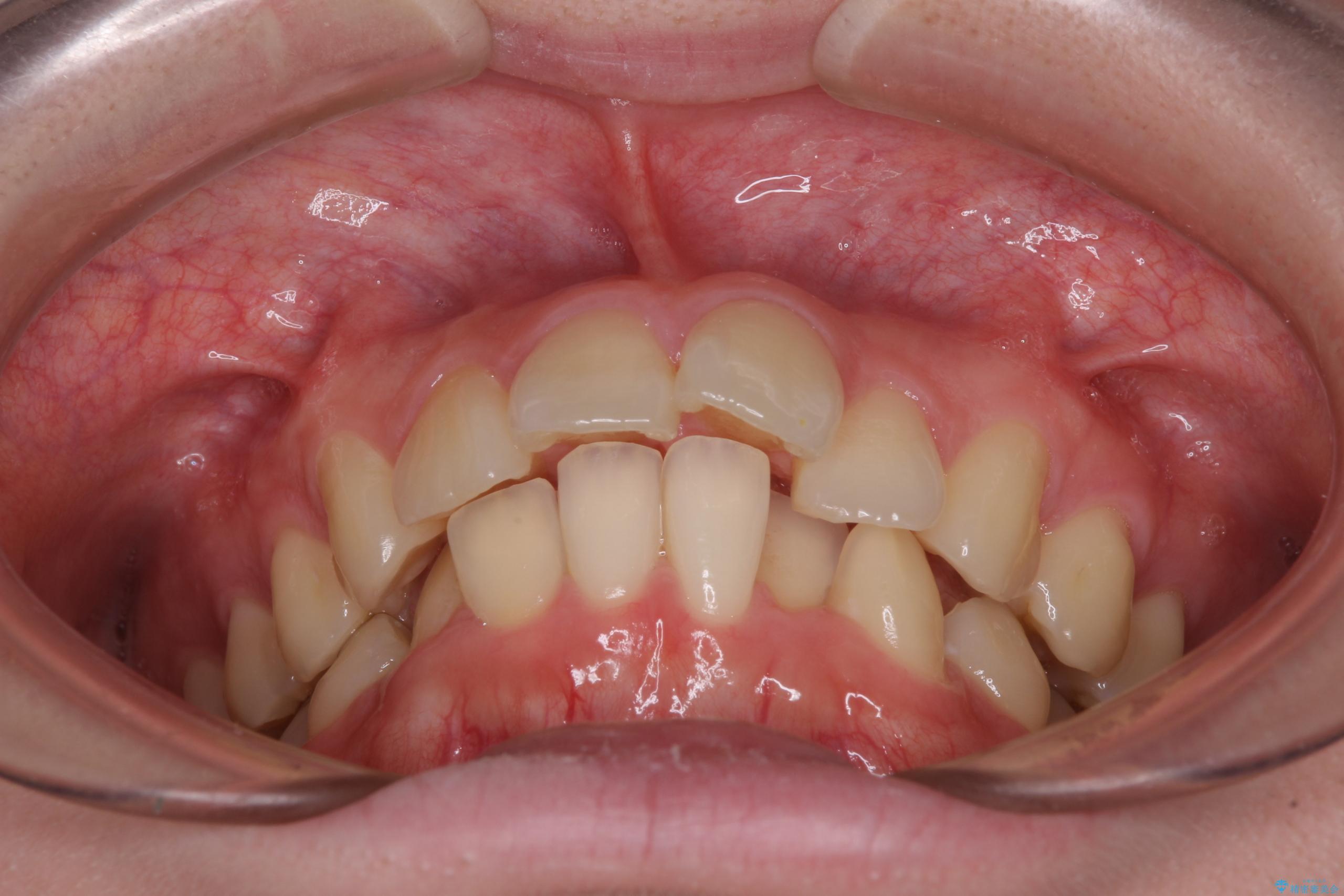 口元の突出感はないものの、上顎前歯が前方に傾斜して突出しており、前後に大きなズレがあり非常に深い咬み合わせとなっていました。