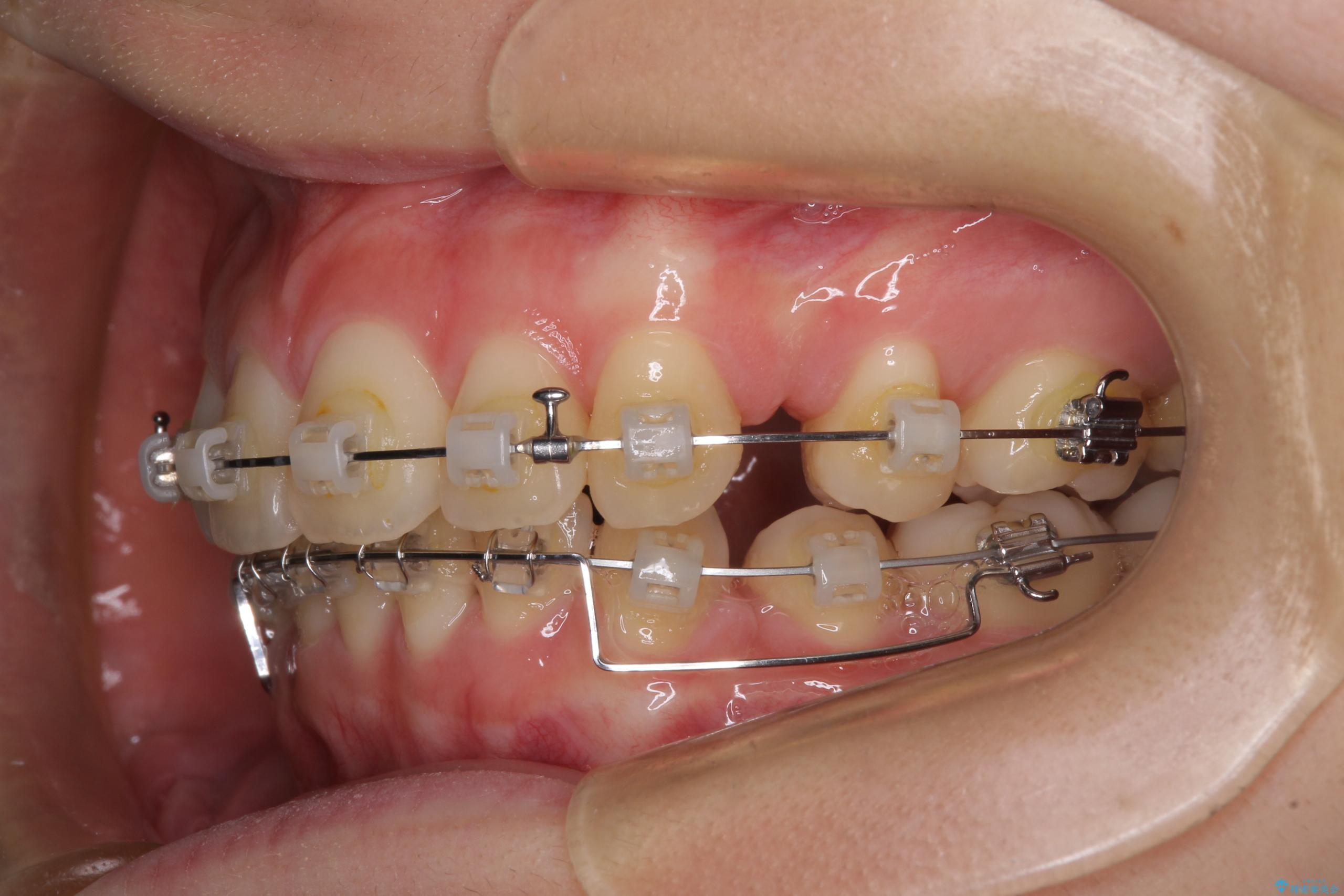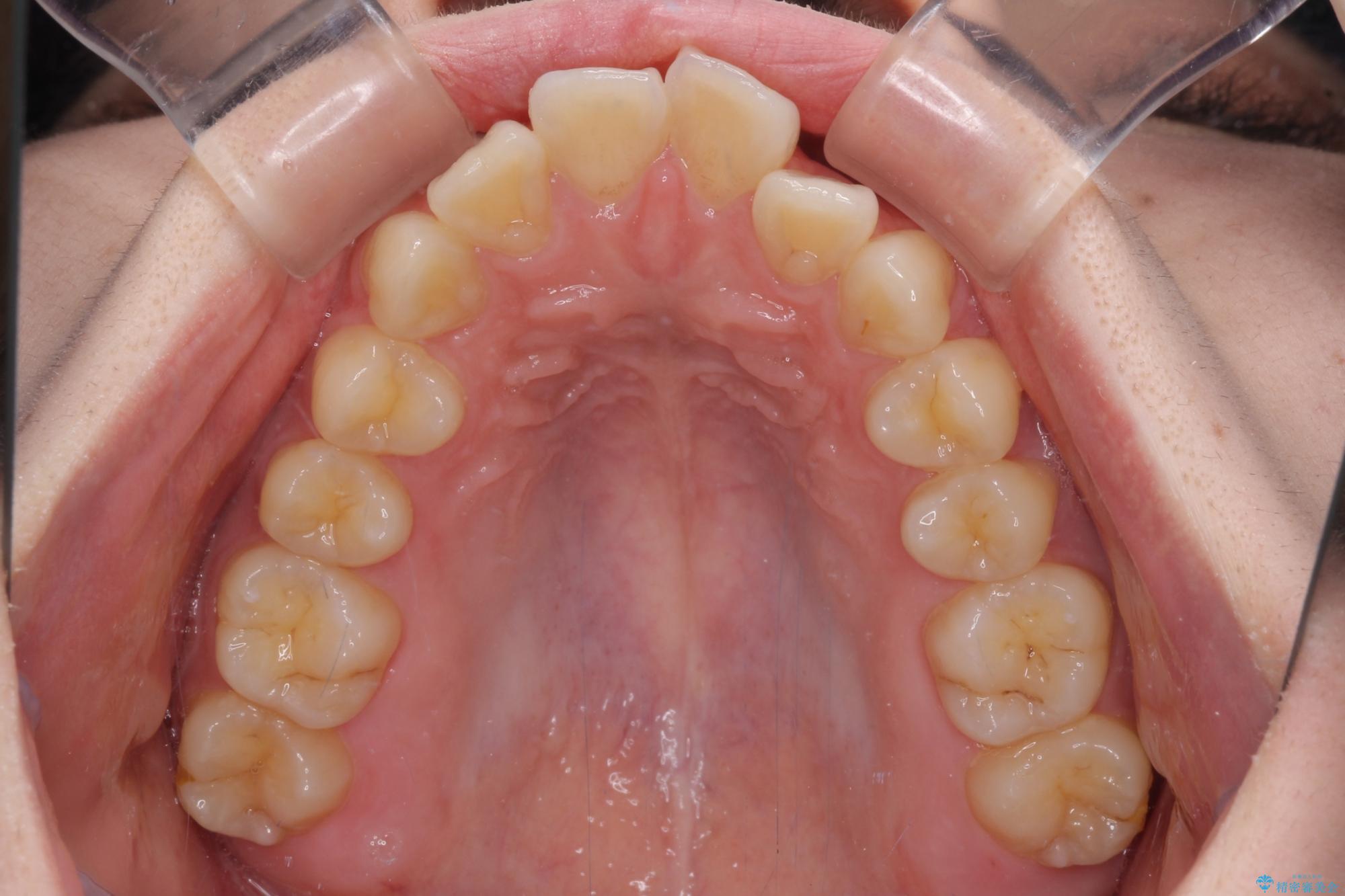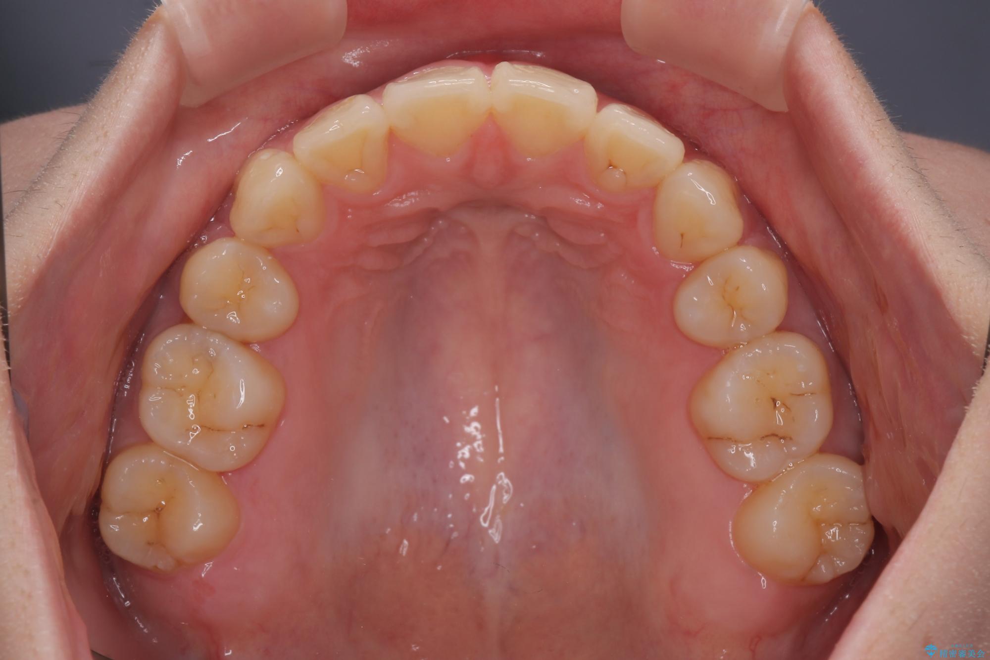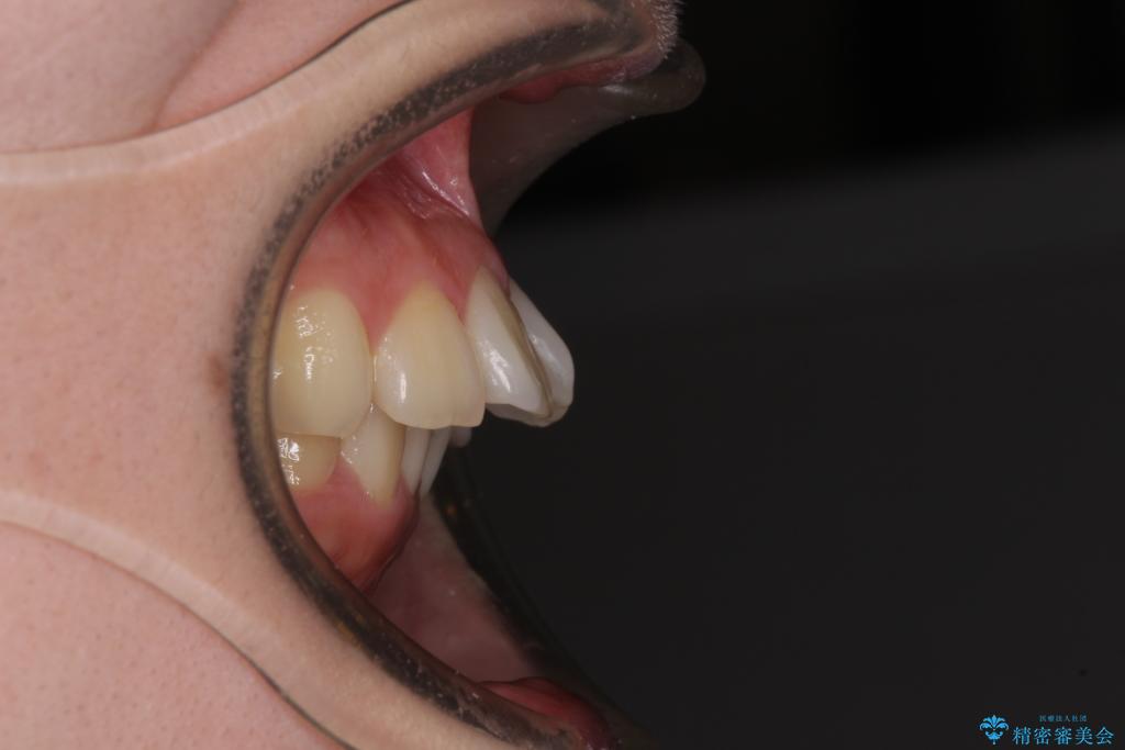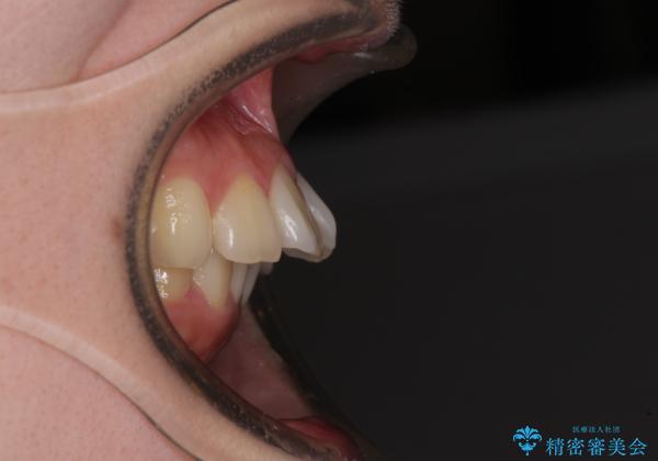 口元の突出感はないものの、上顎前歯が前方に傾斜して突出しており、前後に大きなズレがあり非常に深い咬み合わせとなっていました。