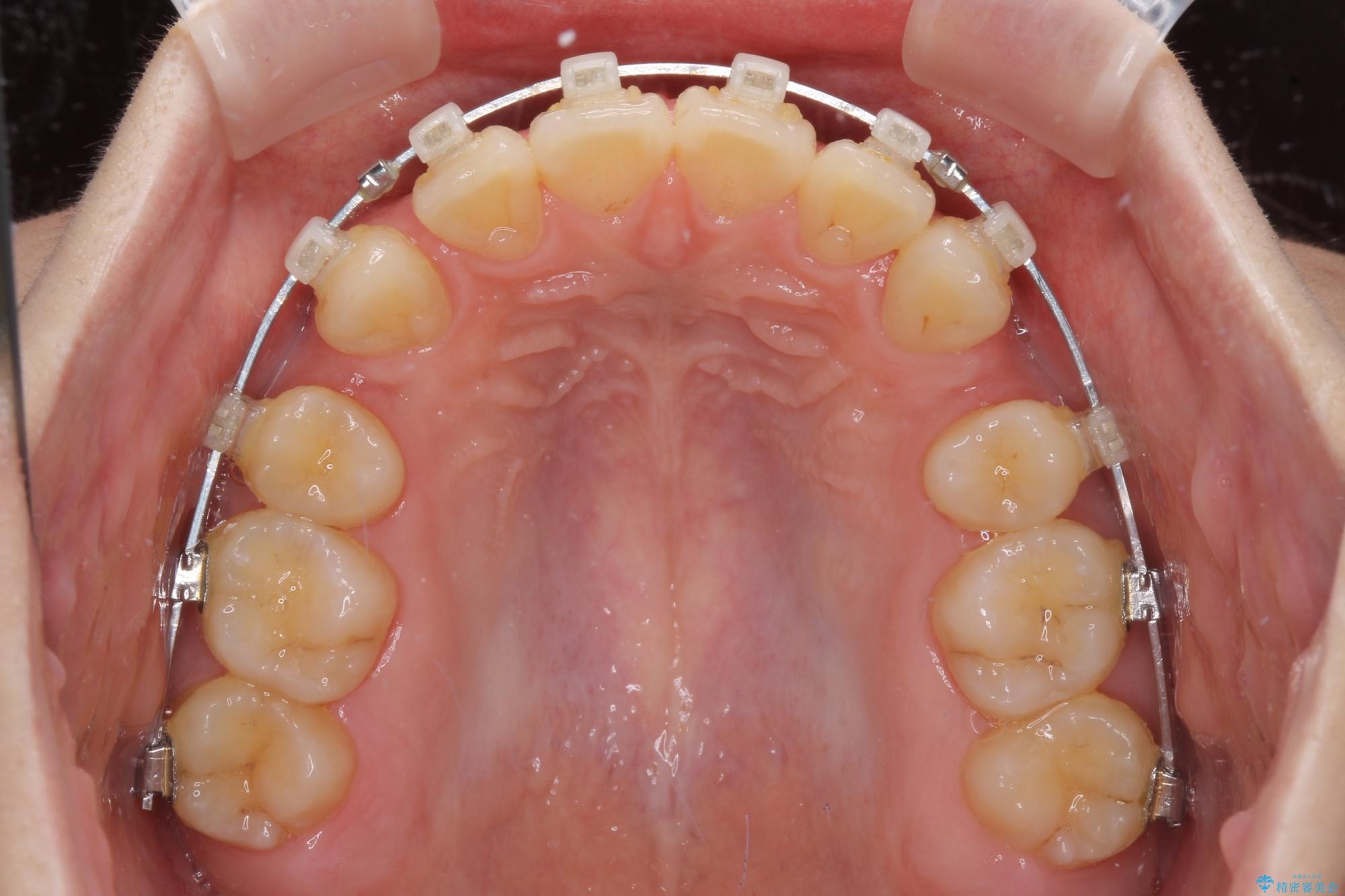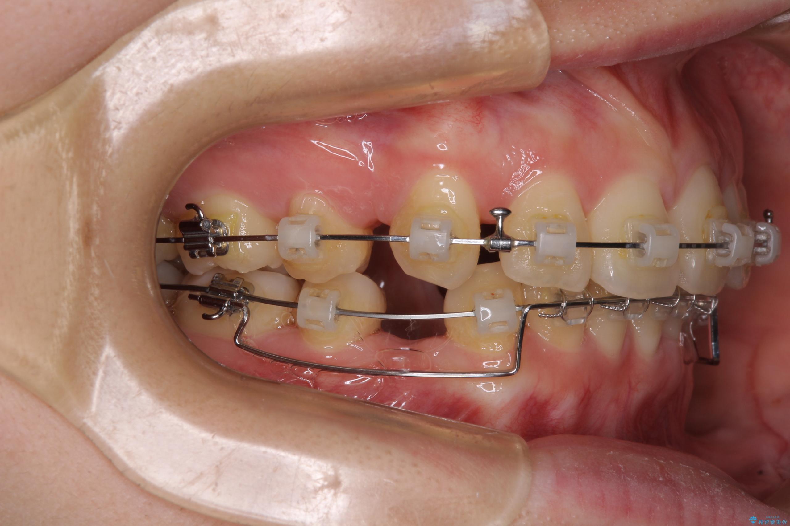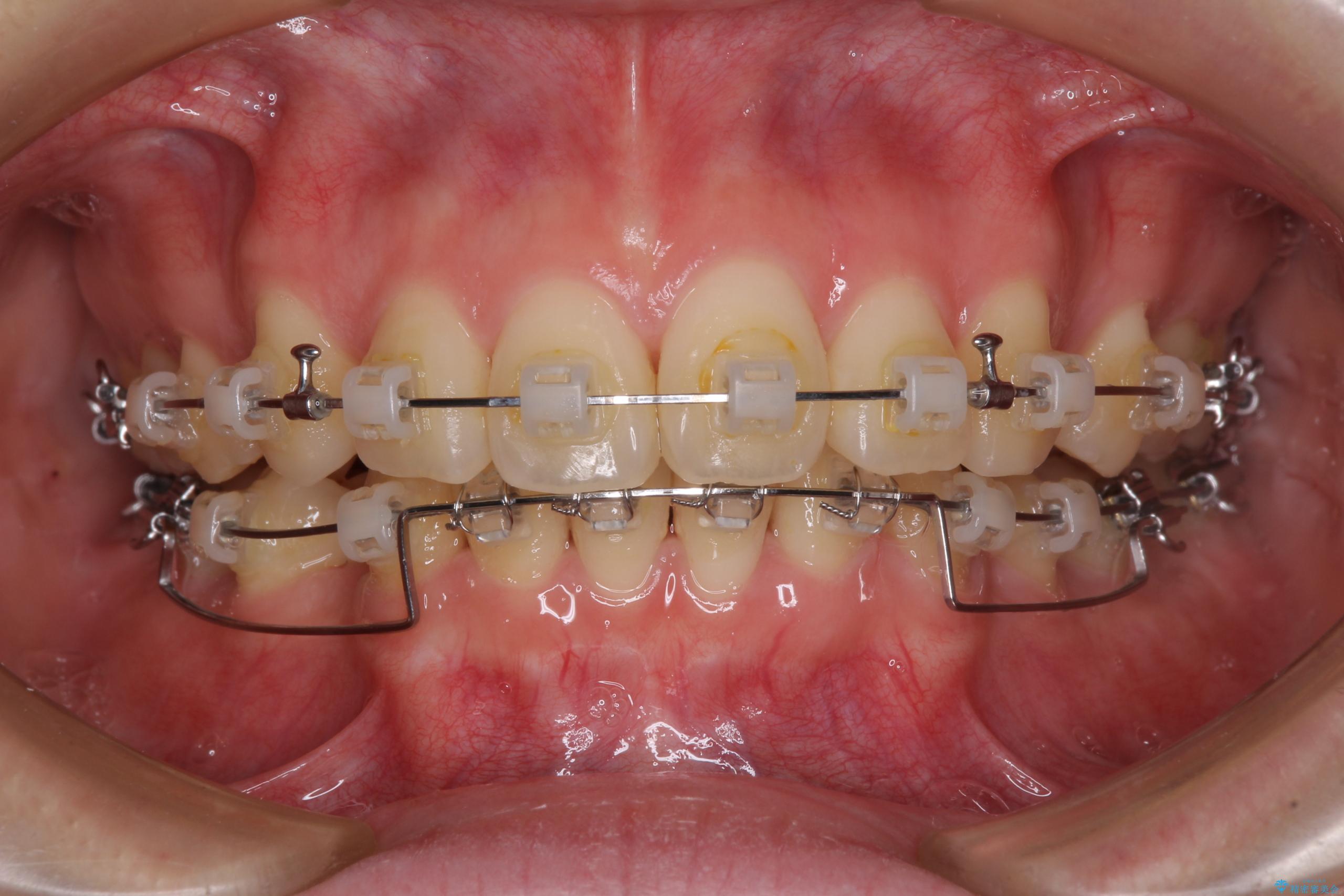 前突間を改善するため、上顎左右の第一小臼歯を抜歯してワイヤー装置にて矯正治療を行うこととしました。