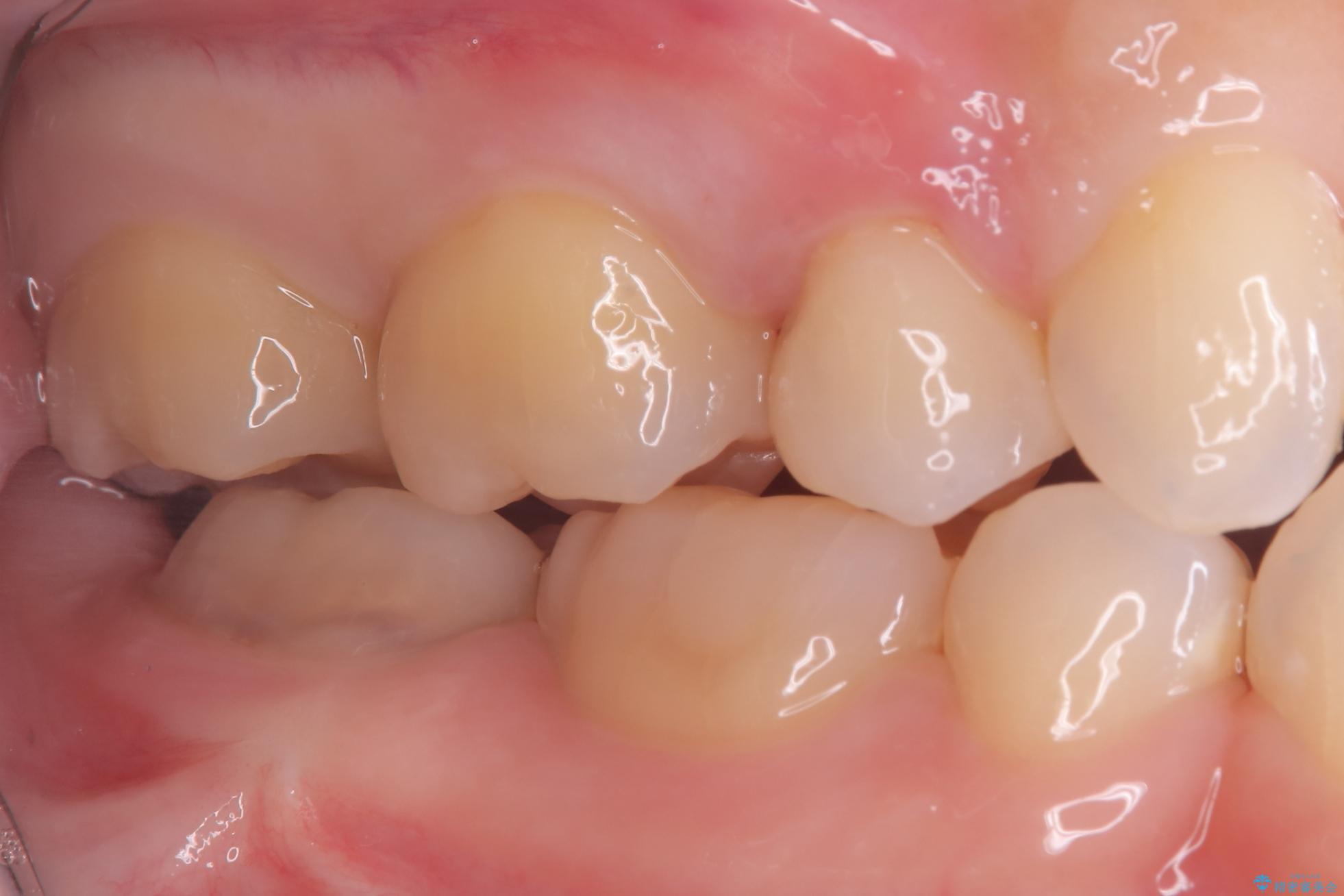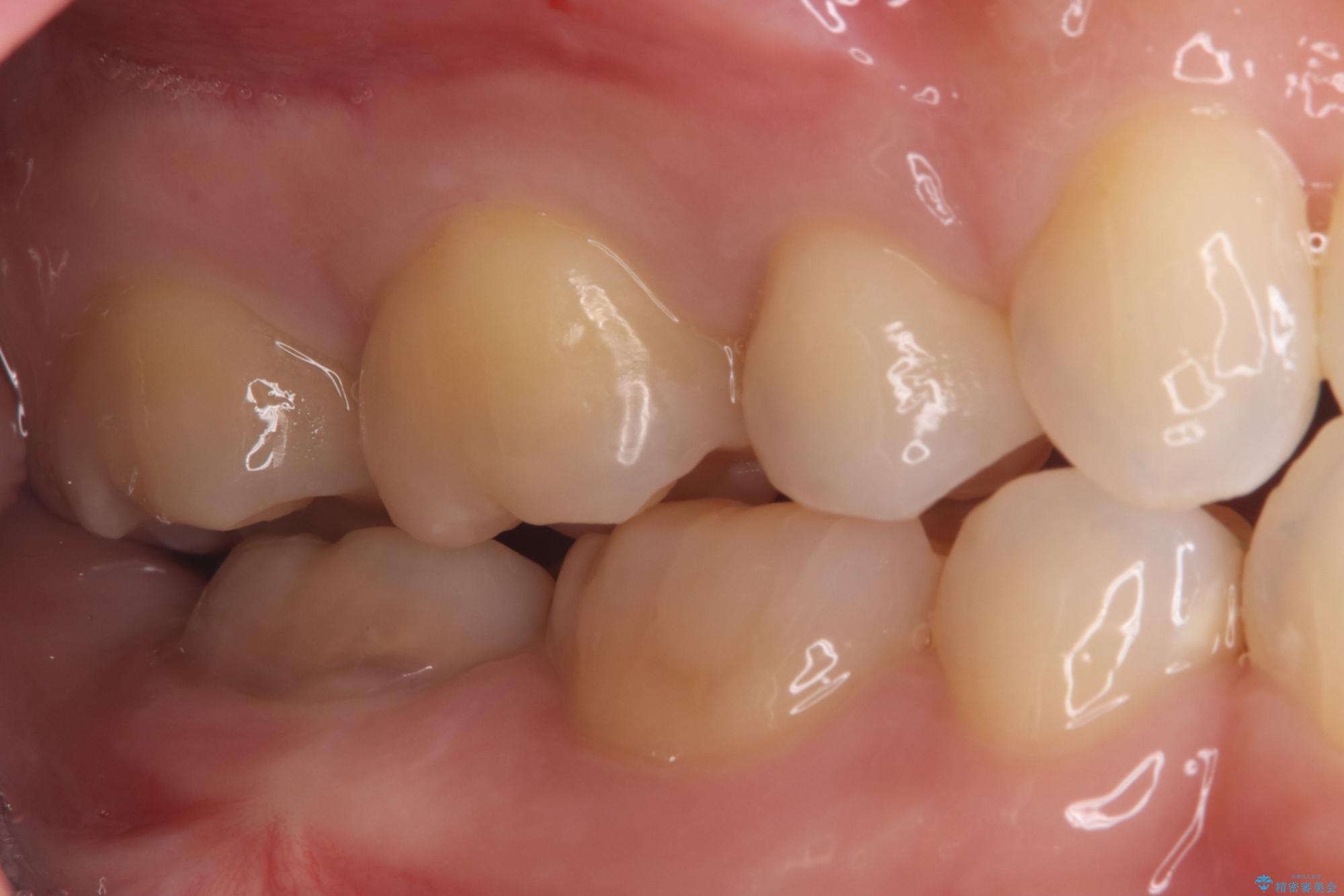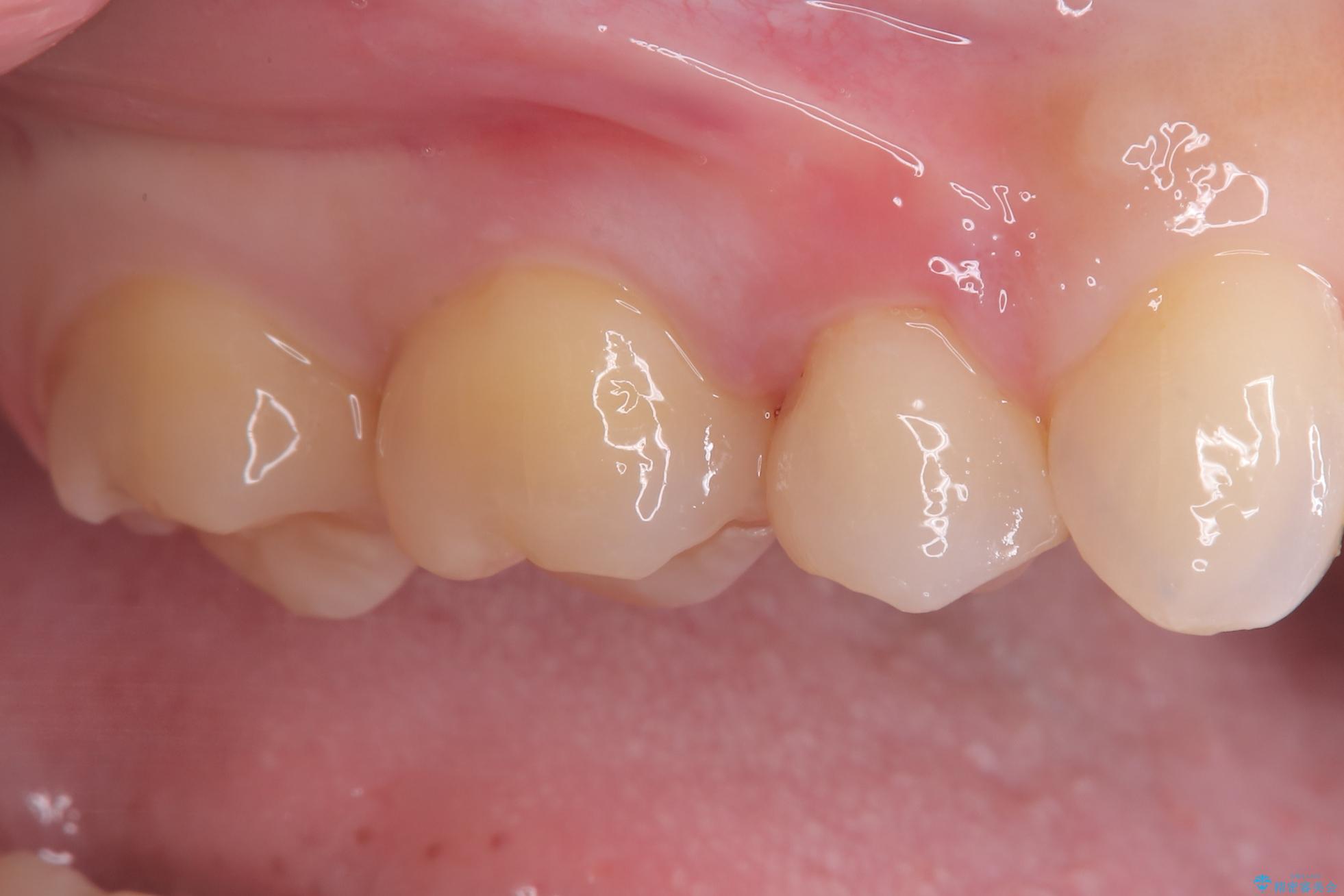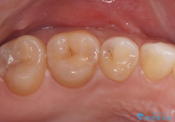 後日、歯の色調に合わせてオーダーメイドで作製されたセラミックインレーを装着。セラミックは天然歯のような透明感があるため、修復した箇所がどこかわからないほど自然な仕上がりとなりました。