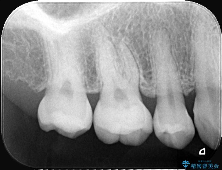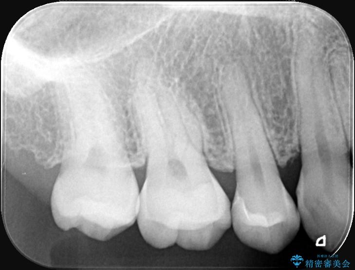 治療ではまず、小さな穴から内部に広がっていた虫歯を、マイクロスコープ(歯科用顕微鏡)等を用いて精密に除去しました。虫歯を取り除いた後の空洞を整え、歯との適合性を高めるための精密な型取りを行いました。