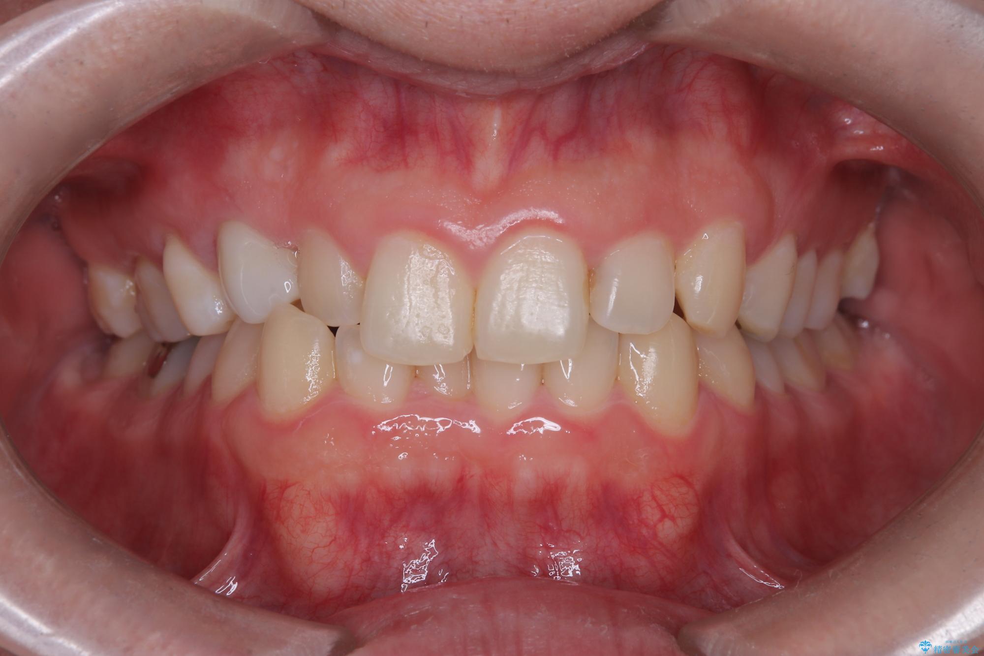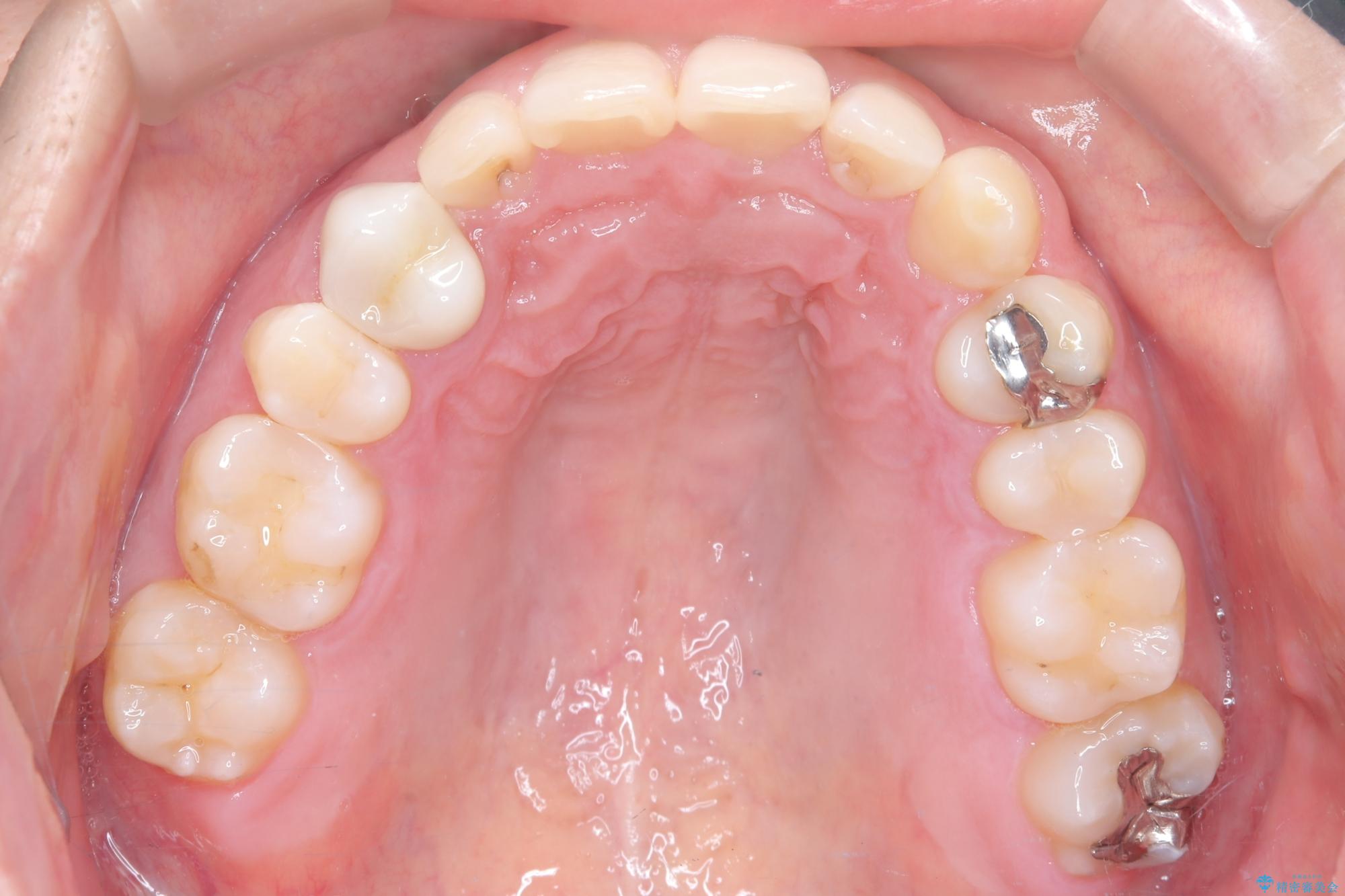 - 前歯の叢生(ガタつき)と、上下の噛み合わせが一部逆になっている反対咬合を主訴にご来院されました。精密検査の結果、前歯の移動だけでは不十分で、歯列全体のアーチを整えながらスペースを確保する必要があると診断。