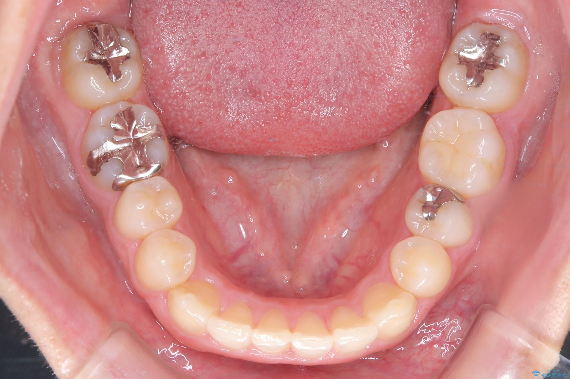 反対咬合の解消: 内側に入っていた前歯を、マウスピースの力を利用して外側へ押し出しました。同時に、下顎の歯並びも微調整することで、スムーズに正常な噛み合わせへと誘導しました。