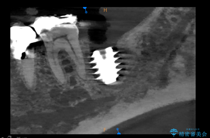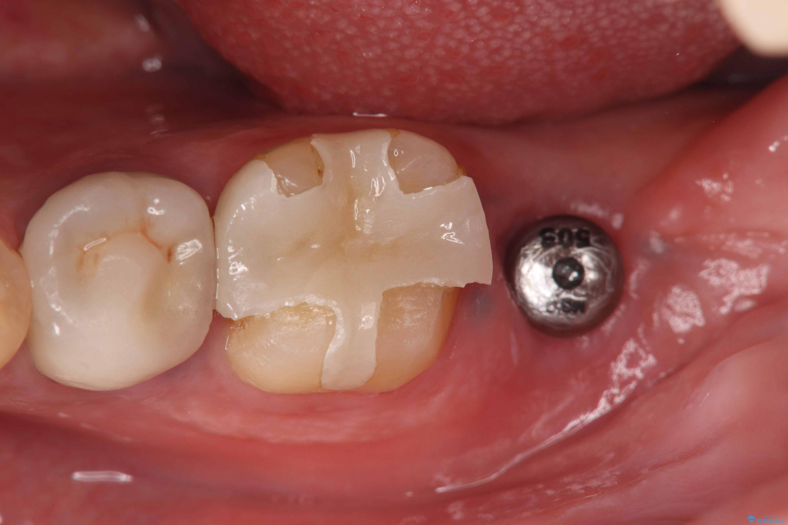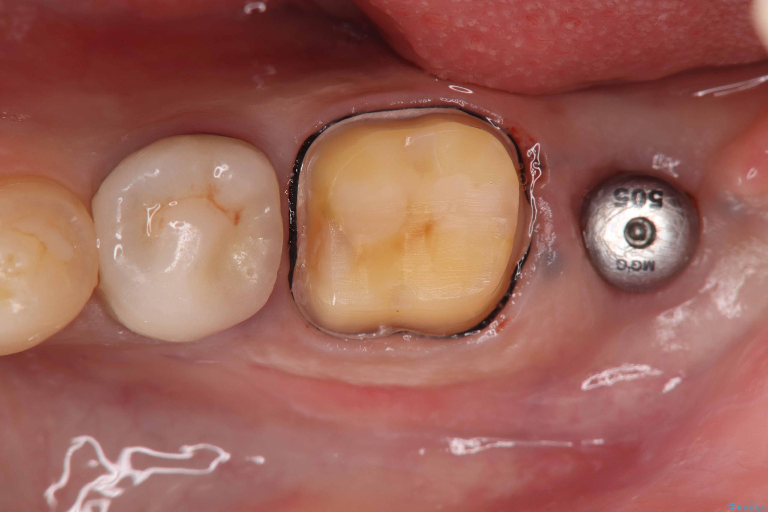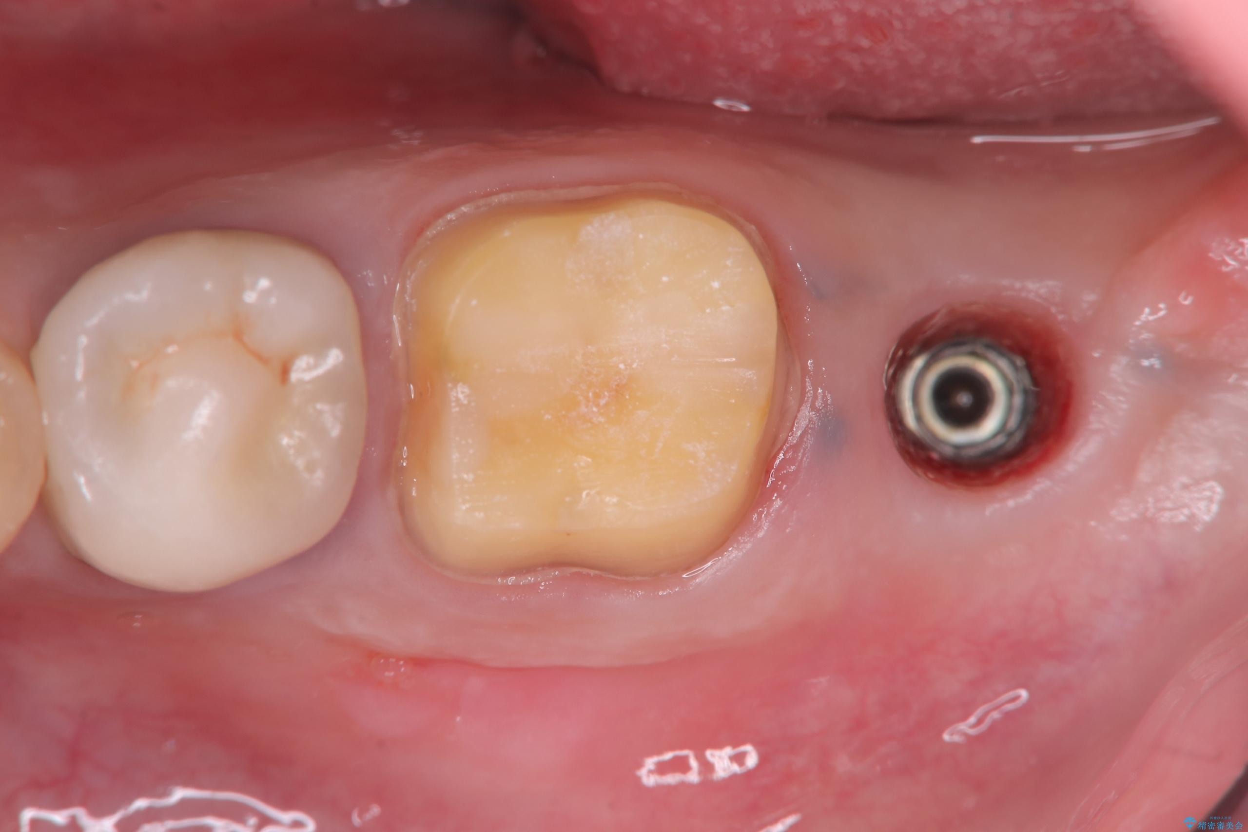 保存は困難と判断し、左下7番は抜歯即時インプラントによる治療を行いました。