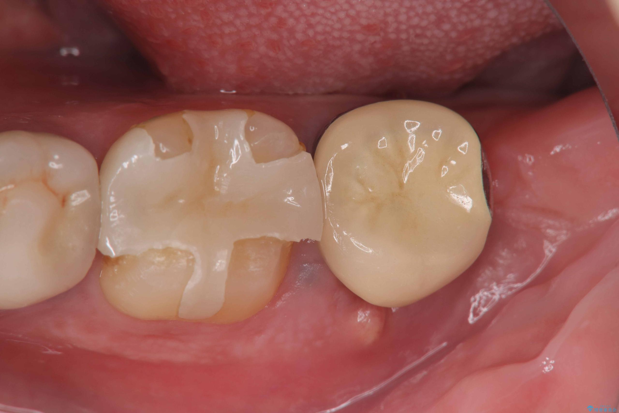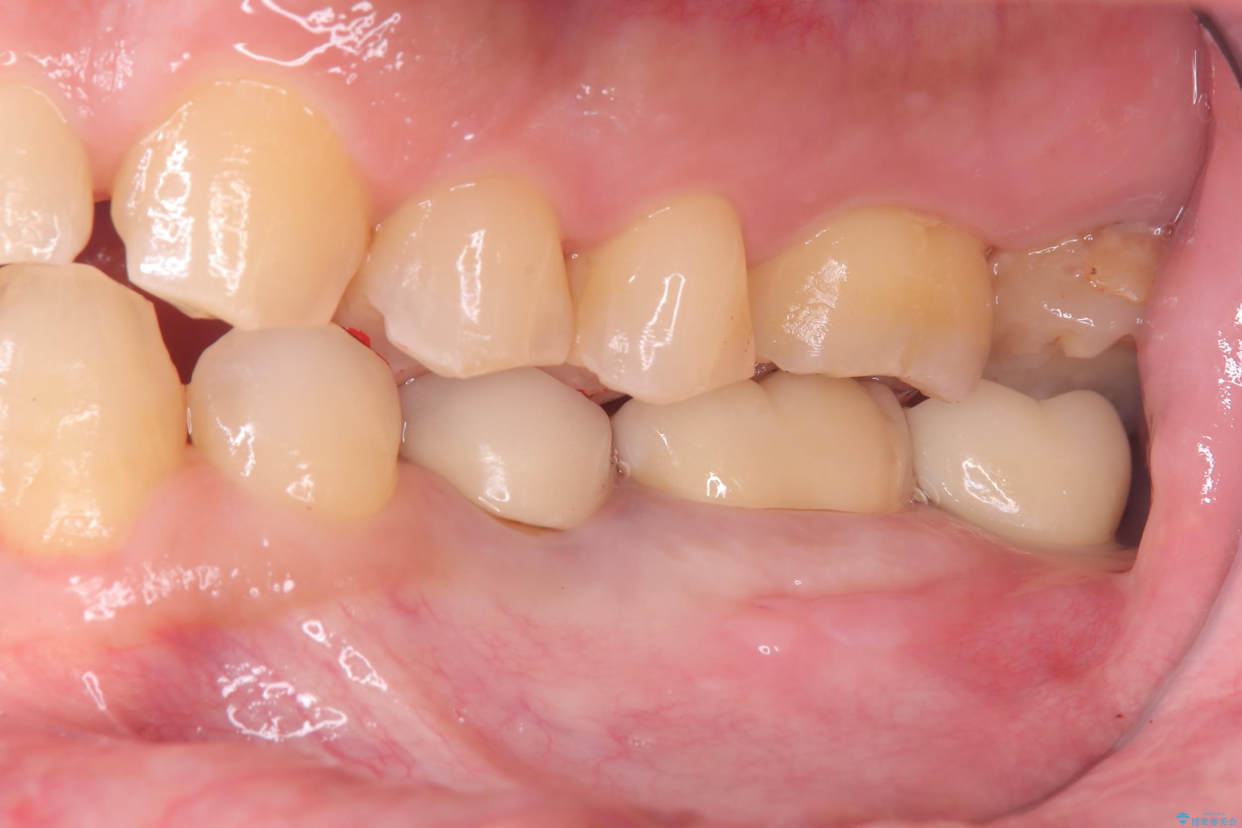 また、左下6番には形態が不自然で適合不良のセラミックインレーが装着されていたため、二次カリエスのリスクを考慮し、オールセラミッククラウンによる治療を行いました。