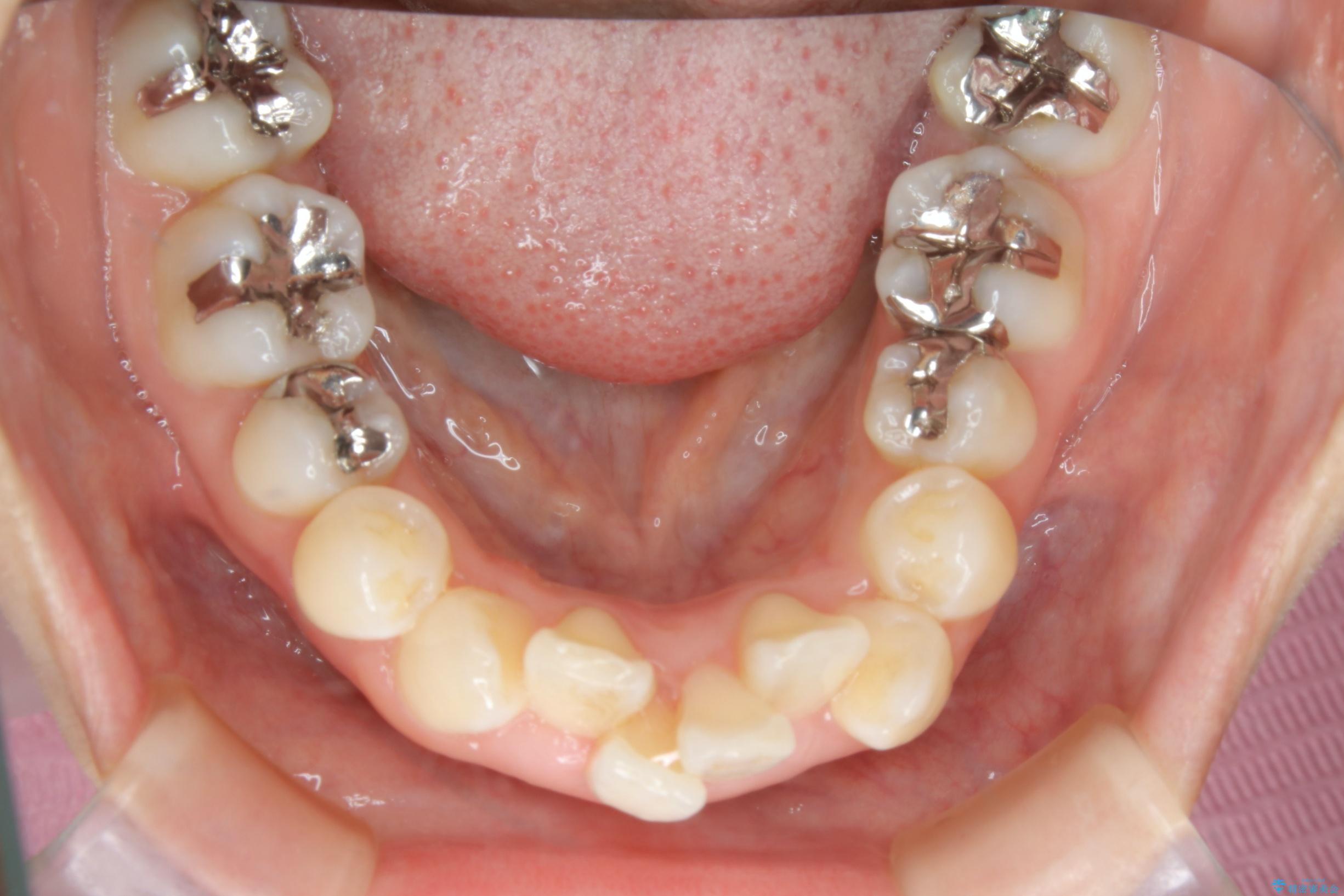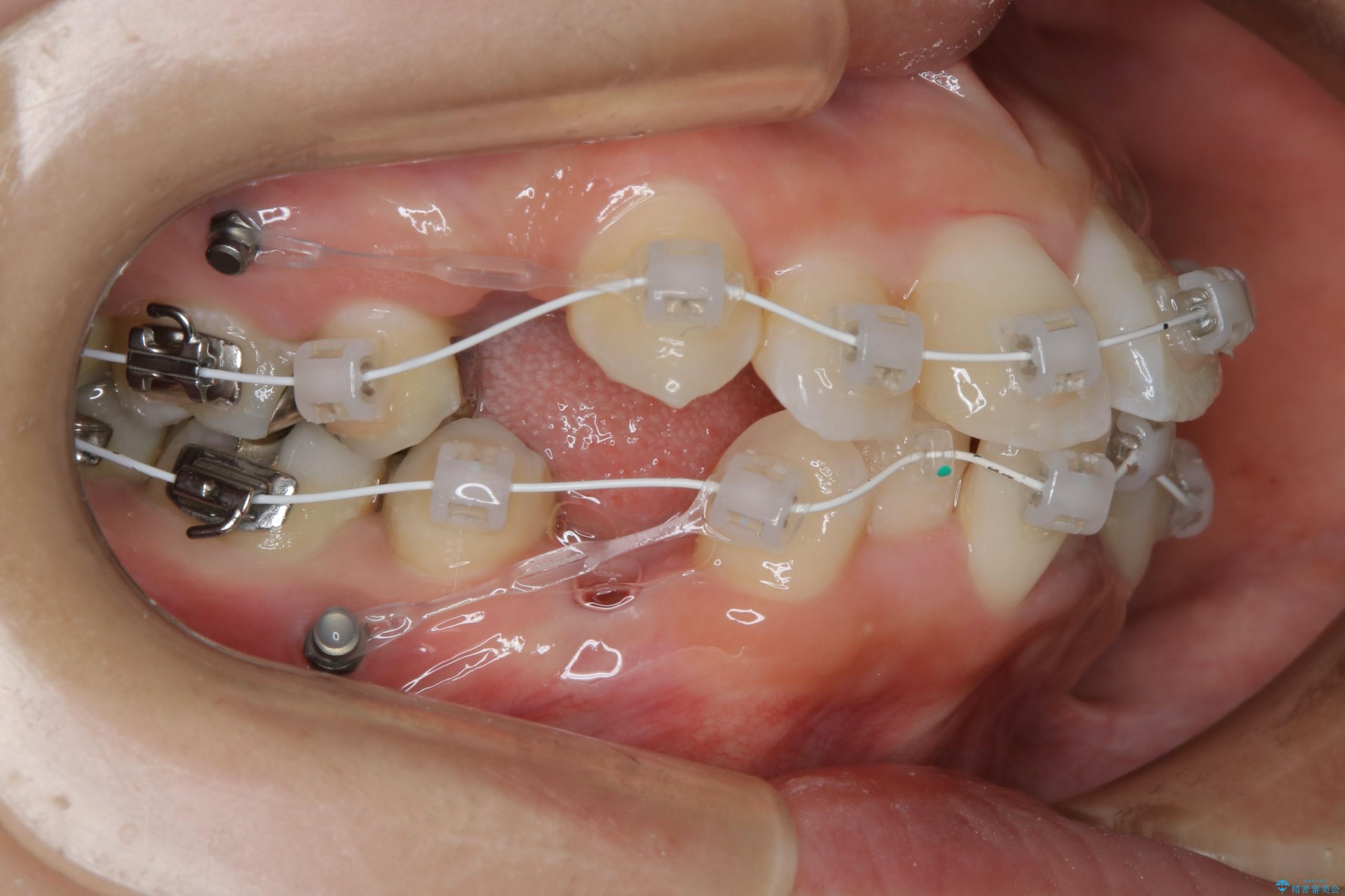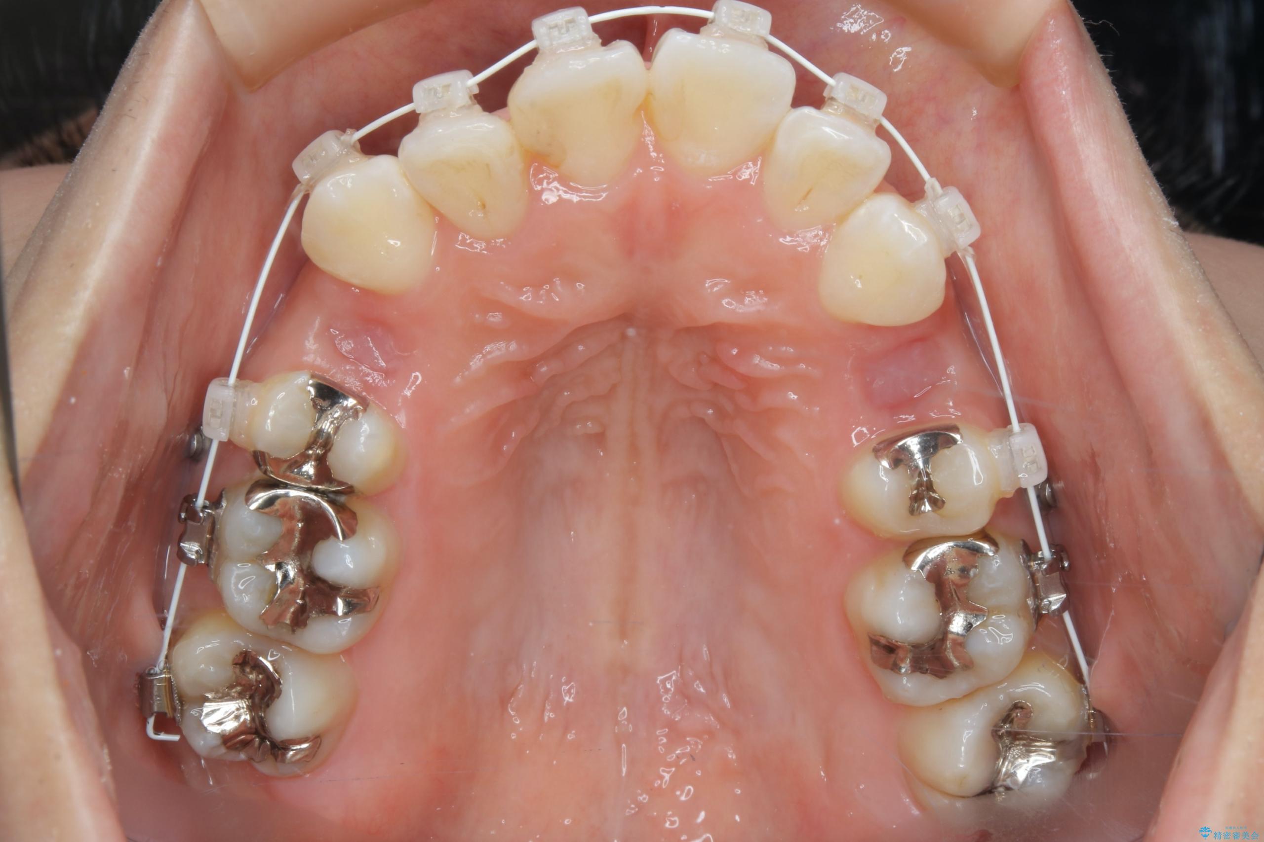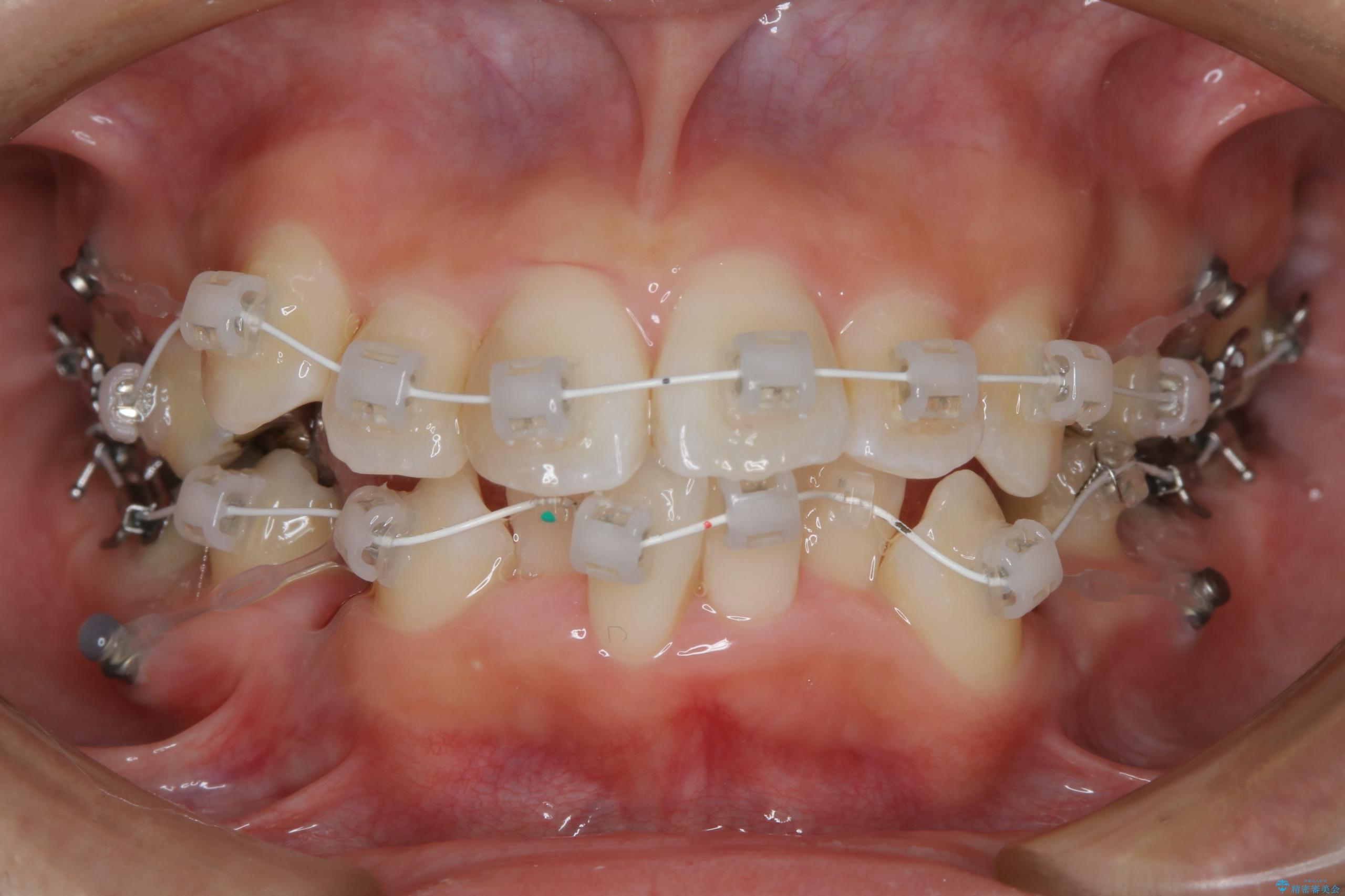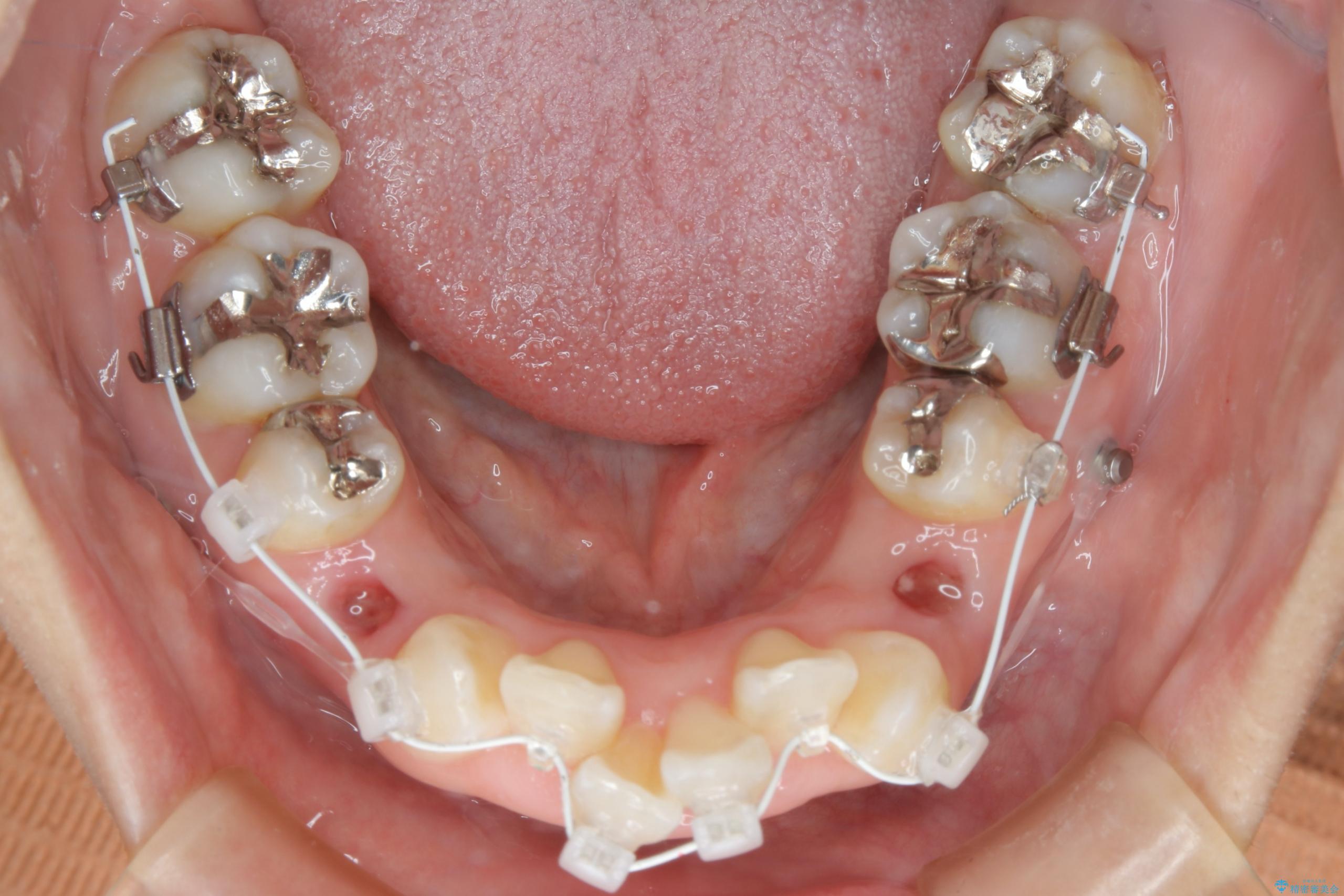 上下顎とも歯を並べられるスペースが無く、口元を下げたいというご希望だったので、抜歯とワイヤー矯正を併用した治療を計画しました。