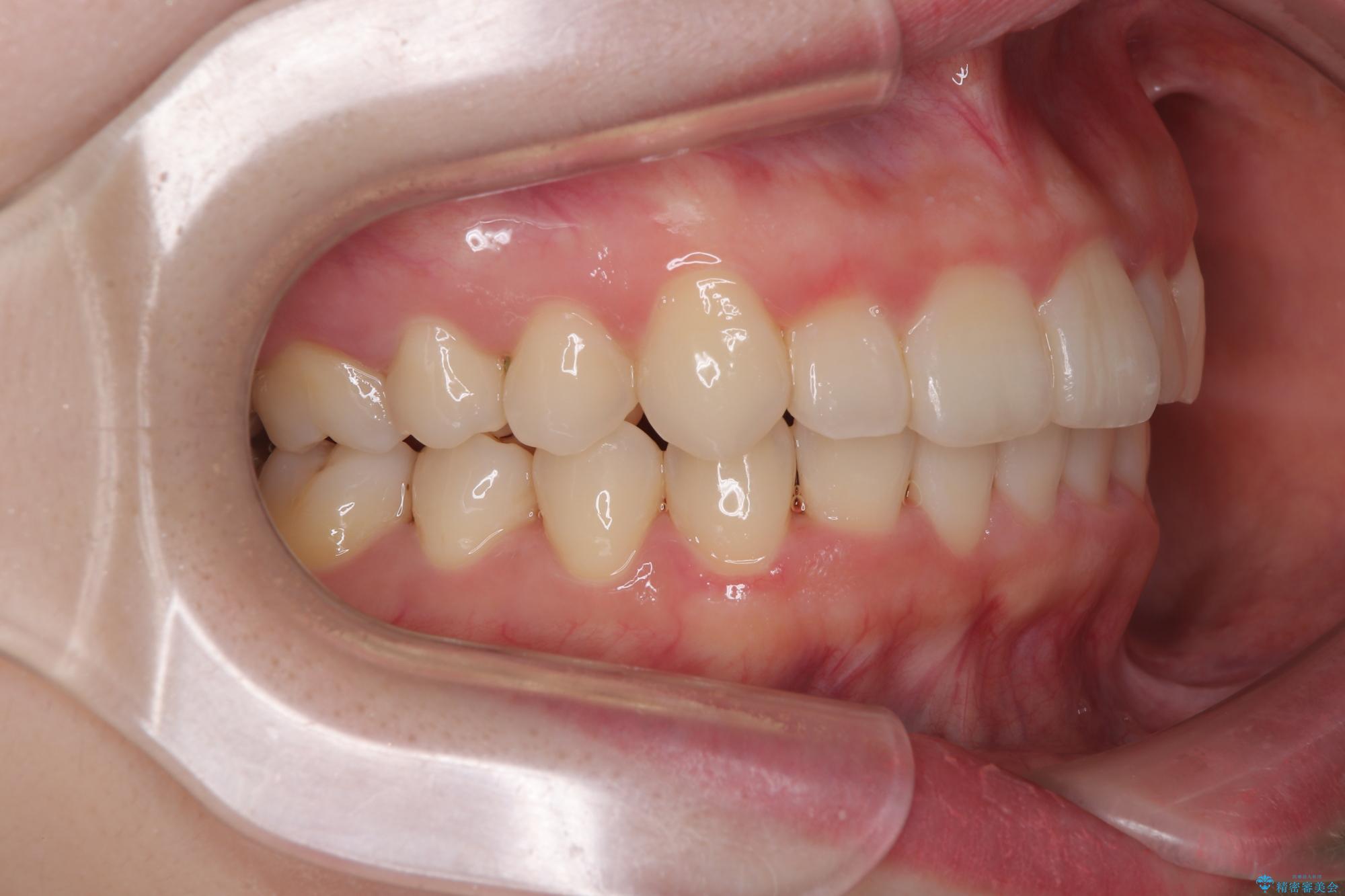 マウスピースでもワイヤー装置でも対応可能でしたが、右側の咬み合わせが上顎がやや前方に位置していることから、補助装置を使用することが推奨されました。