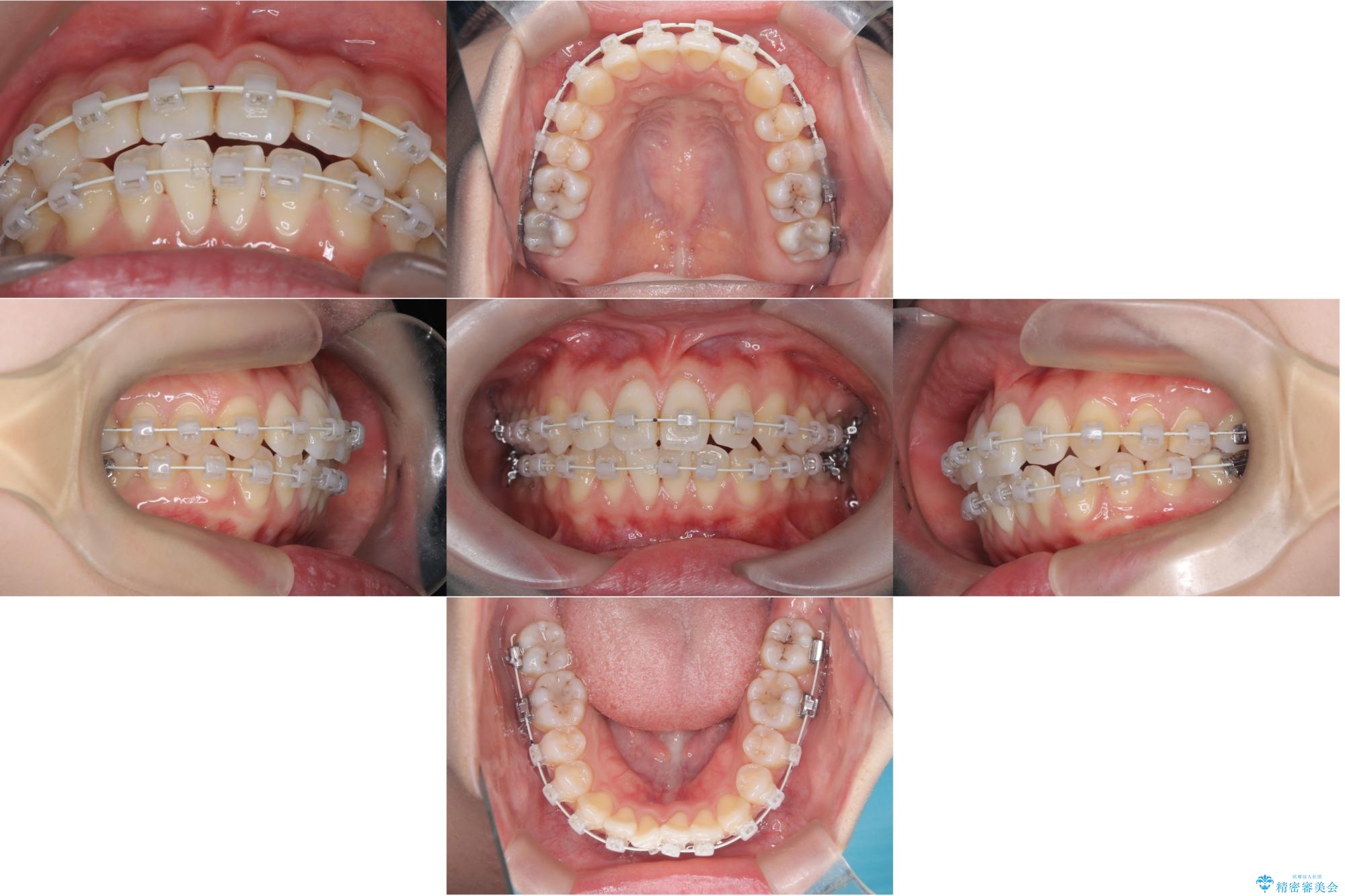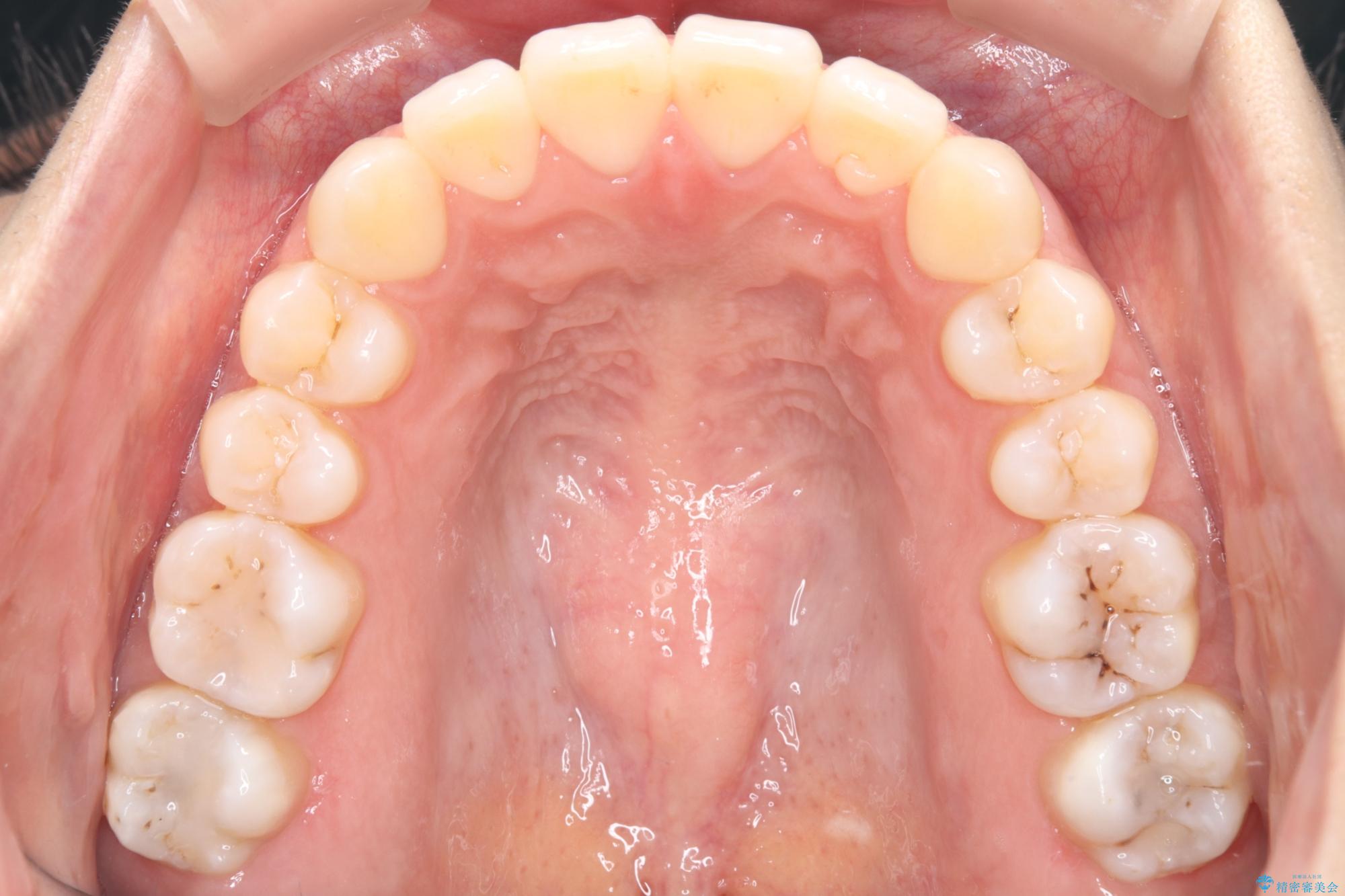 非抜歯で矯正治療を行った場合と、上下左右4番目の歯を抜歯して矯正治療を行った場合のシミュレーションを見ていただき、非抜歯での矯正治療を希望されました。