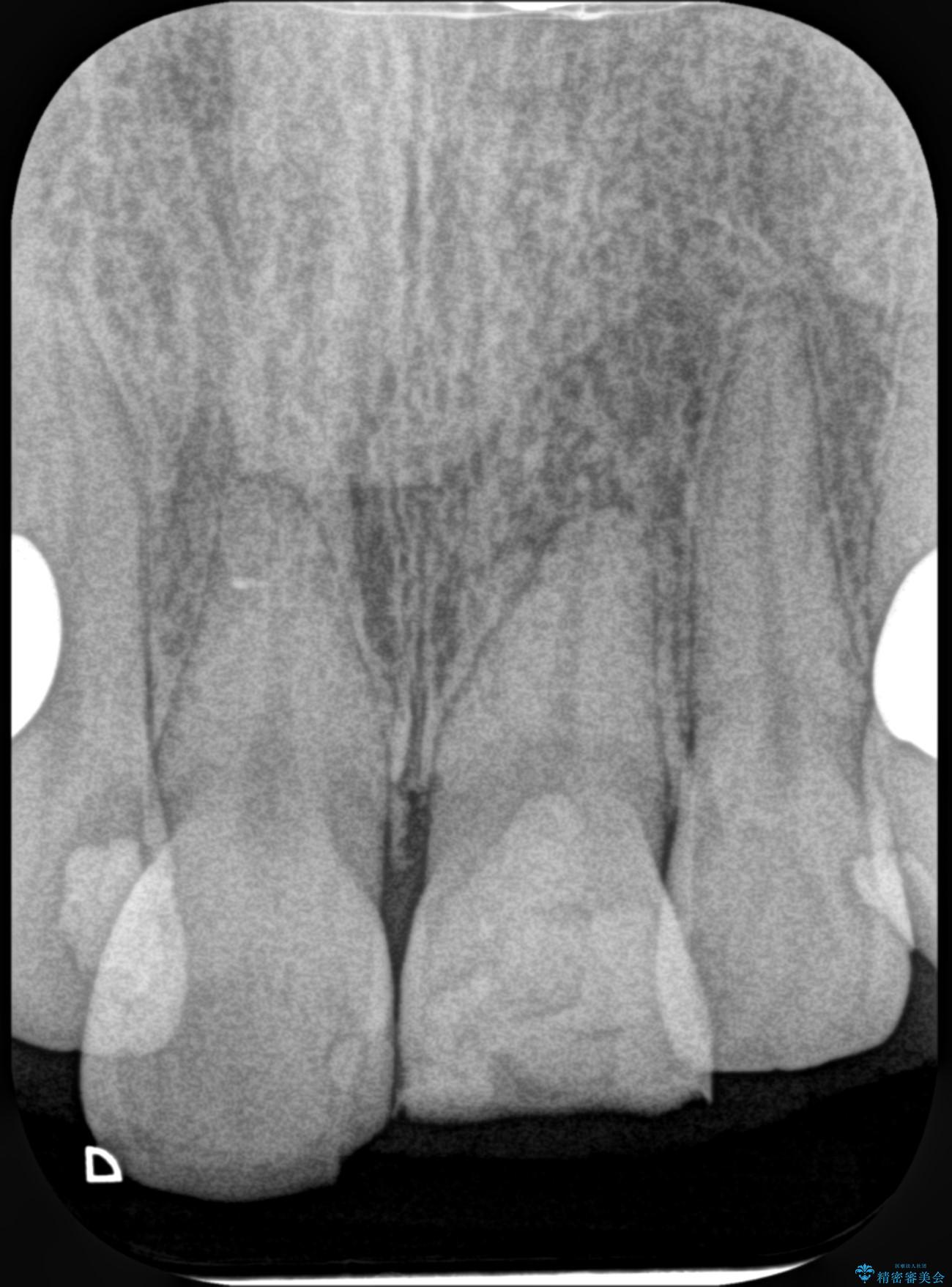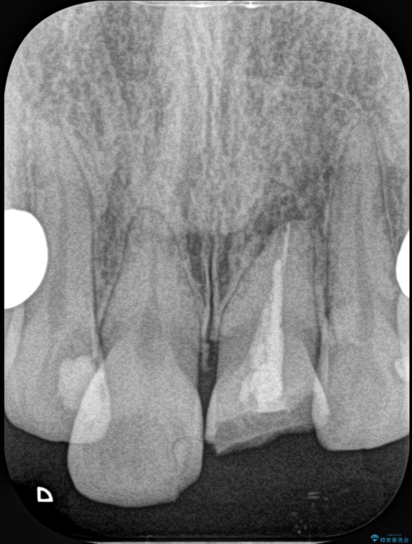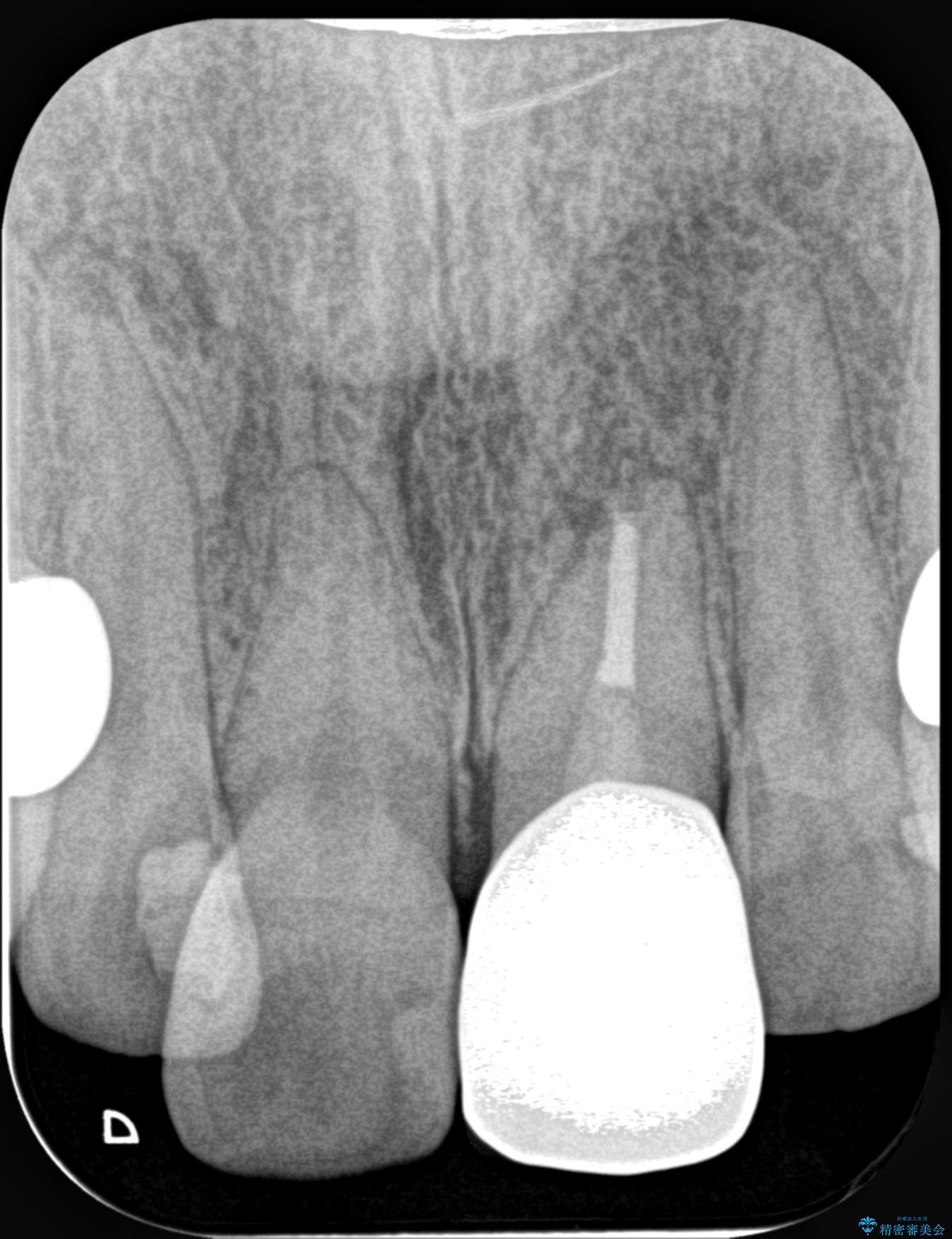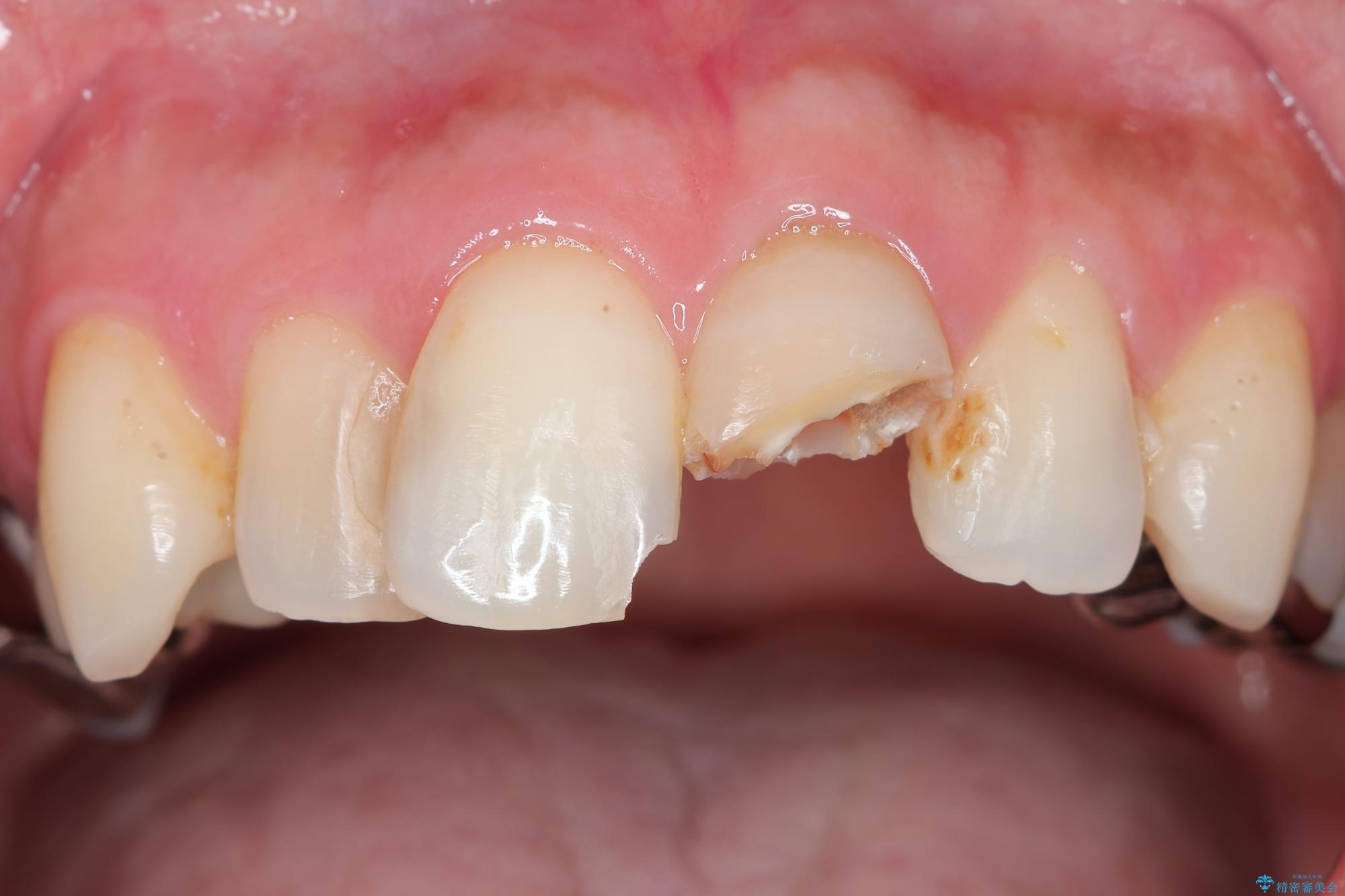 もともと根管治療の為されて歯が折れてしまっているので、根管治療を行い審美的なセラミック治療を行う治療計画としました。