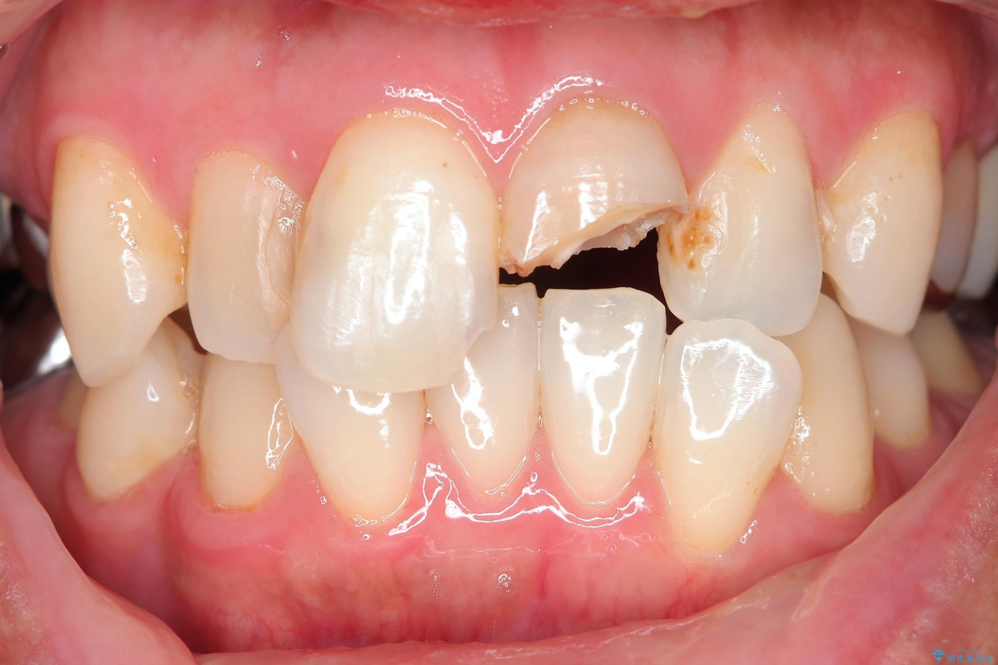 - 自転車で転倒してしまい、前歯を折ってしまい、痛みと見た目の改善を希望され来院されました。