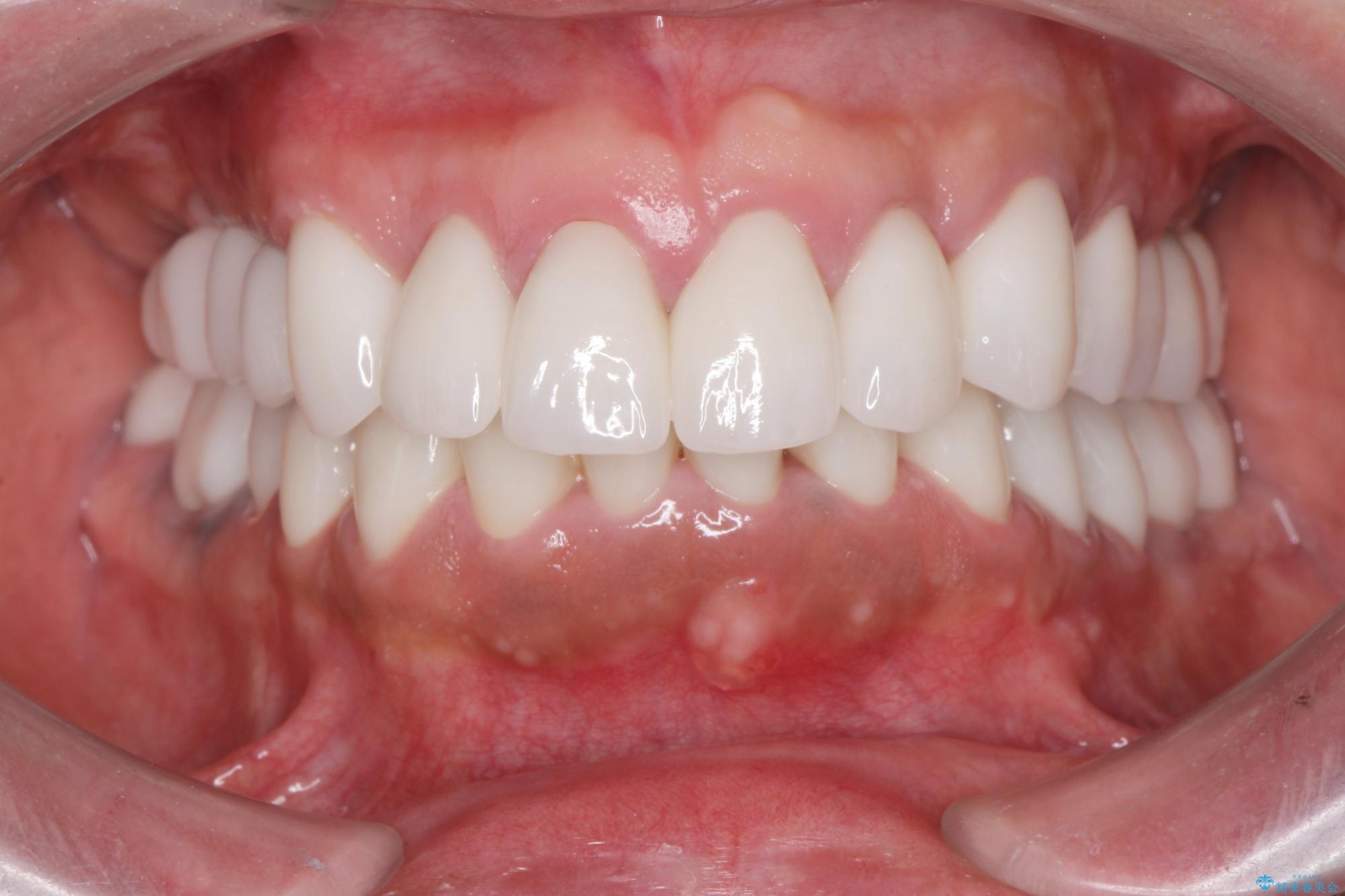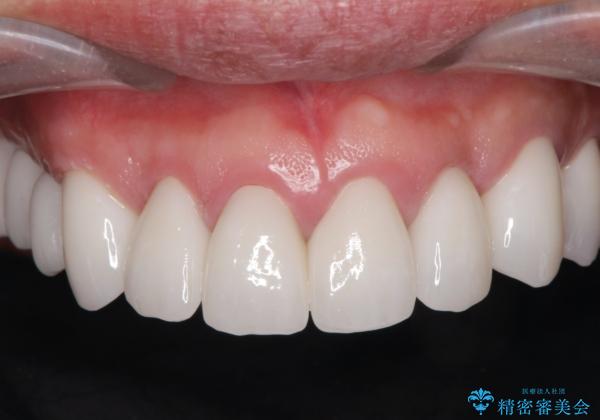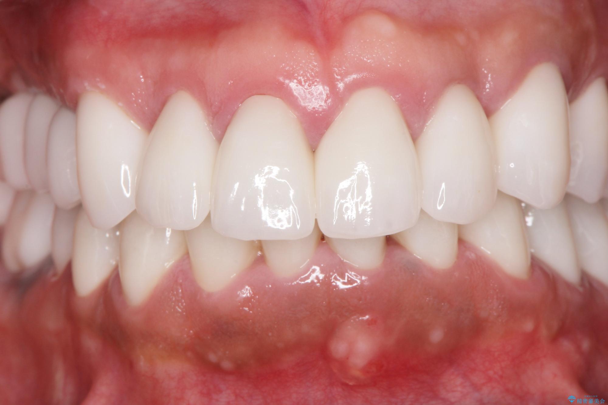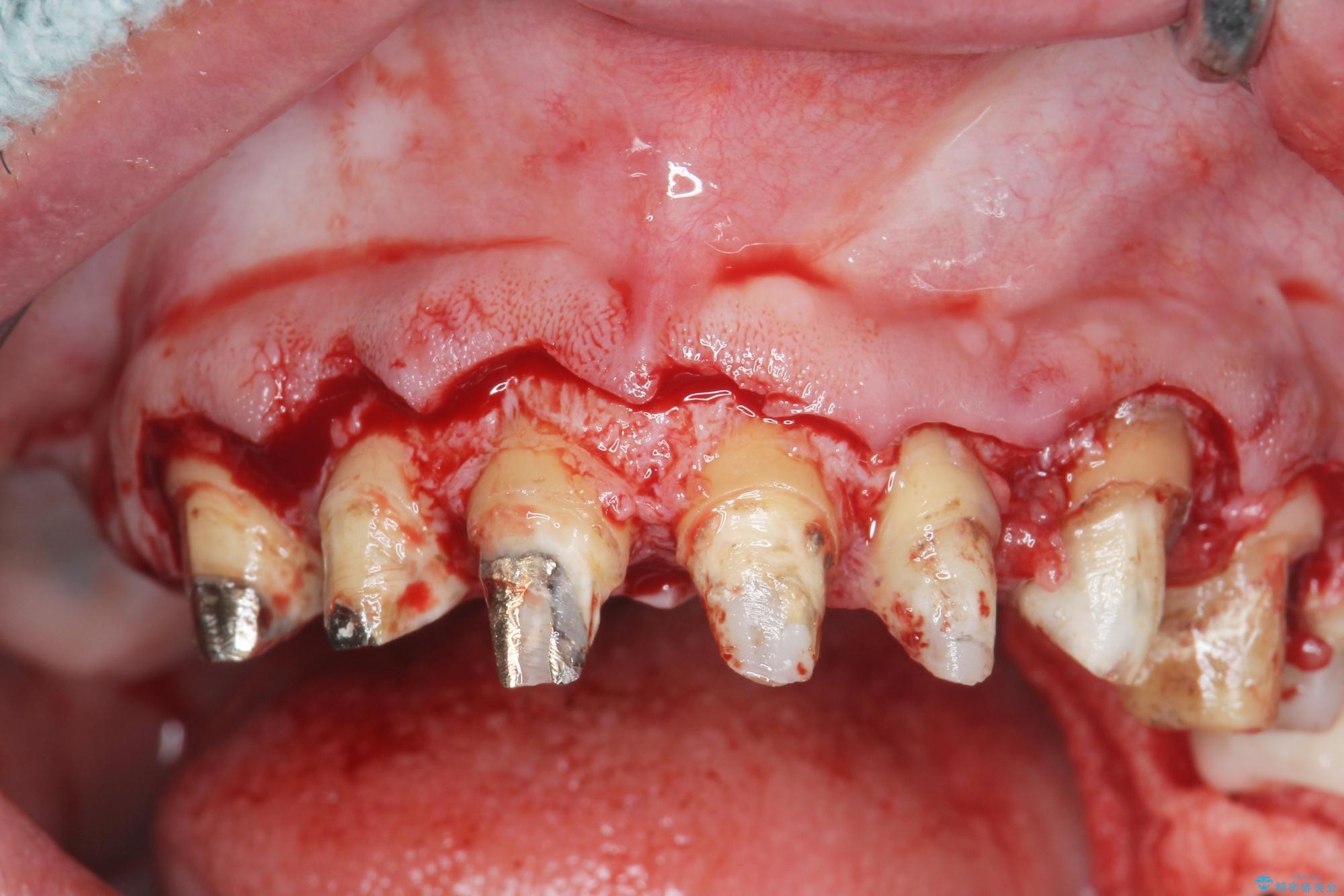 前医により、前歯は歯ぐきの奥深くまで形成されこのままの状態でセラミックをやりかえたとしても歯ぐきの腫れの改善は難しい状況です。