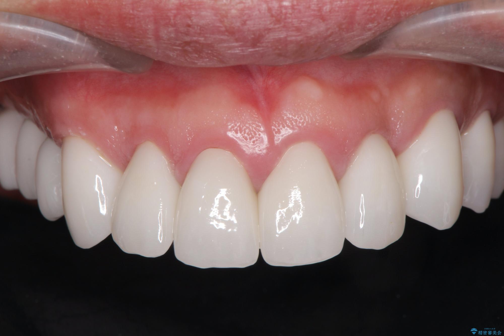 - 前医で行った前歯セラミック形態の改善、常に腫れぼったく歯ブラシの際に出血のある前歯部の治療を希望され来院されました。