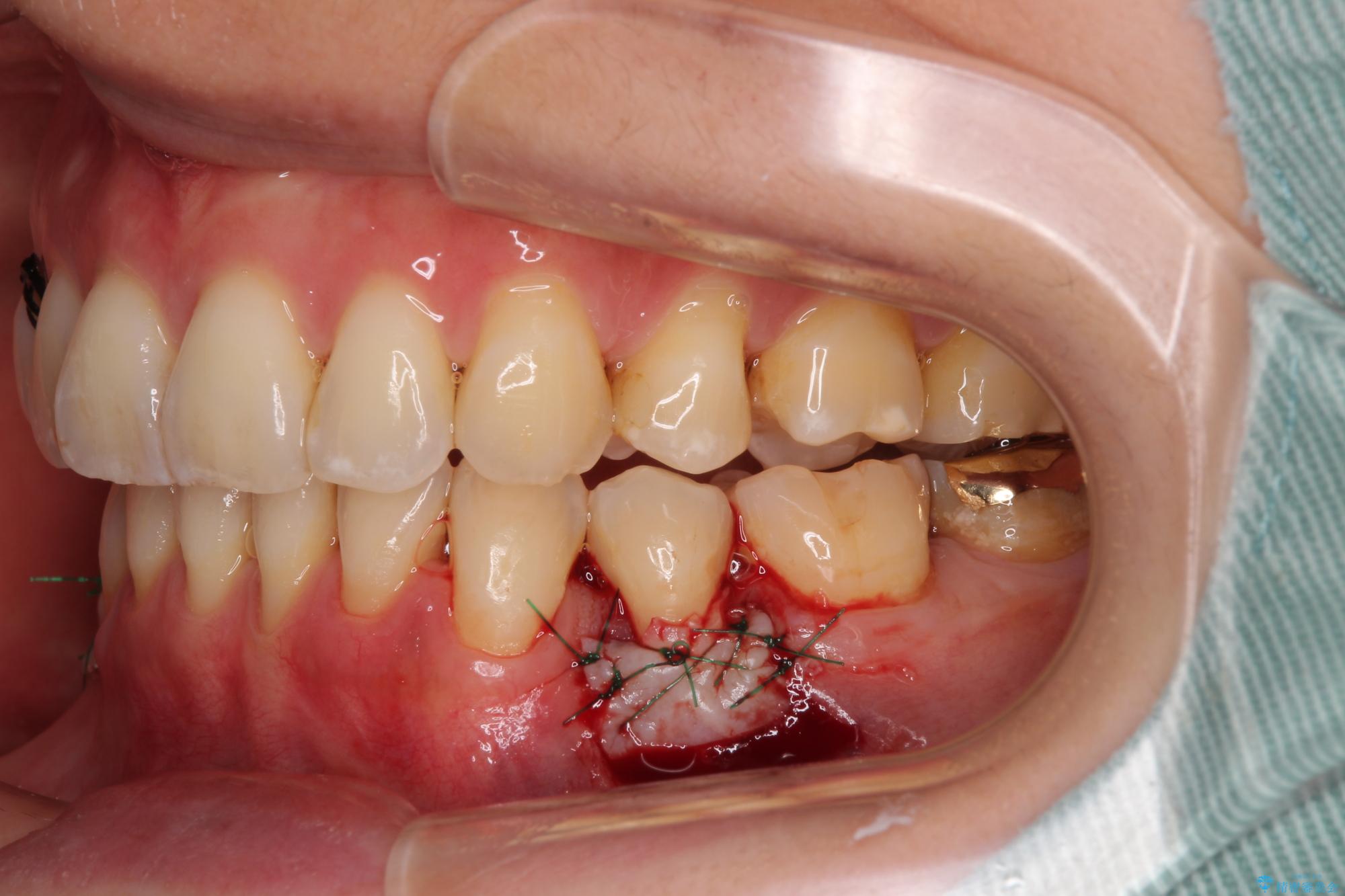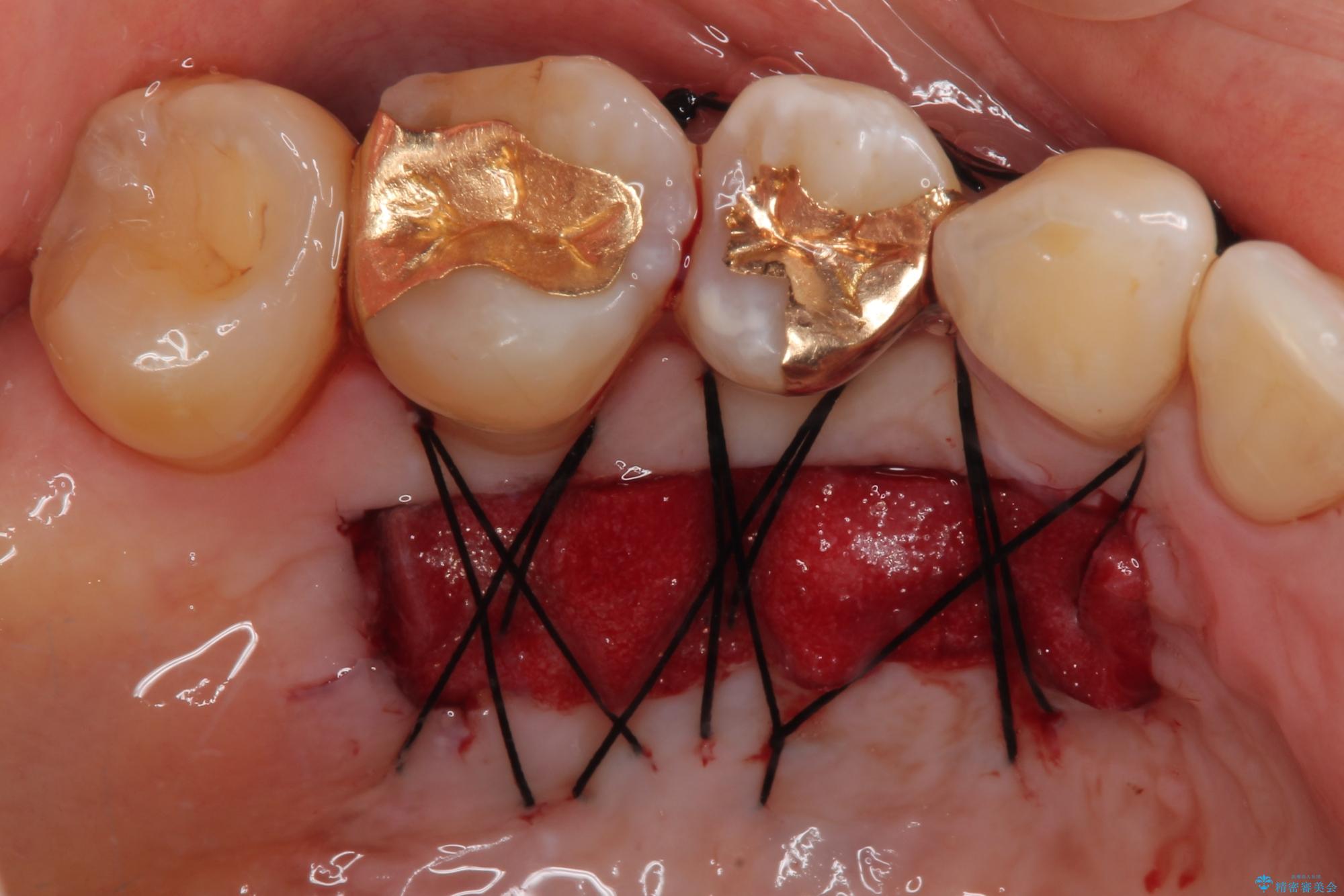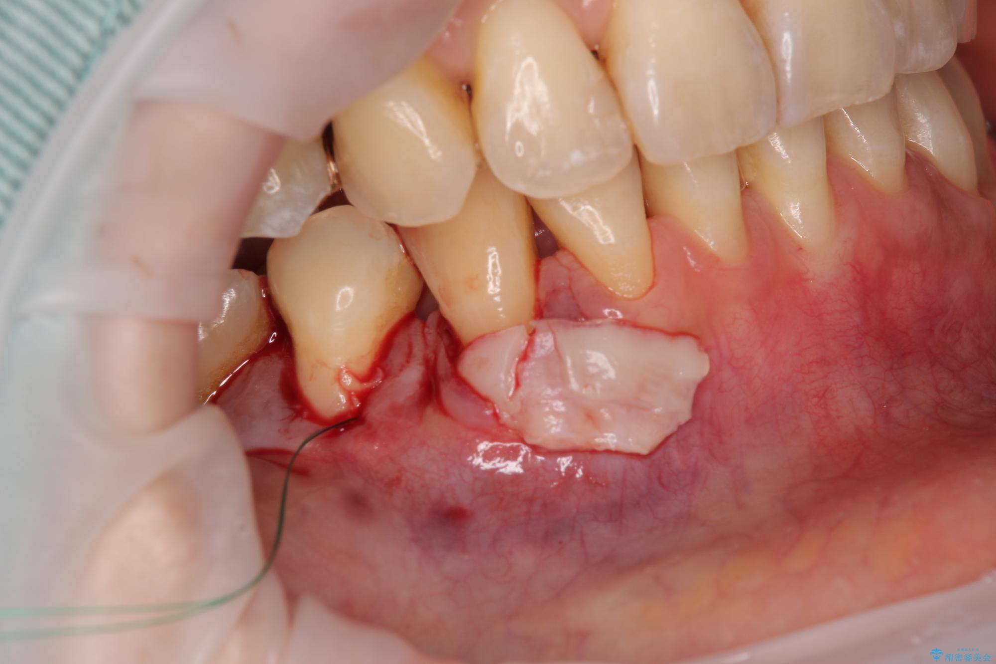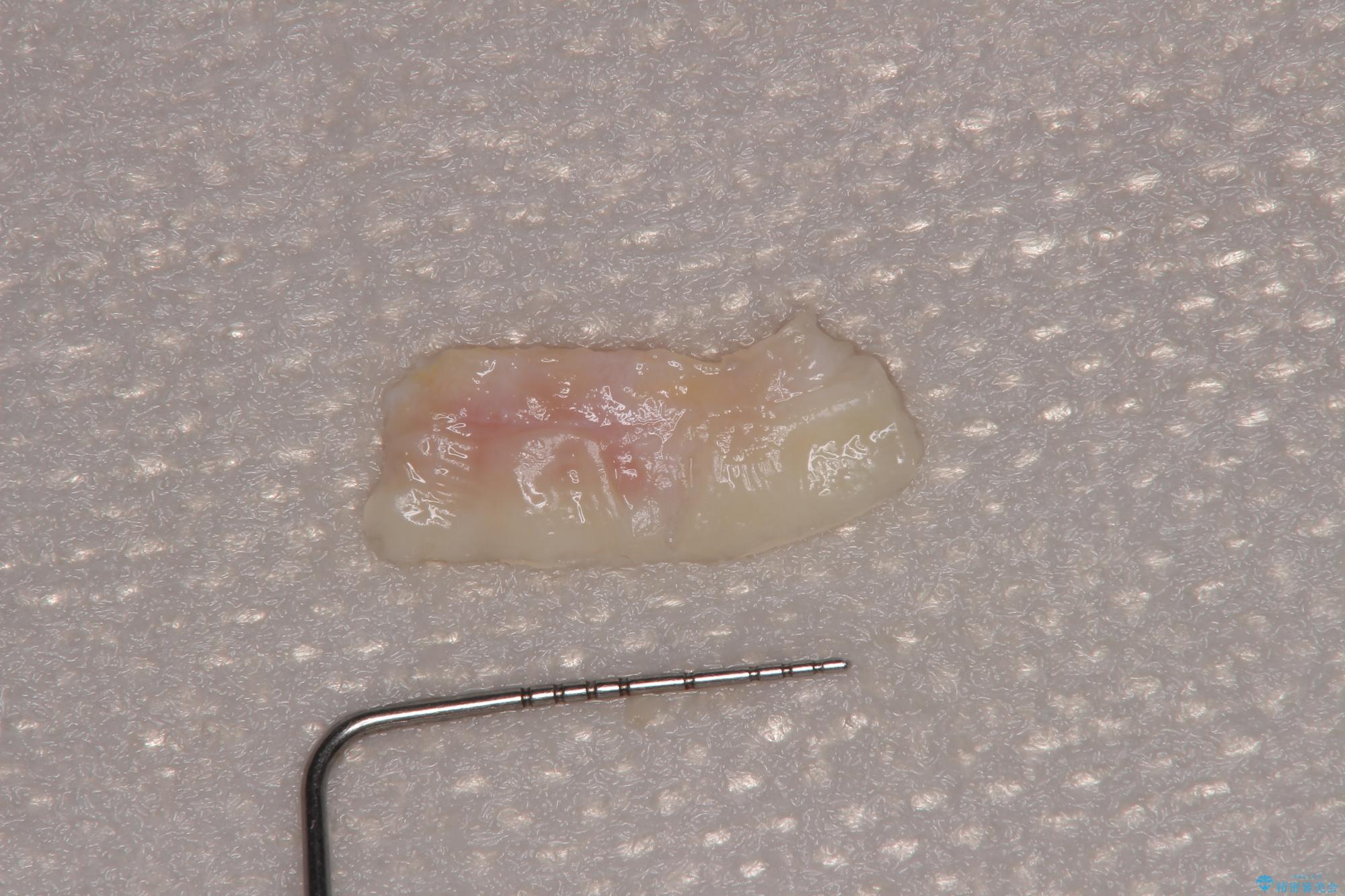 口蓋(上顎の内側)から採取した結合組織(歯肉の内側の組織)を移植することによる、根面被覆術を行うこととしました。