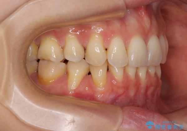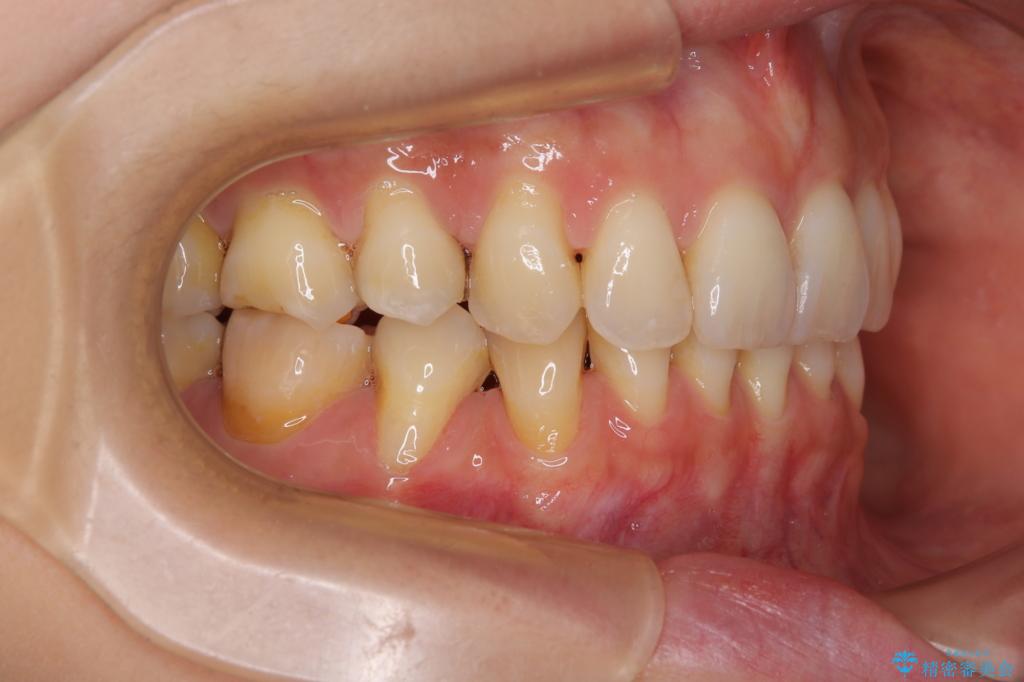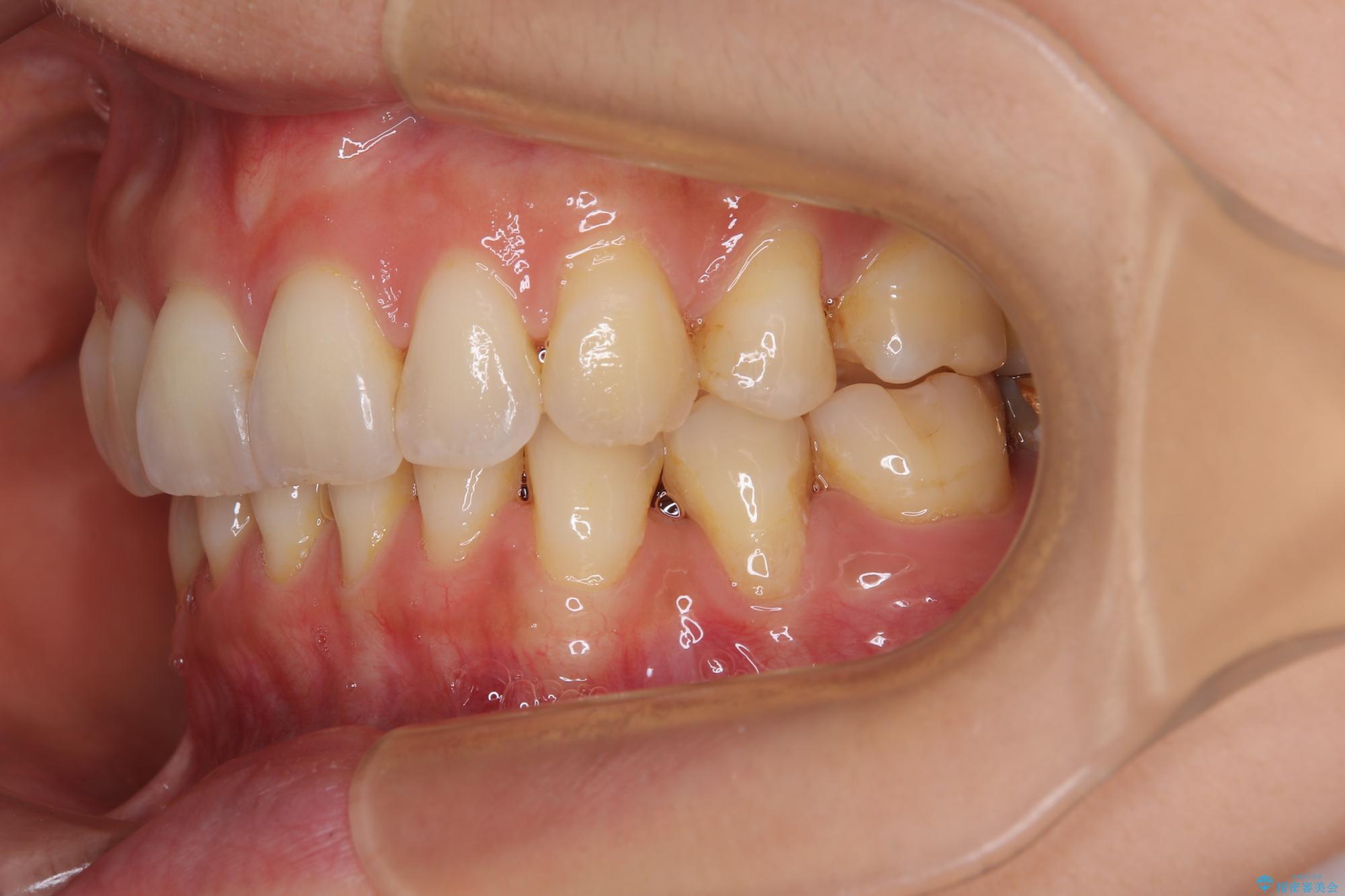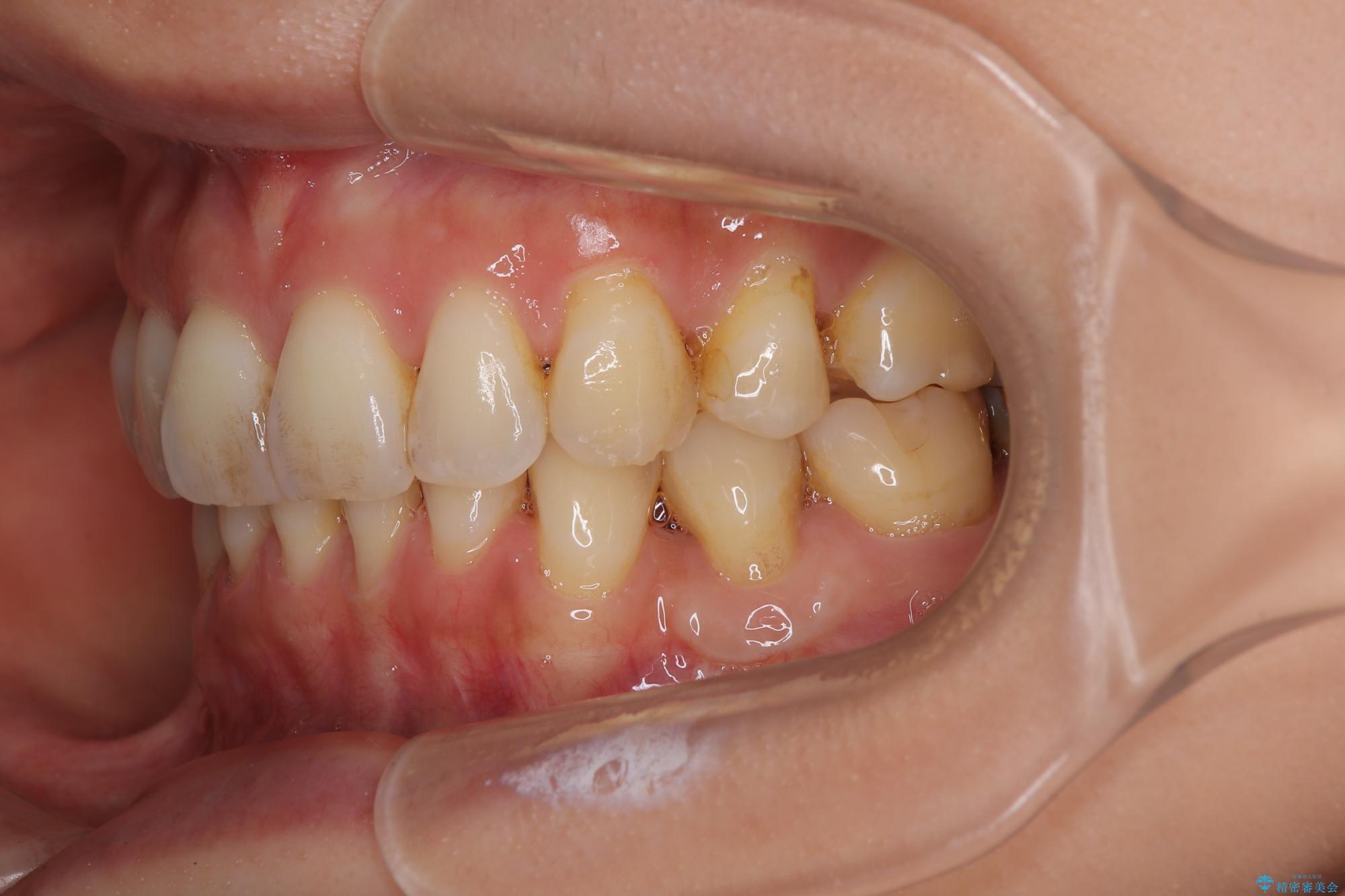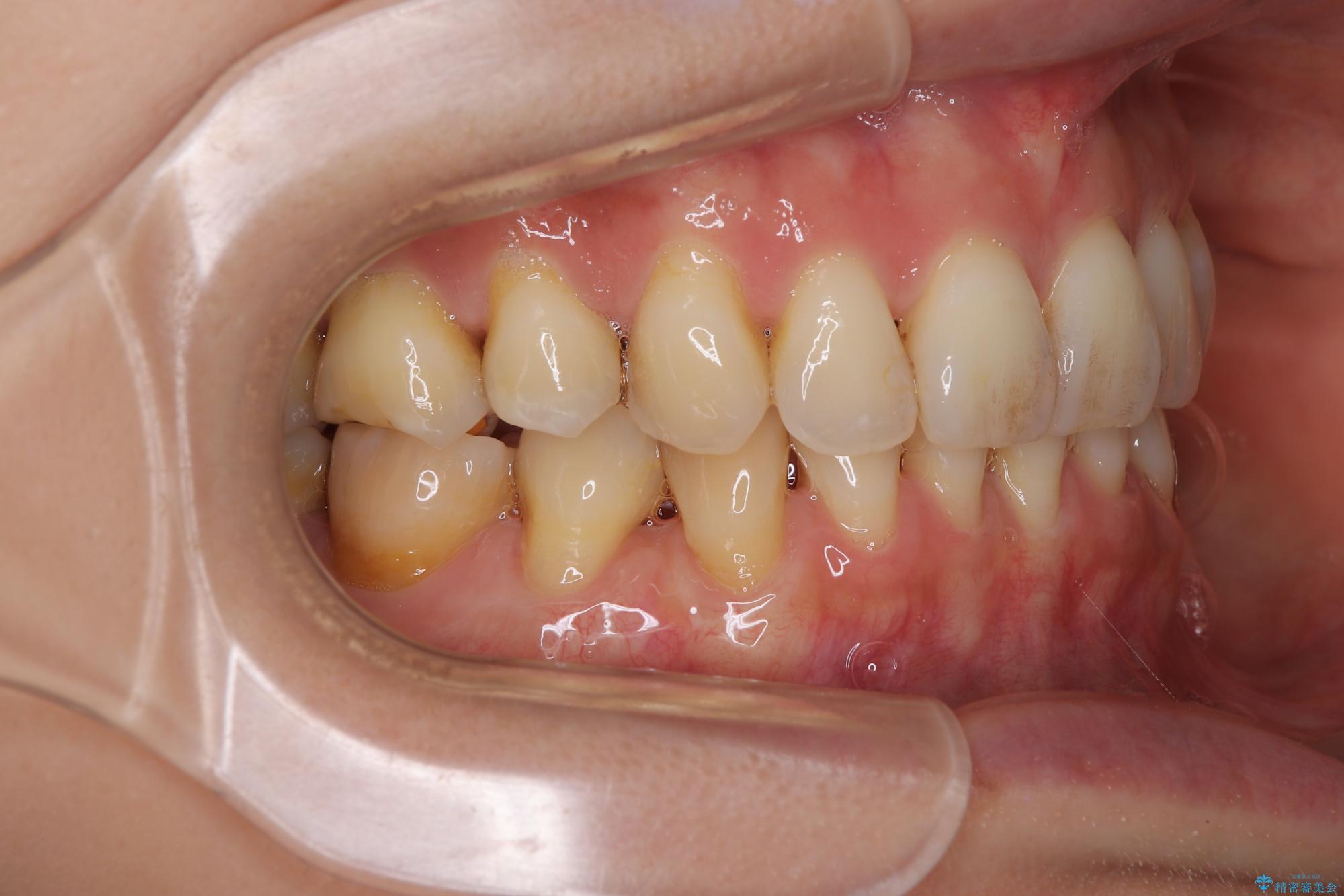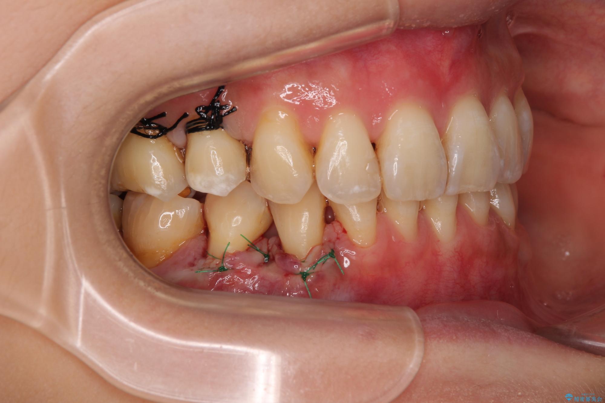 元々歯肉が非常に薄いことが推察され、抜歯矯正による移動が大きかったのか、歯肉が退縮している状態でした。