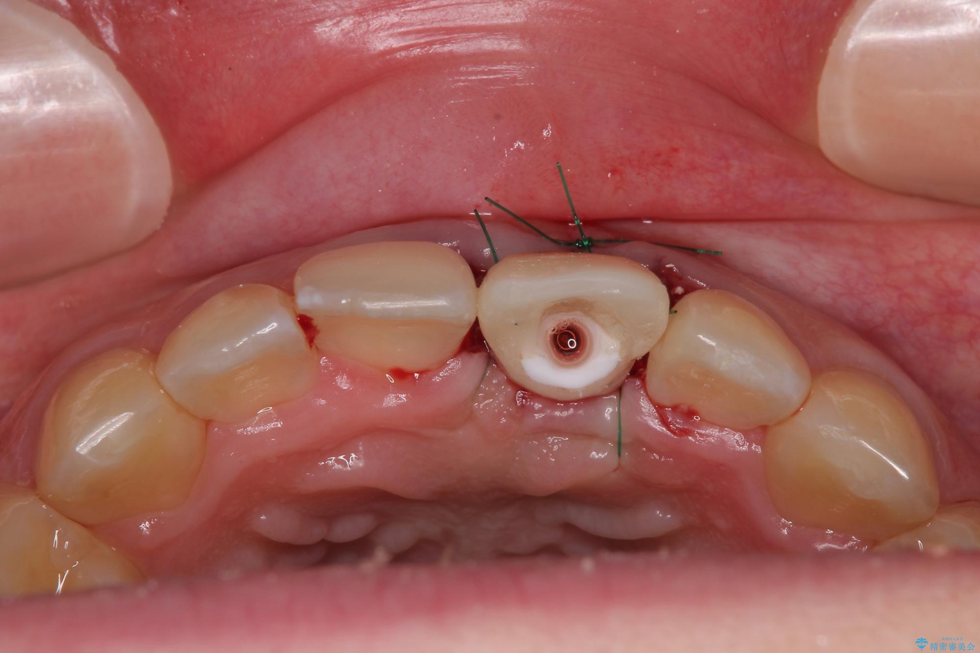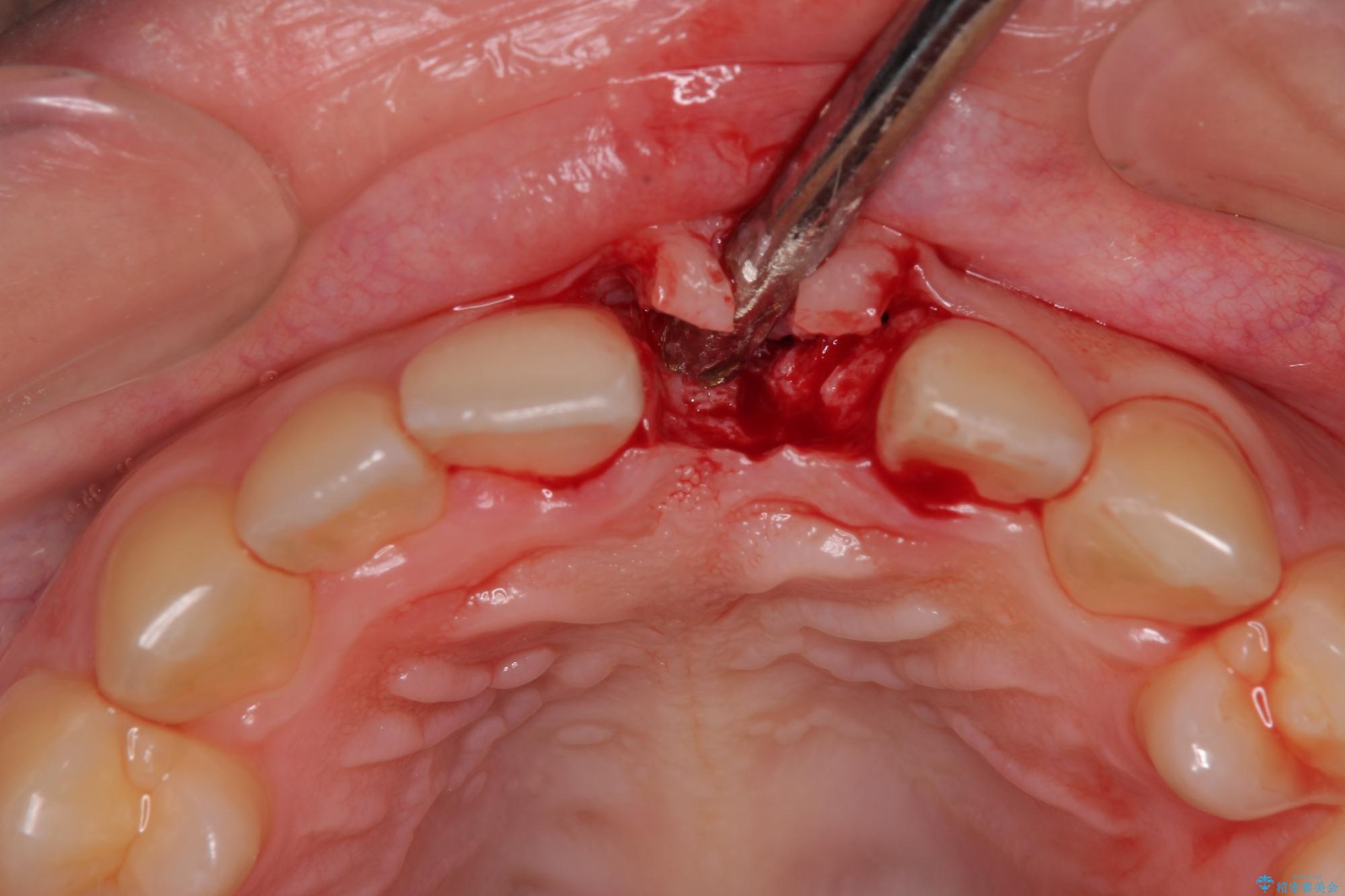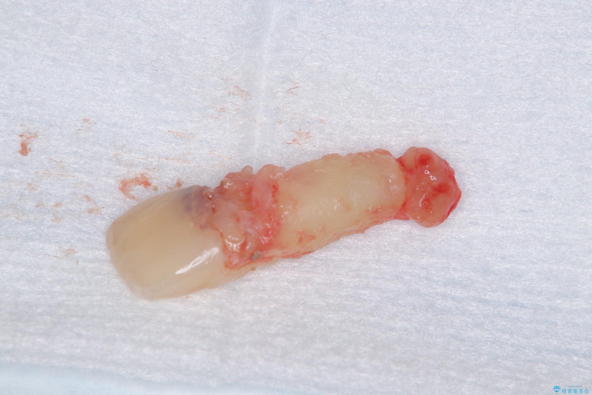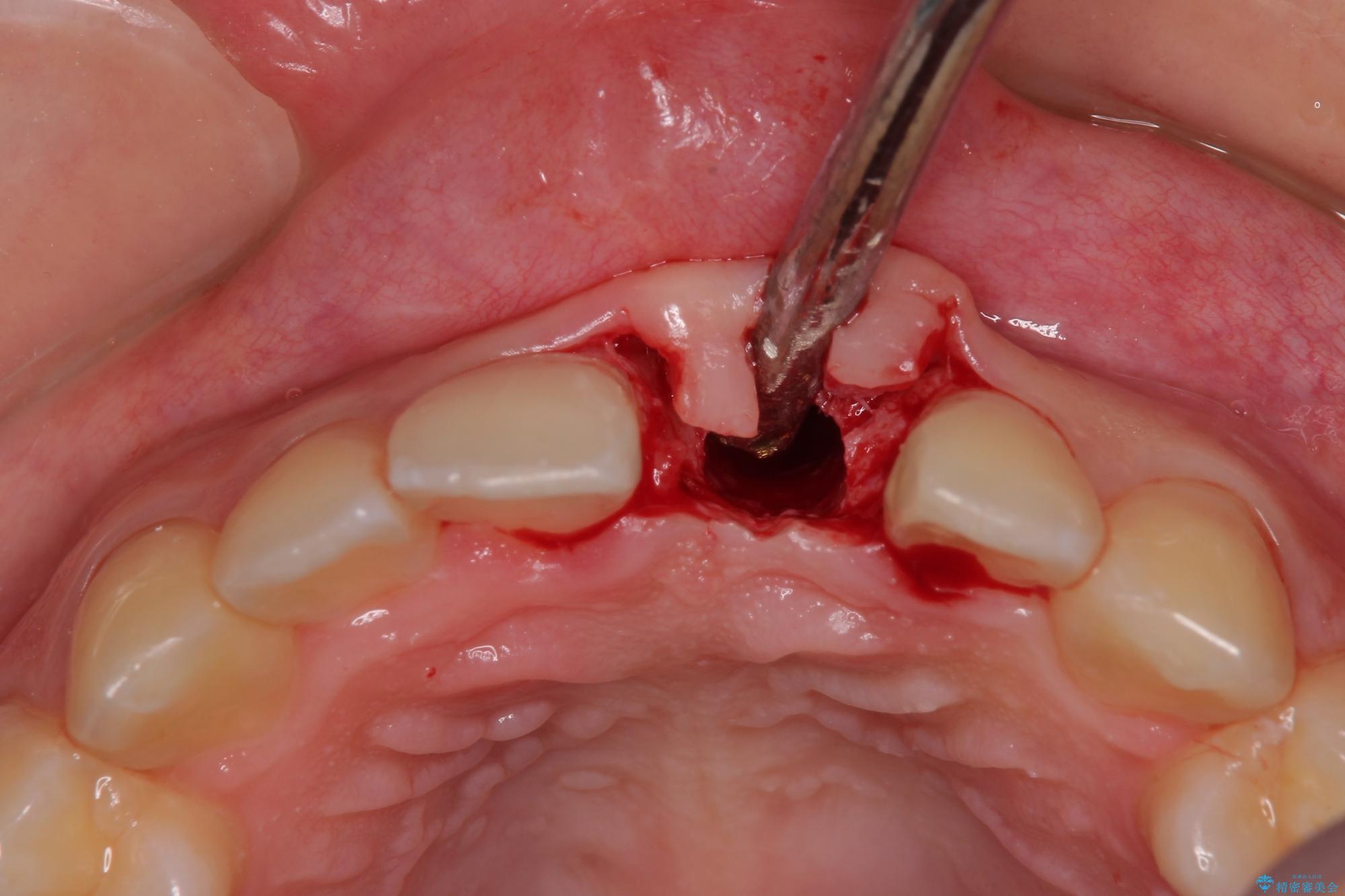 小学生の時に前歯を殴打したとのことで、歯根が吸収してしまい、抜歯が必要と判断されました。