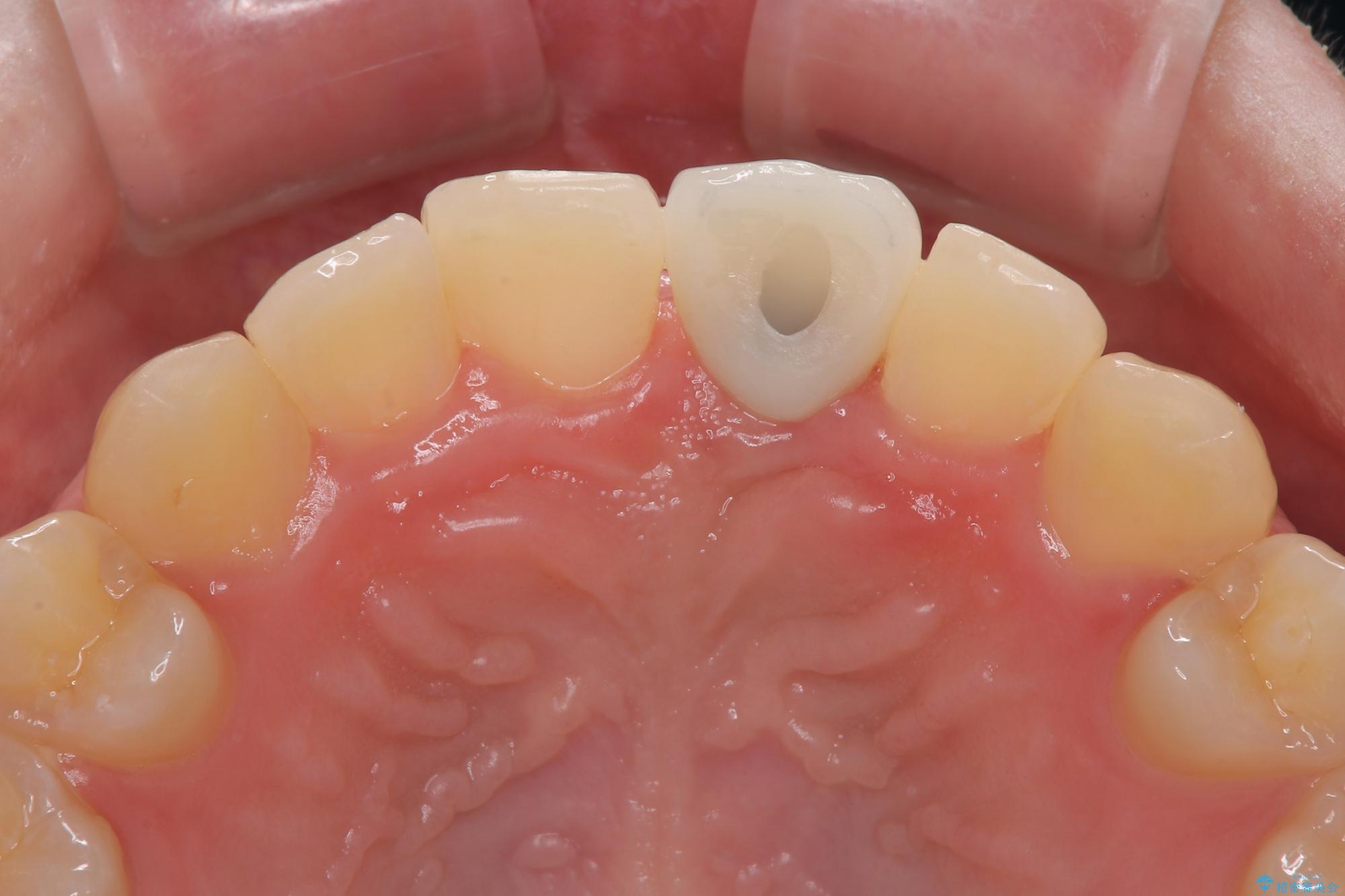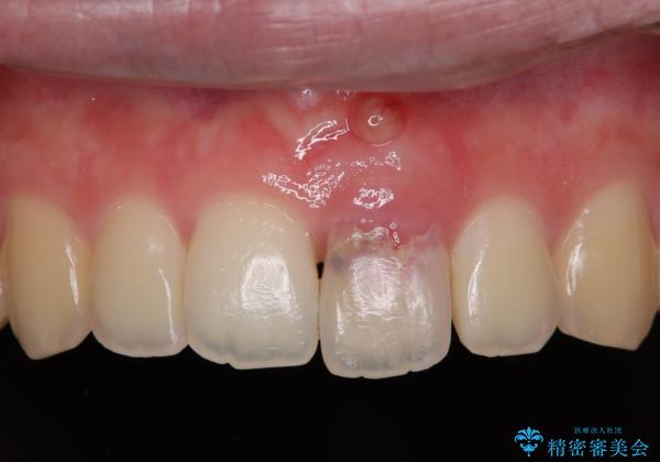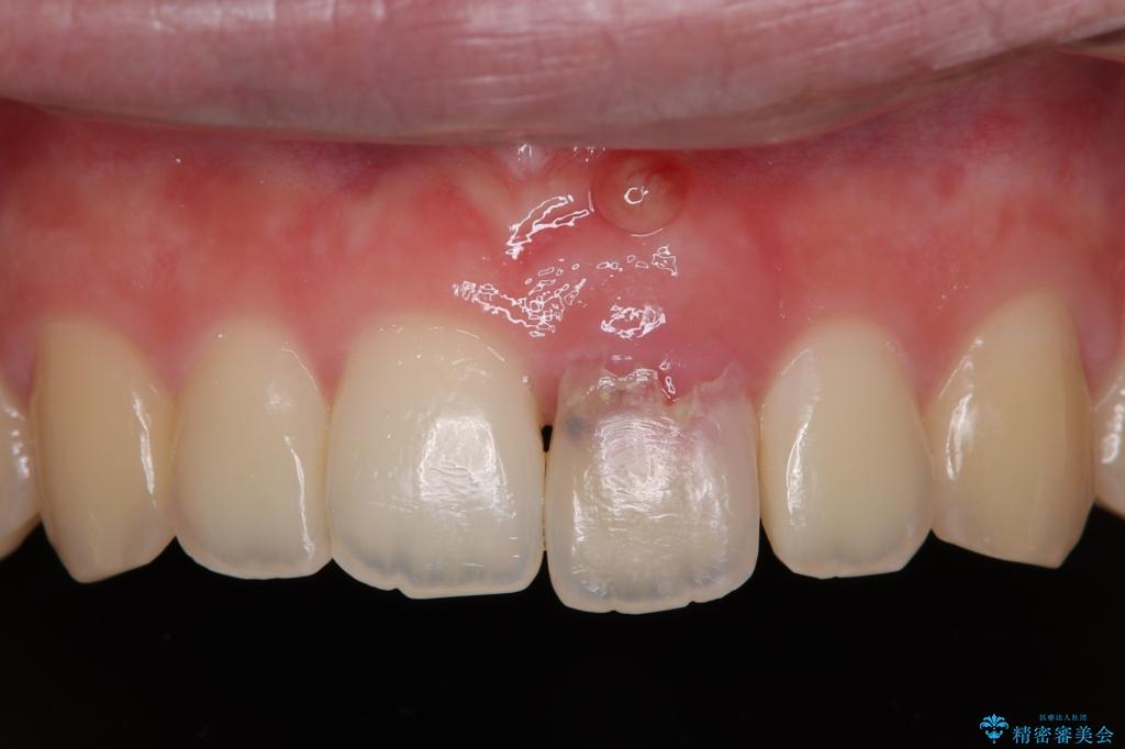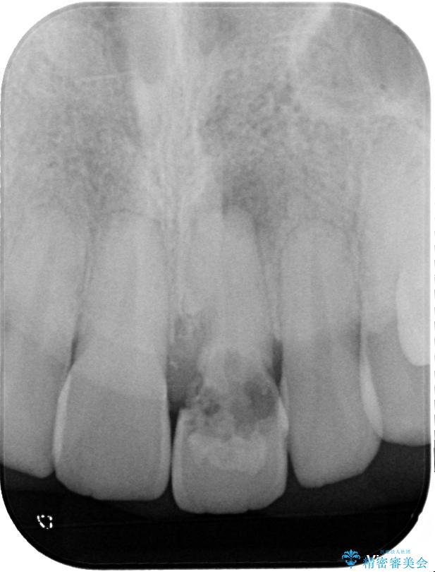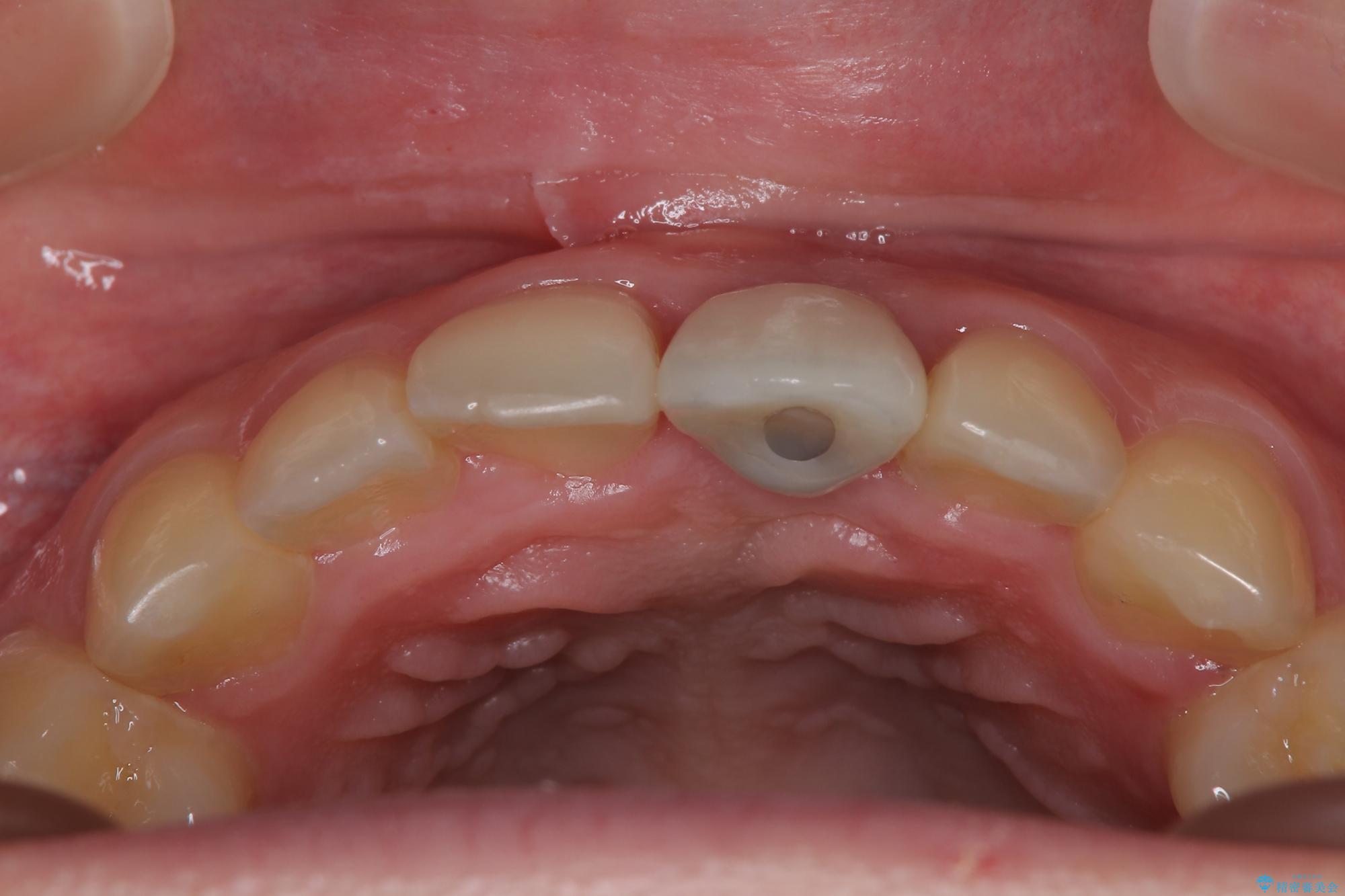 小学生の時に前歯を殴打したとのことで、歯根が吸収してしまい、抜歯が必要と判断されました。