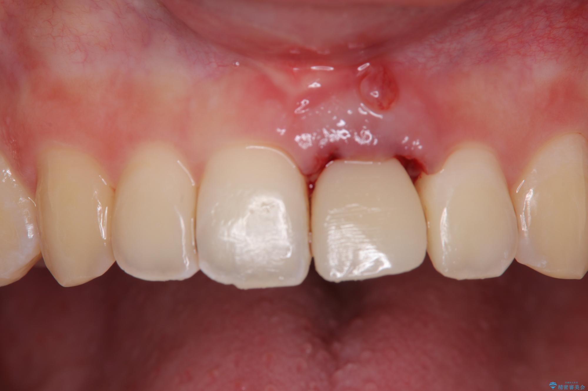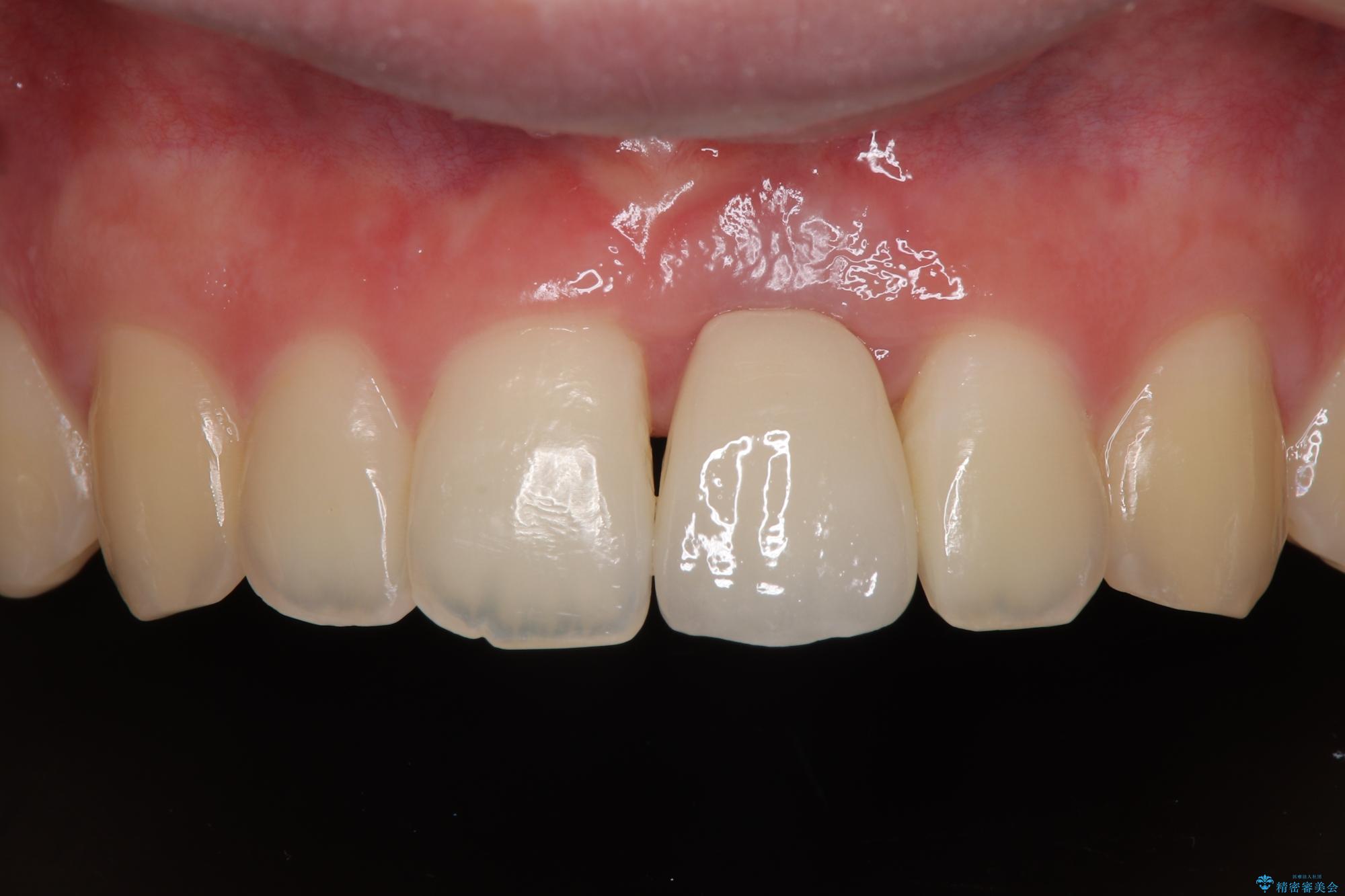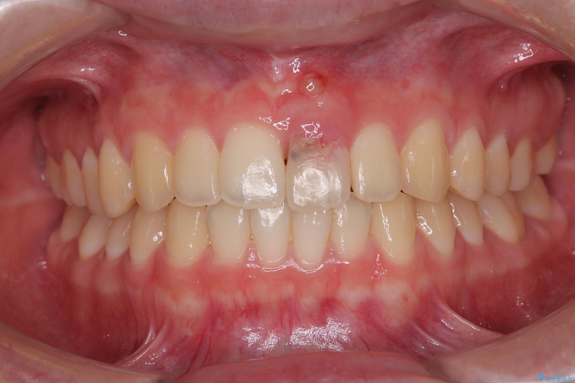 長い間歯肉が炎症を患っていたため、炎症改善後には歯肉がやや退縮した状態となっていました。