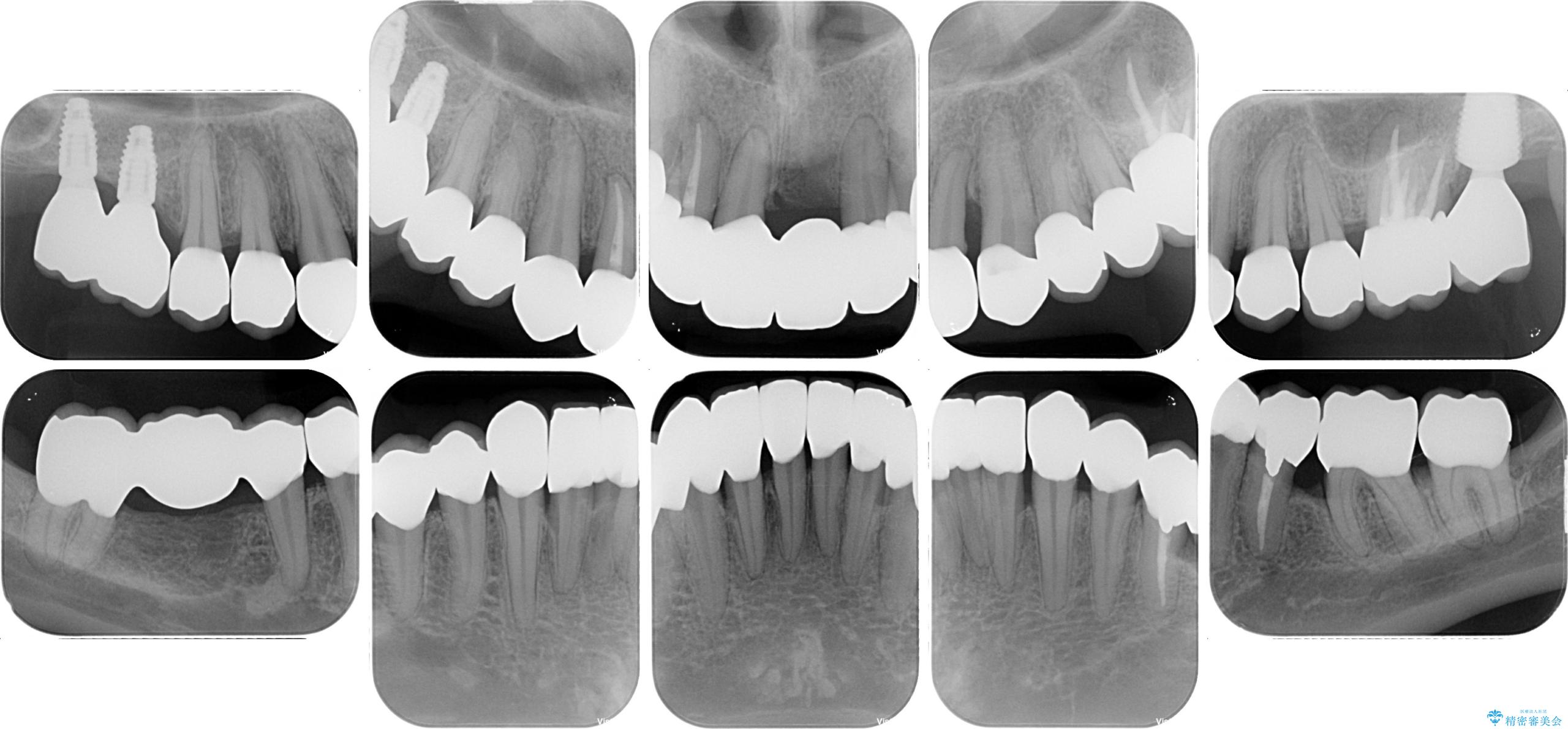 - かかりつけ医にて歯周病治療の名目で治療を行っていたものの、治療プランが明確でないままにインプラント処置を行うとことに疑問を感じ、来院された患者様です。