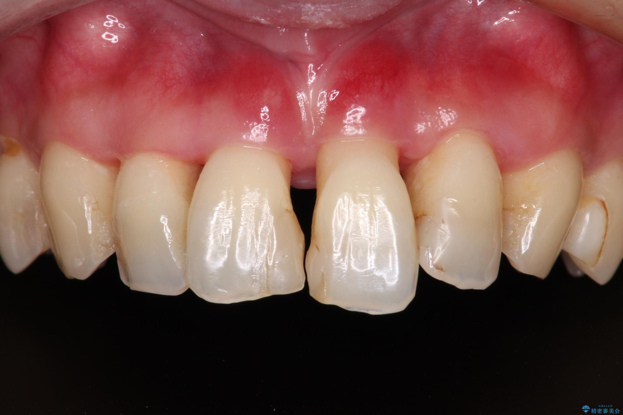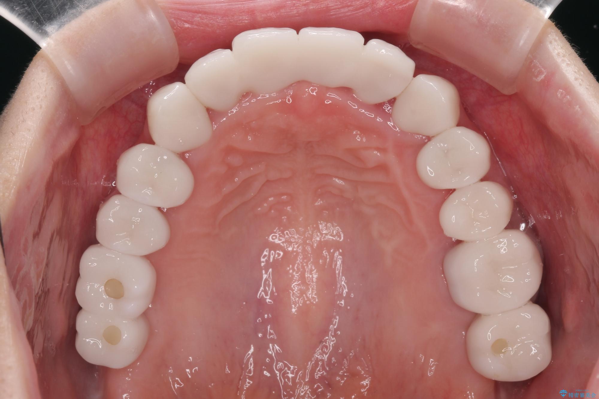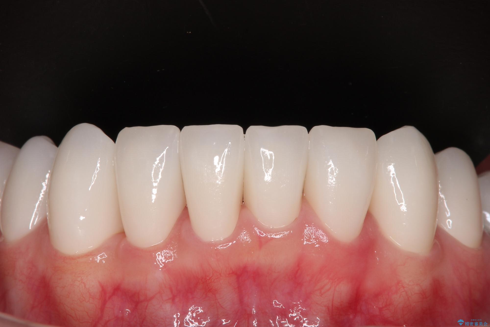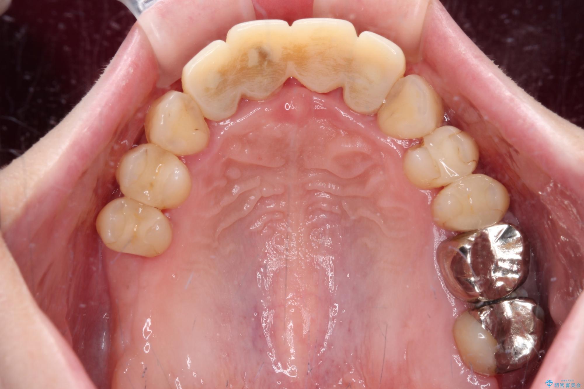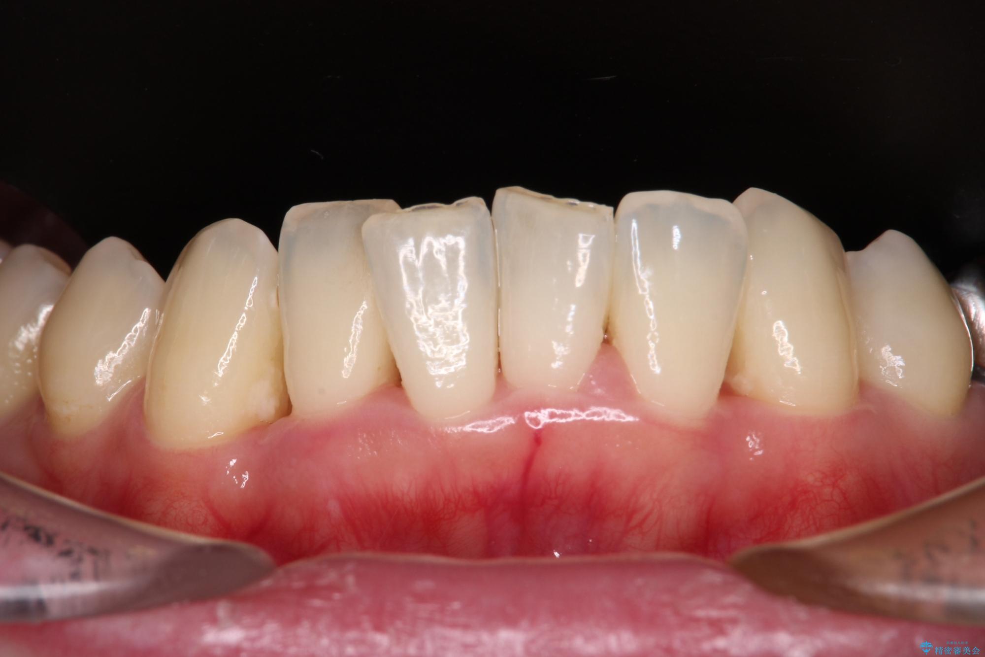 自他共に認める、非常に色白の患者様であったため、黄ばんだ歯の色を白くすることを希望されており、歯周病治療の該当部位に限らず、全顎的にオールセラミッククラウンにて補綴治療を行うこととしました。