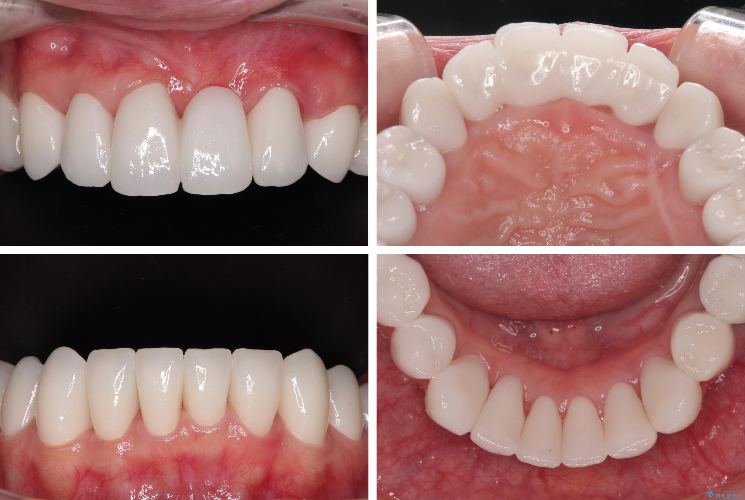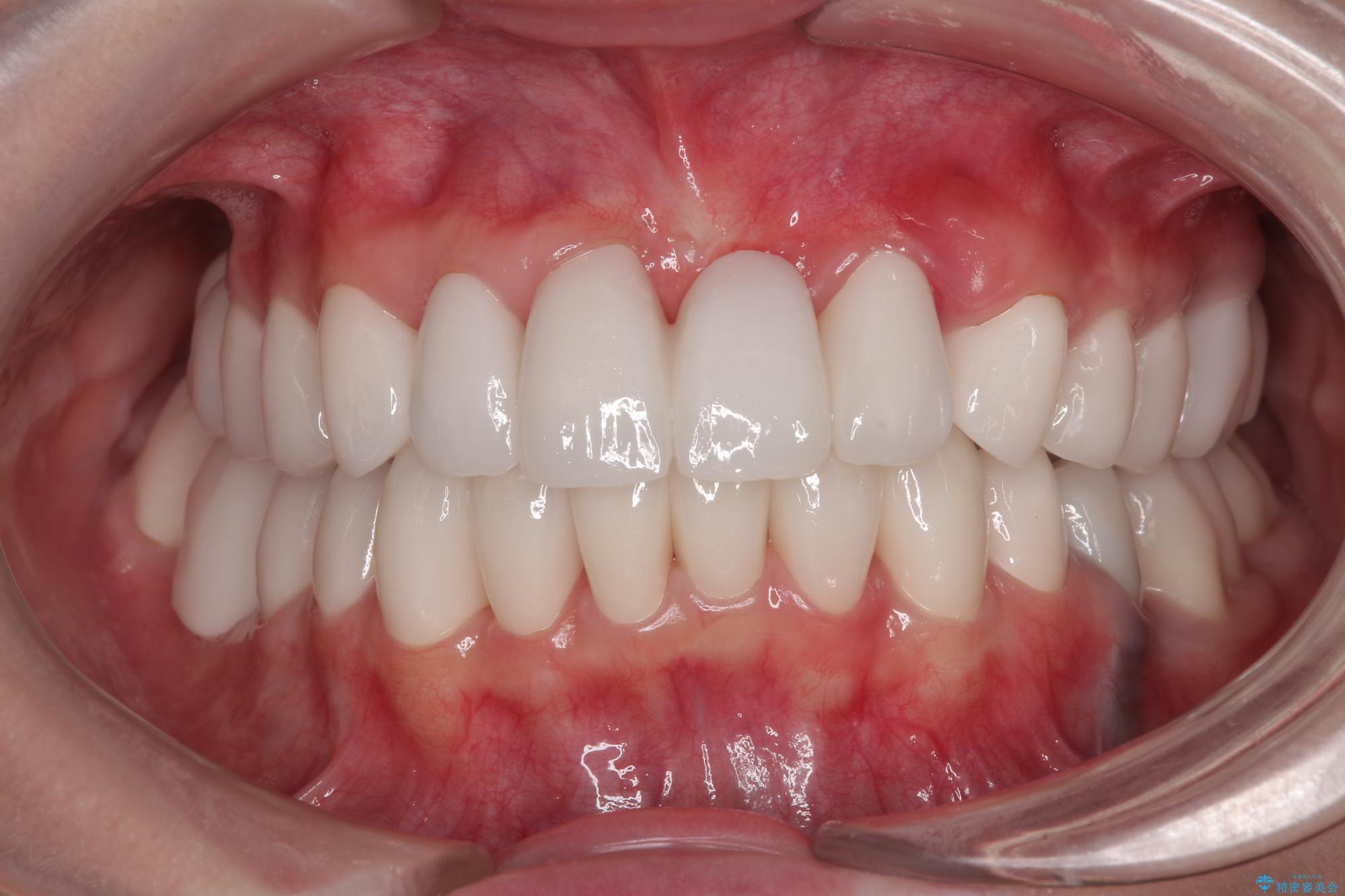 多くの外科処置を行ったため、治療期間も長くなり、患者様の負担は非常に大きなものとなりましたが、明るく健康的な口元となり、患者様には大変満足していただけました。