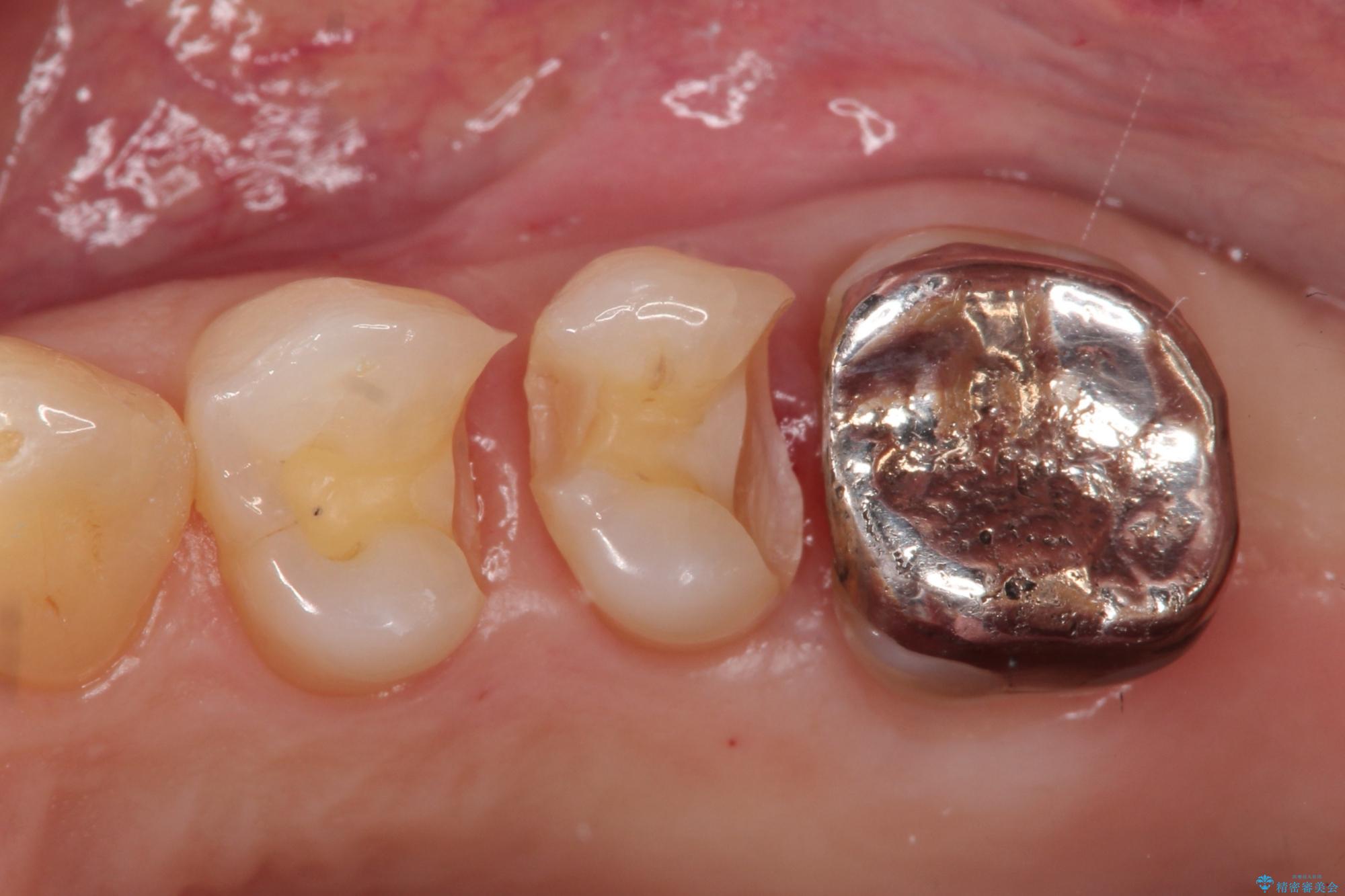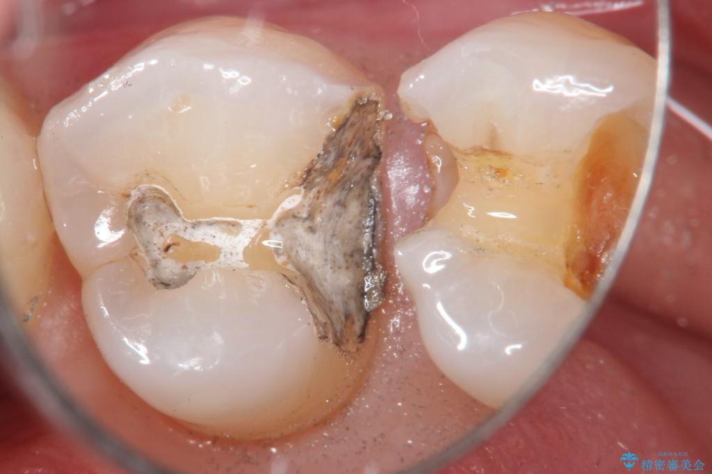 治療ではまず、古いメタルインレーを慎重に除去し、内部のわずかな虫歯を取り除いてから形を整えました。