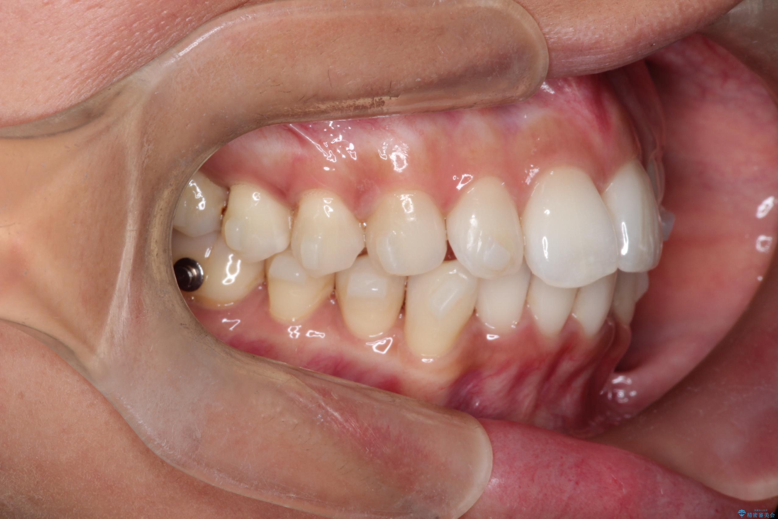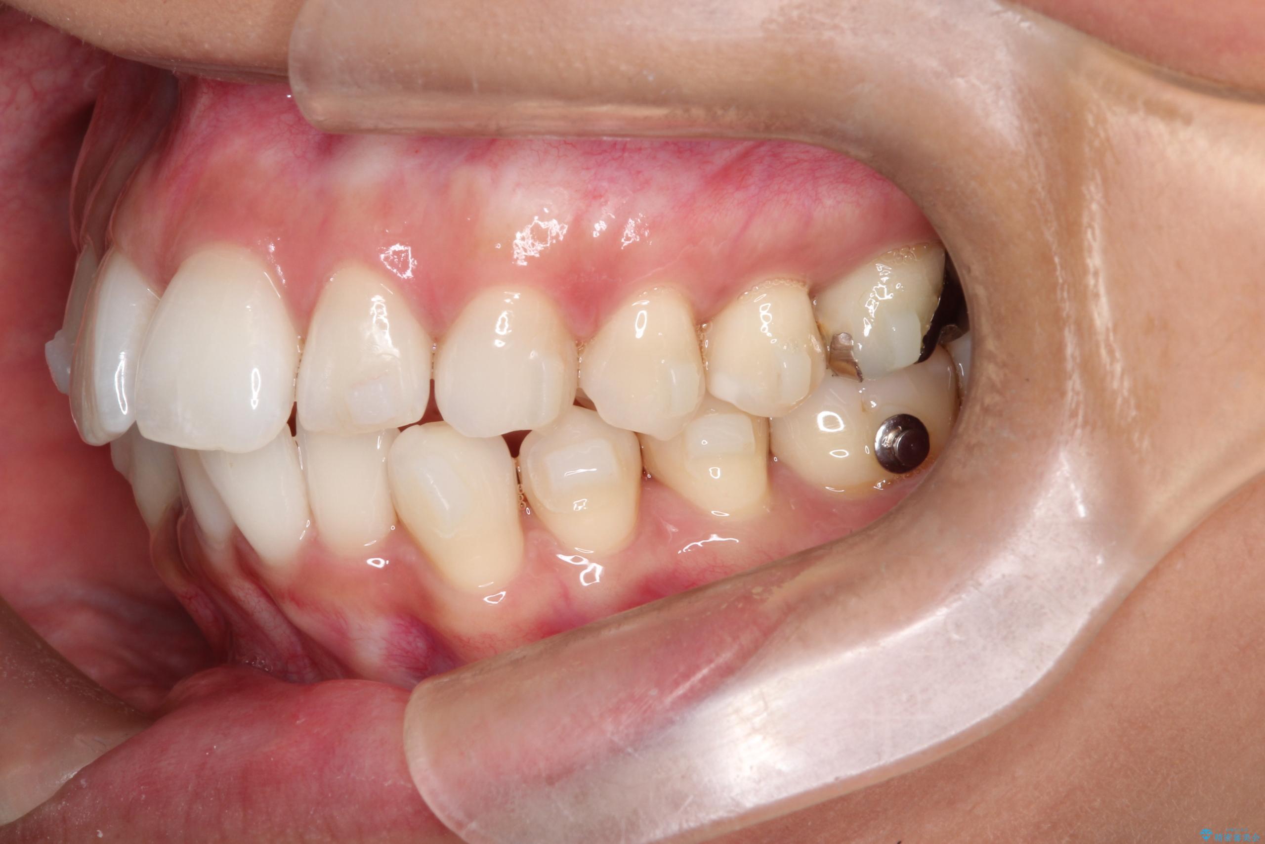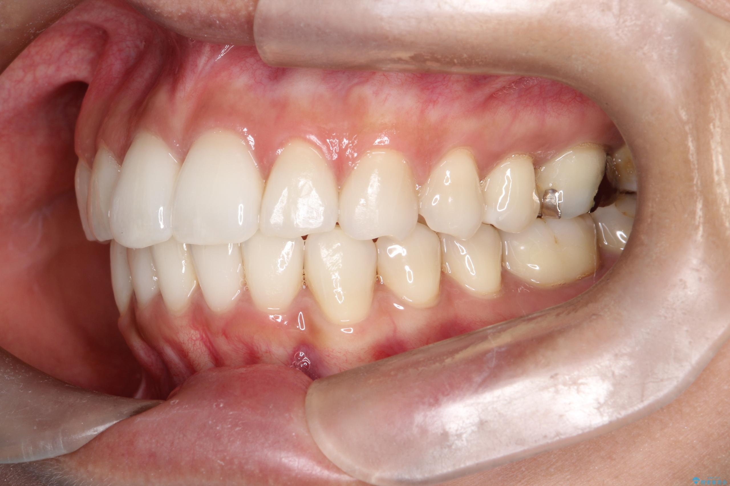 治療では、マウスピースの設計に基づき、奥歯から順に後ろへ移動させる遠心移動を行い、前歯のためのスペースを作りました。同時に、数箇所の歯の間にIPRを施すことで、歯の健康に影響のない範囲で精密に隙間を確保しました。