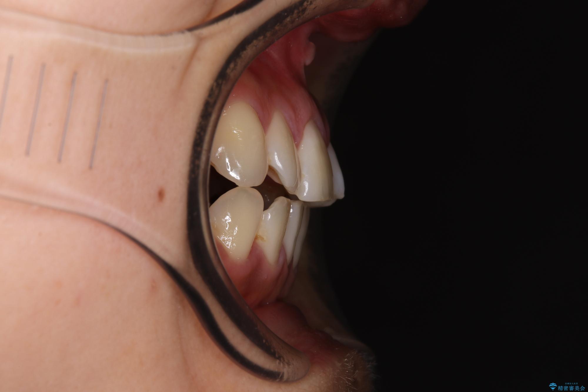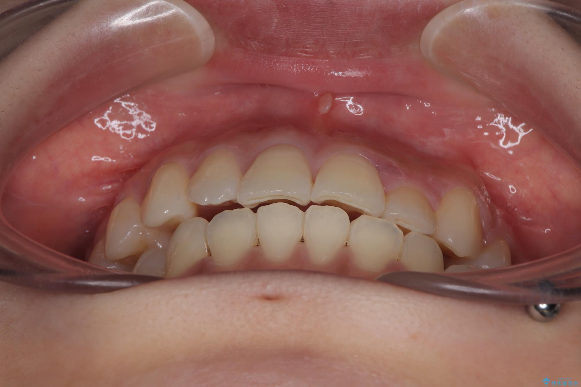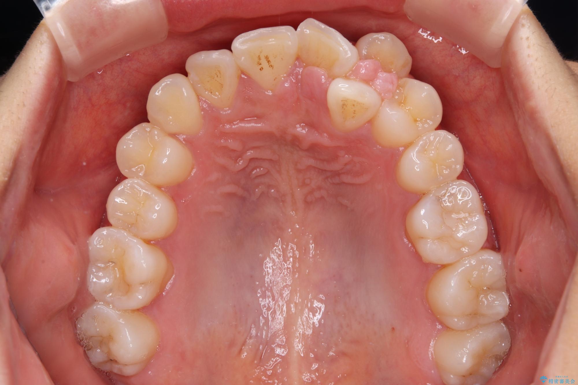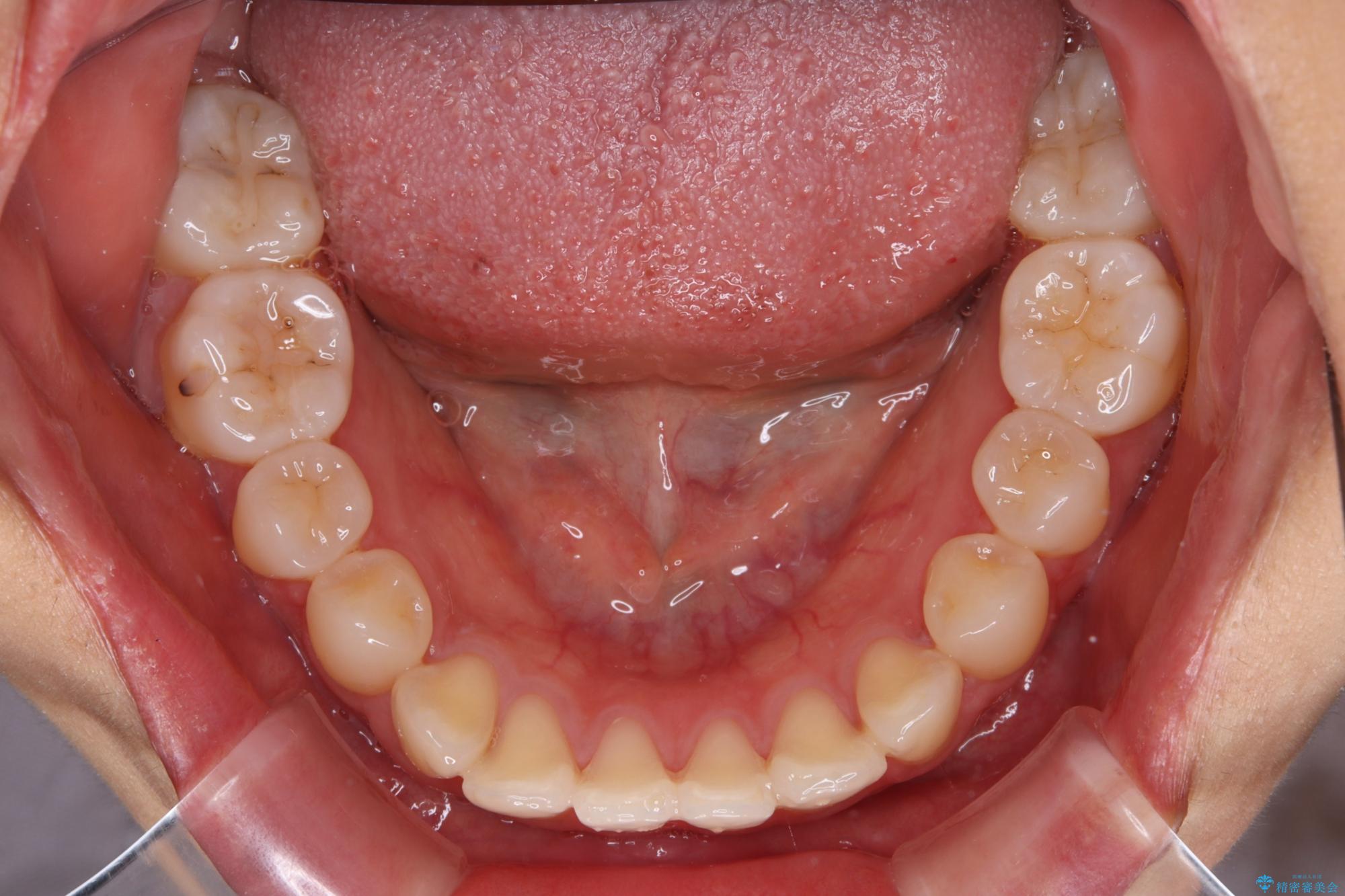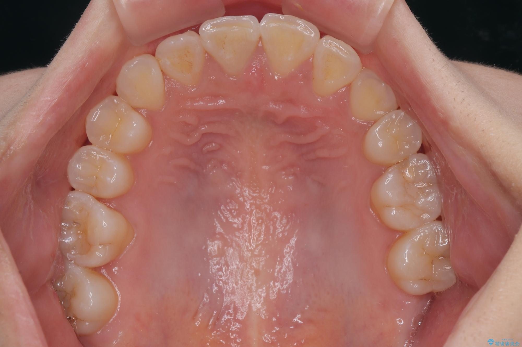 上顎歯列が下顎の歯列に対して狭小であり、一部下顎の奥歯が上顎よりも外側に位置している状態でした。