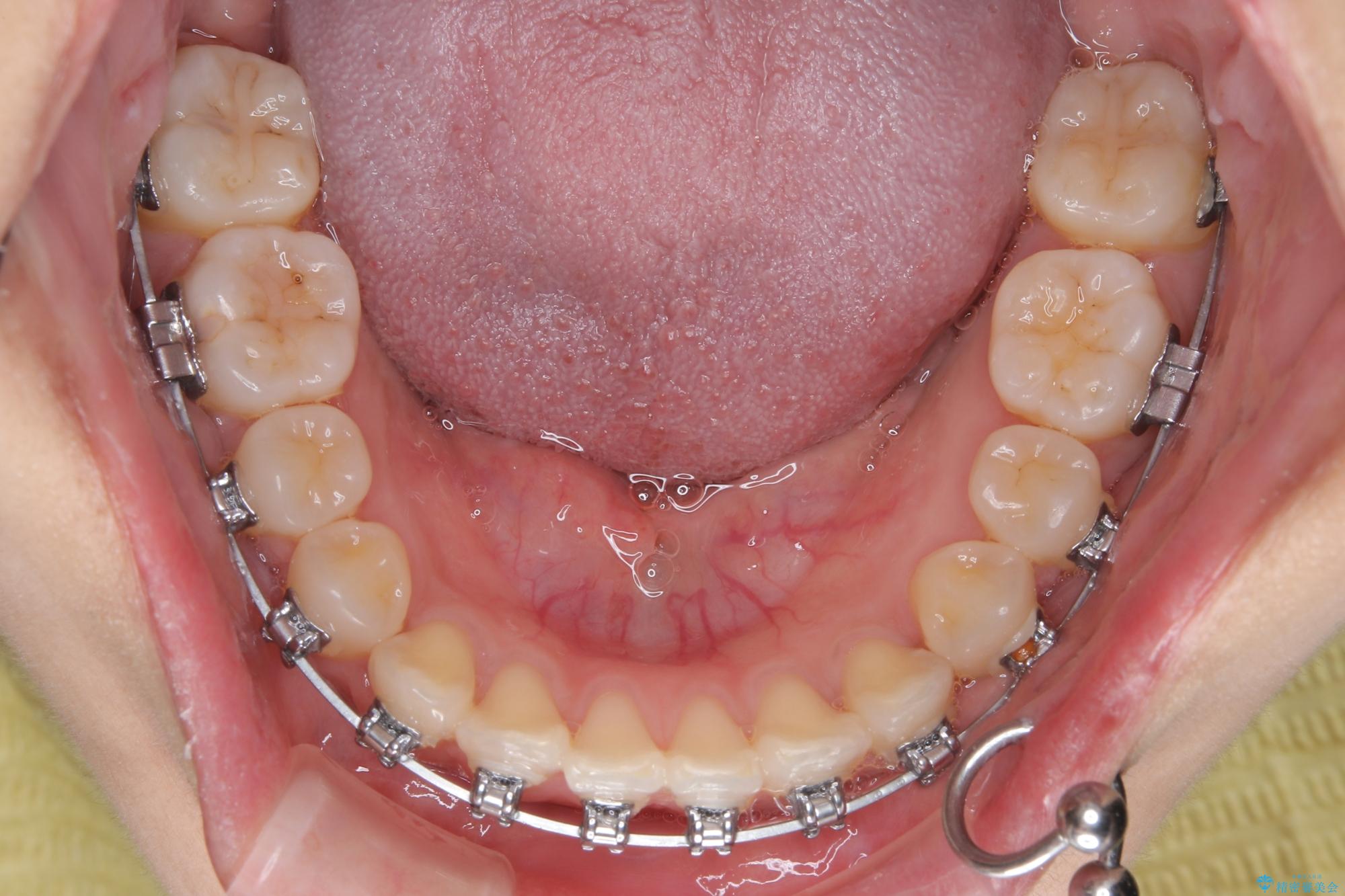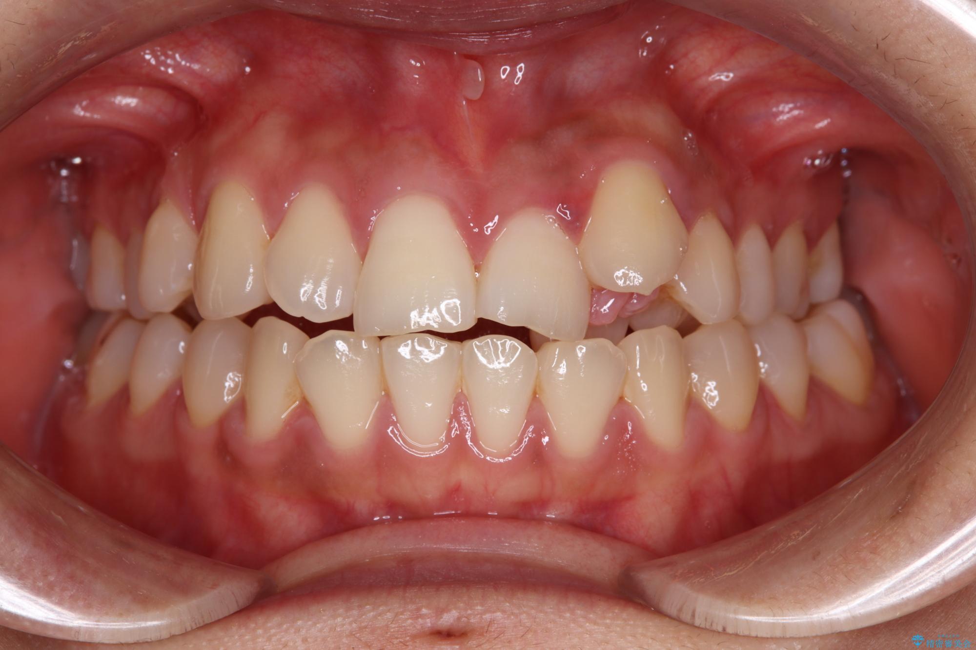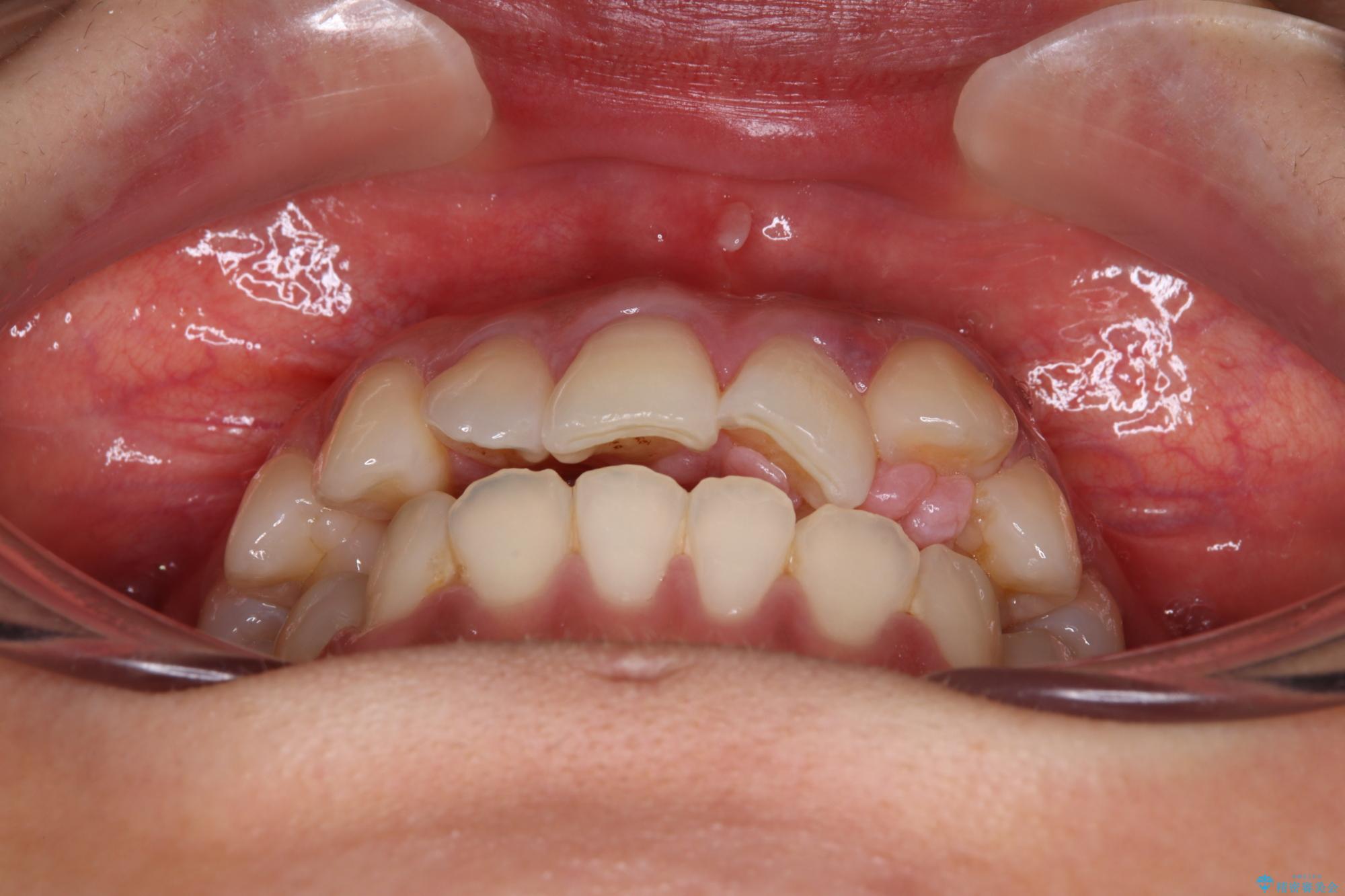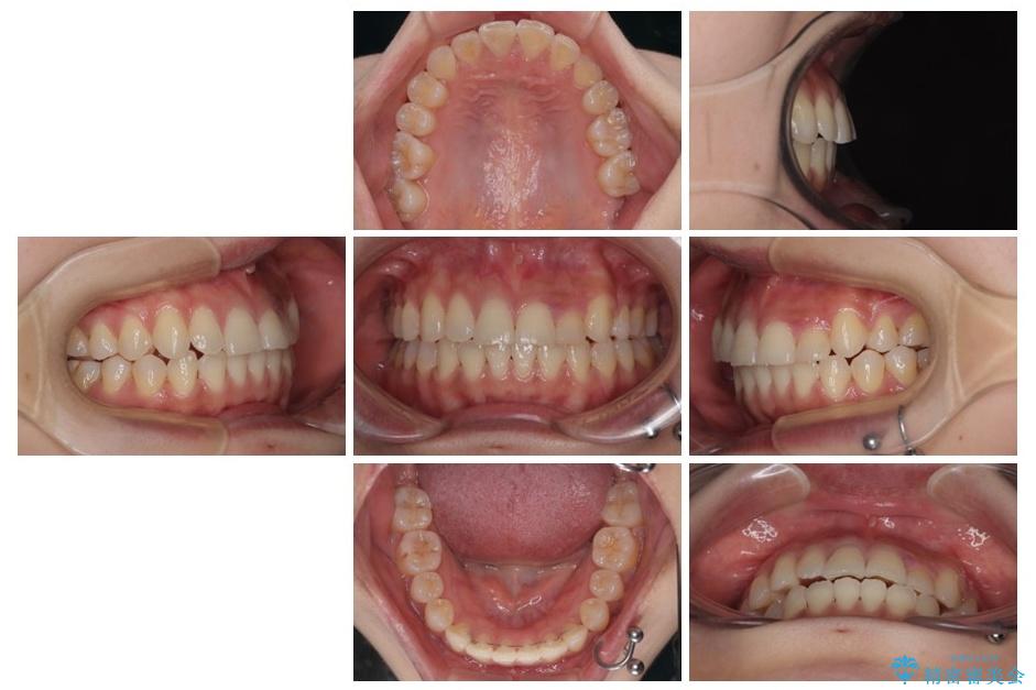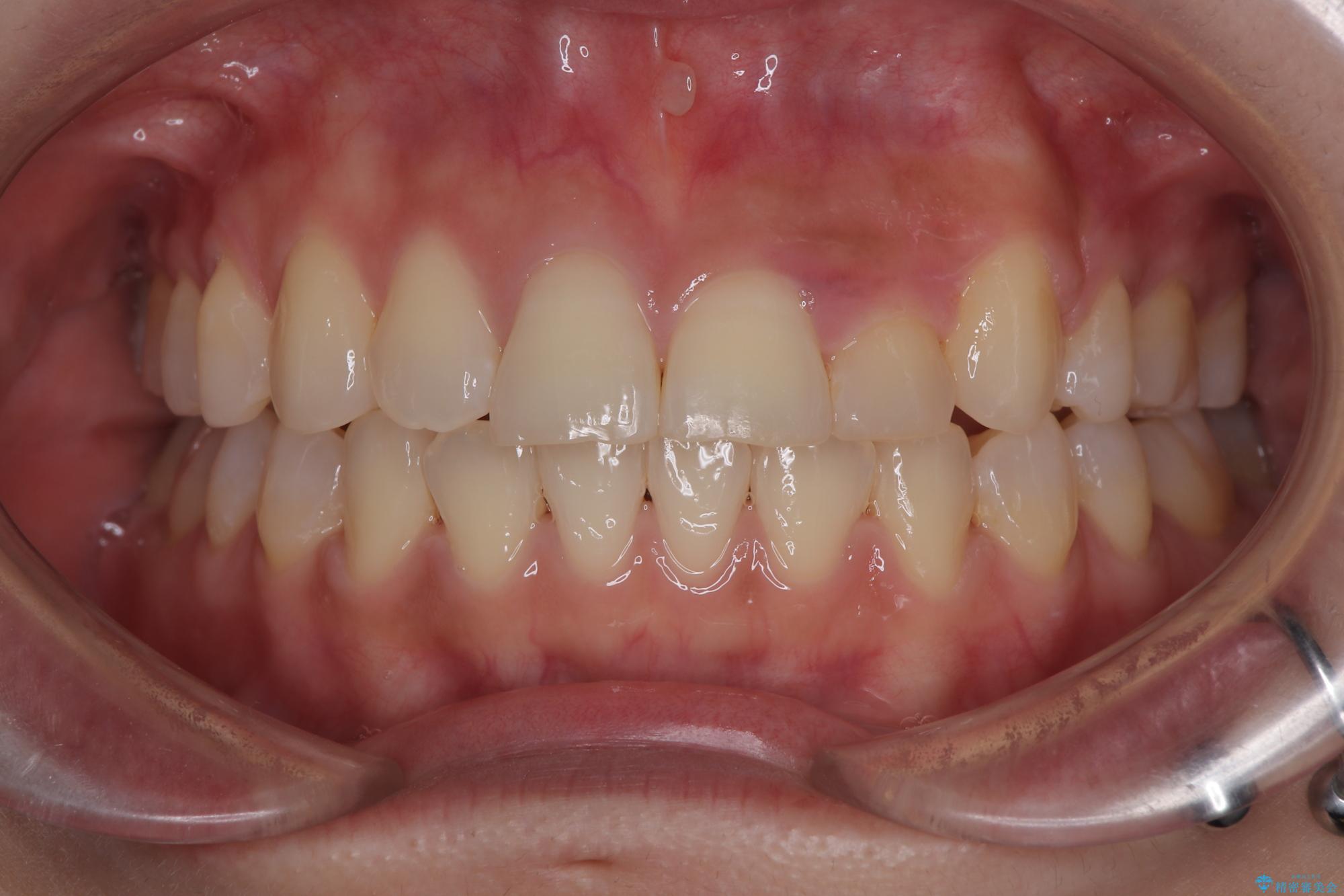 上顎歯列が下顎の歯列に対して狭小であり、一部下顎の奥歯が上顎よりも外側に位置している状態でした。