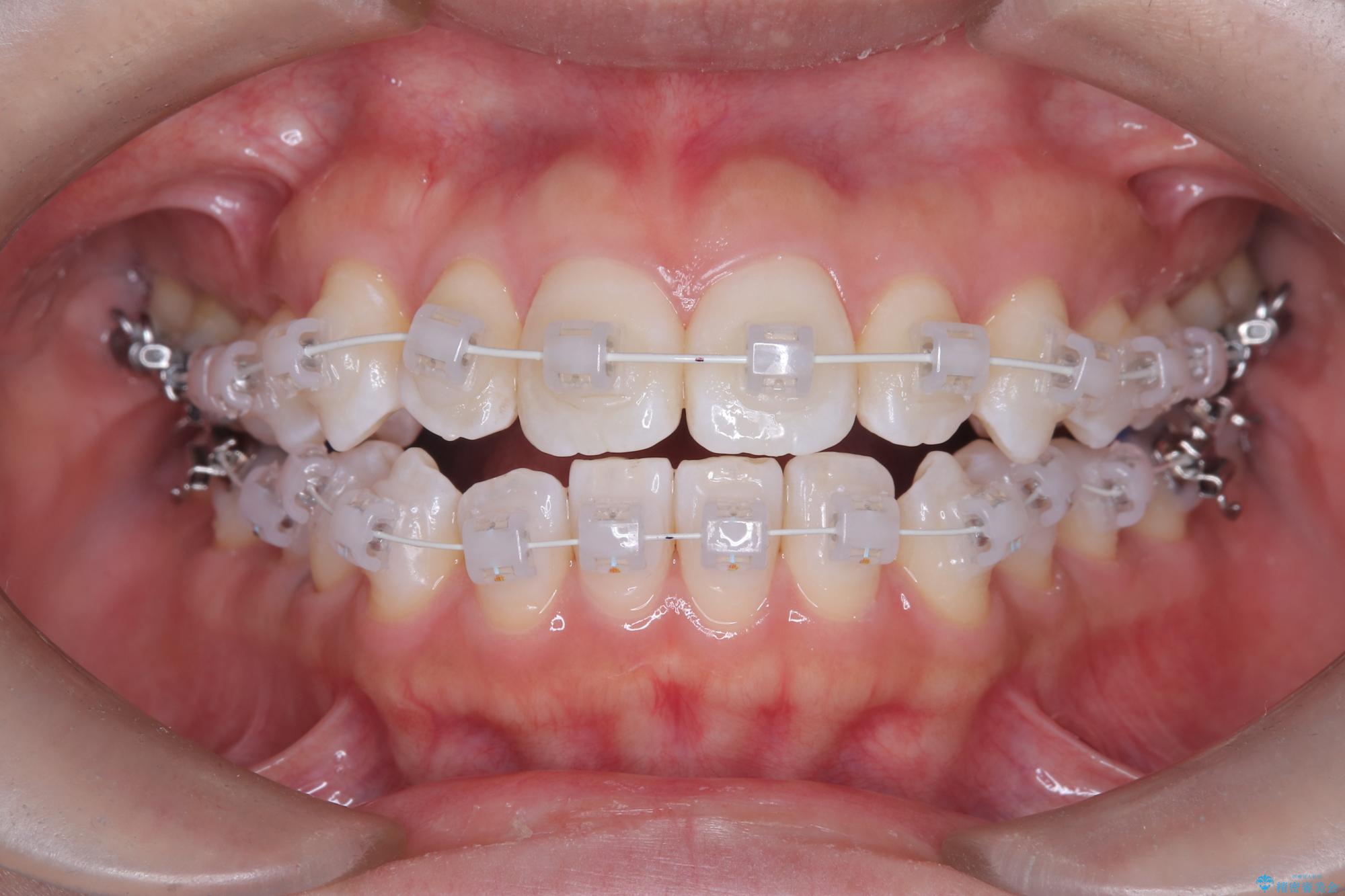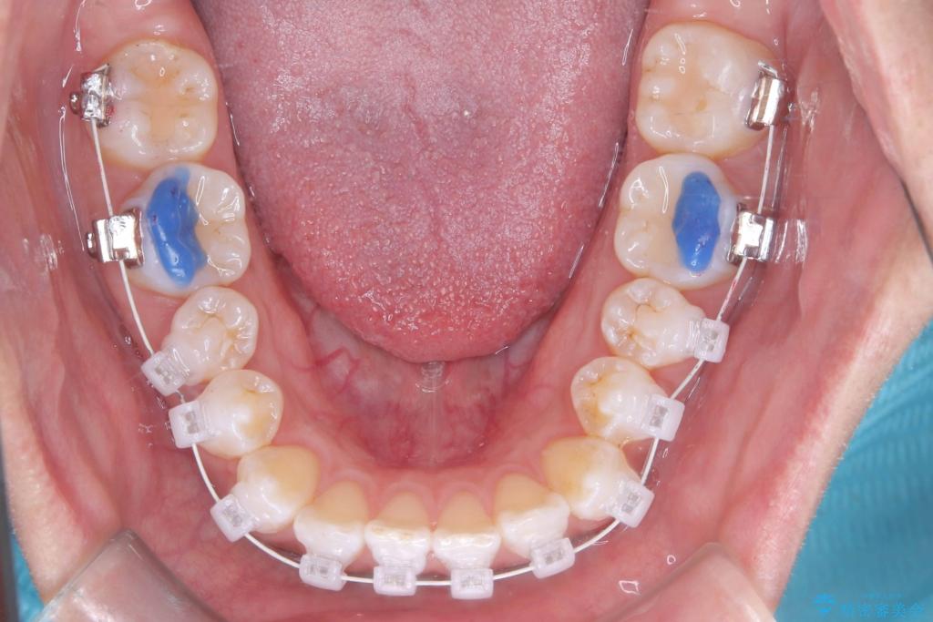上下の歯が干渉しない環境を作りながら、捻転や叢生の改善を進めました。