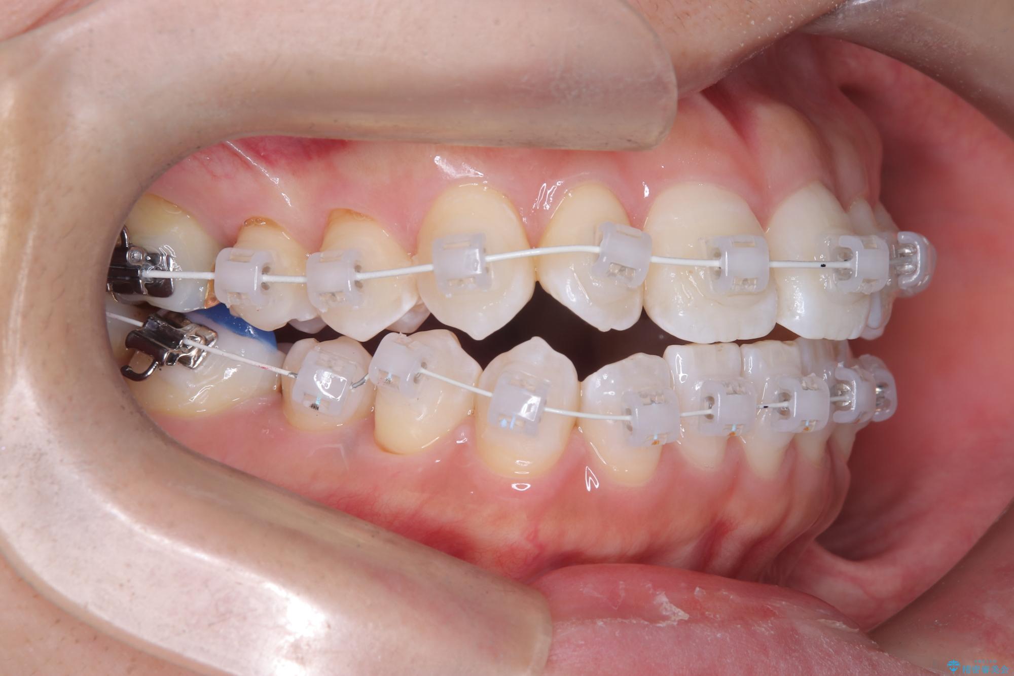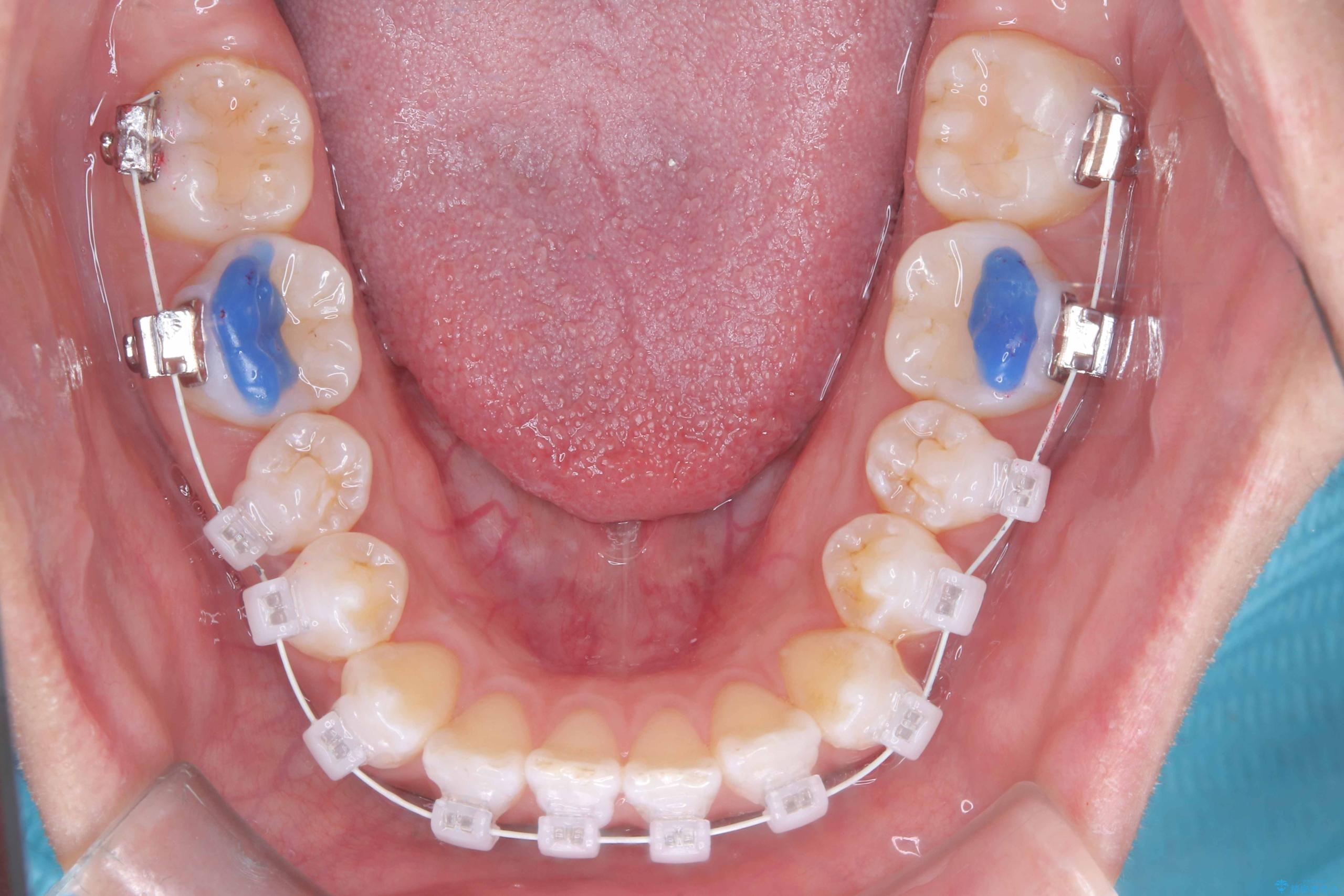 治療は、白いコーティングが施されたワイヤーを使用した審美性の高い装置にて行っています。