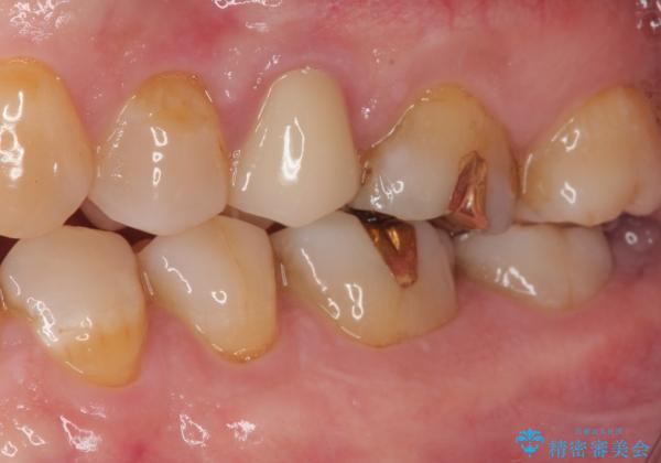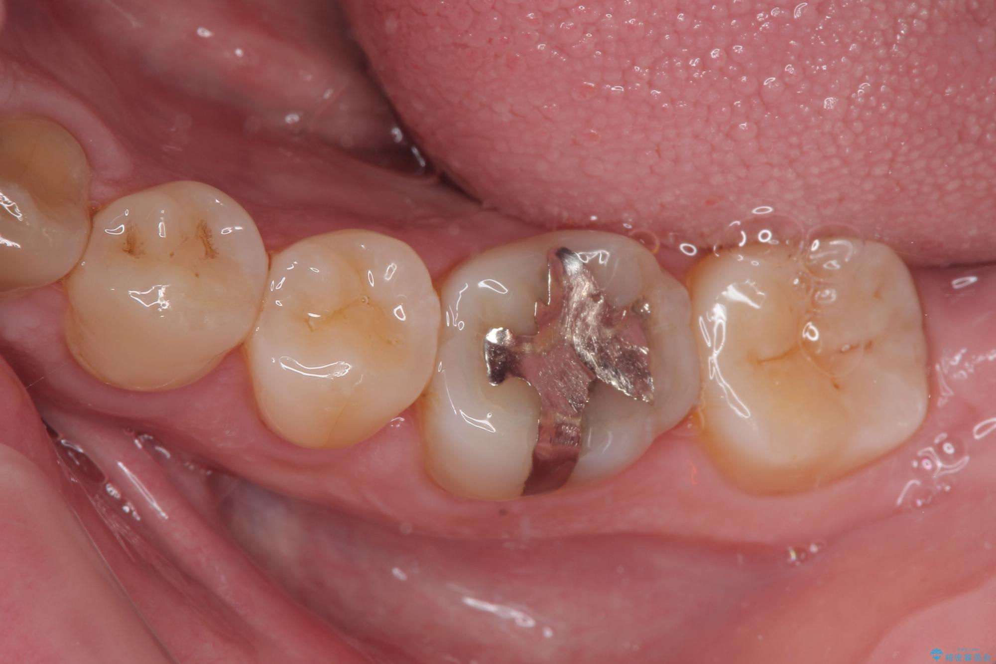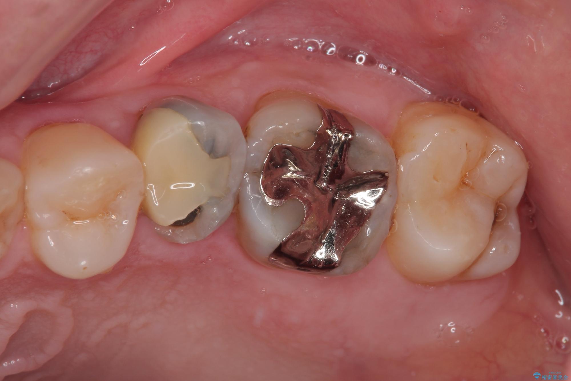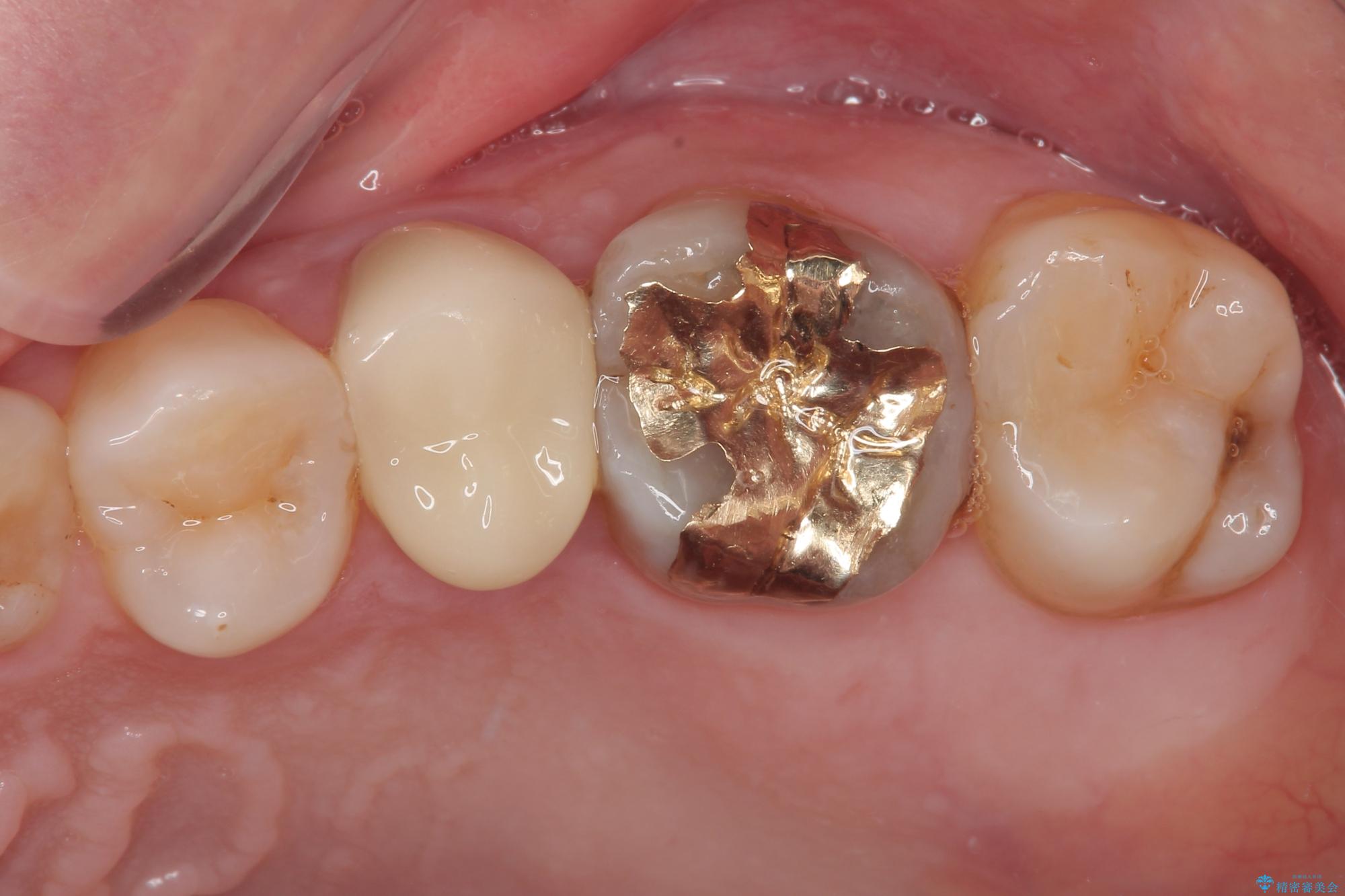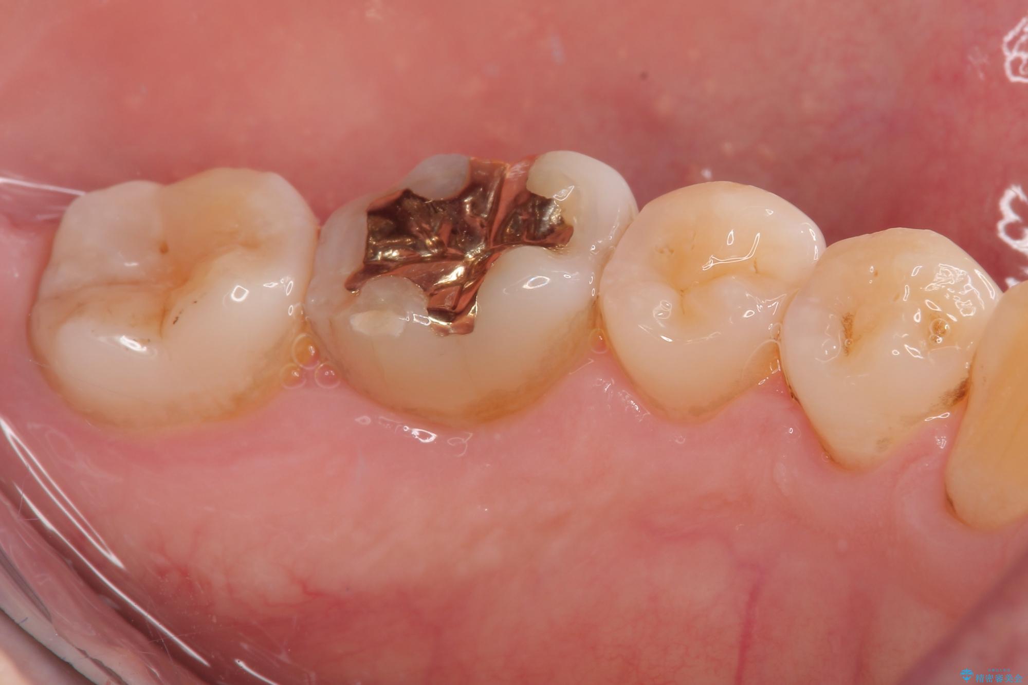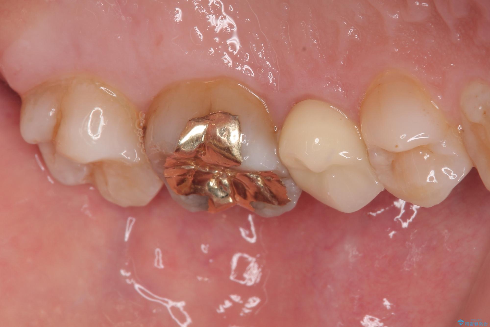 に入っていた保険診療の銀歯(メタルインレー)を、精度の良いゴールドインレーへやり替えを行いました。