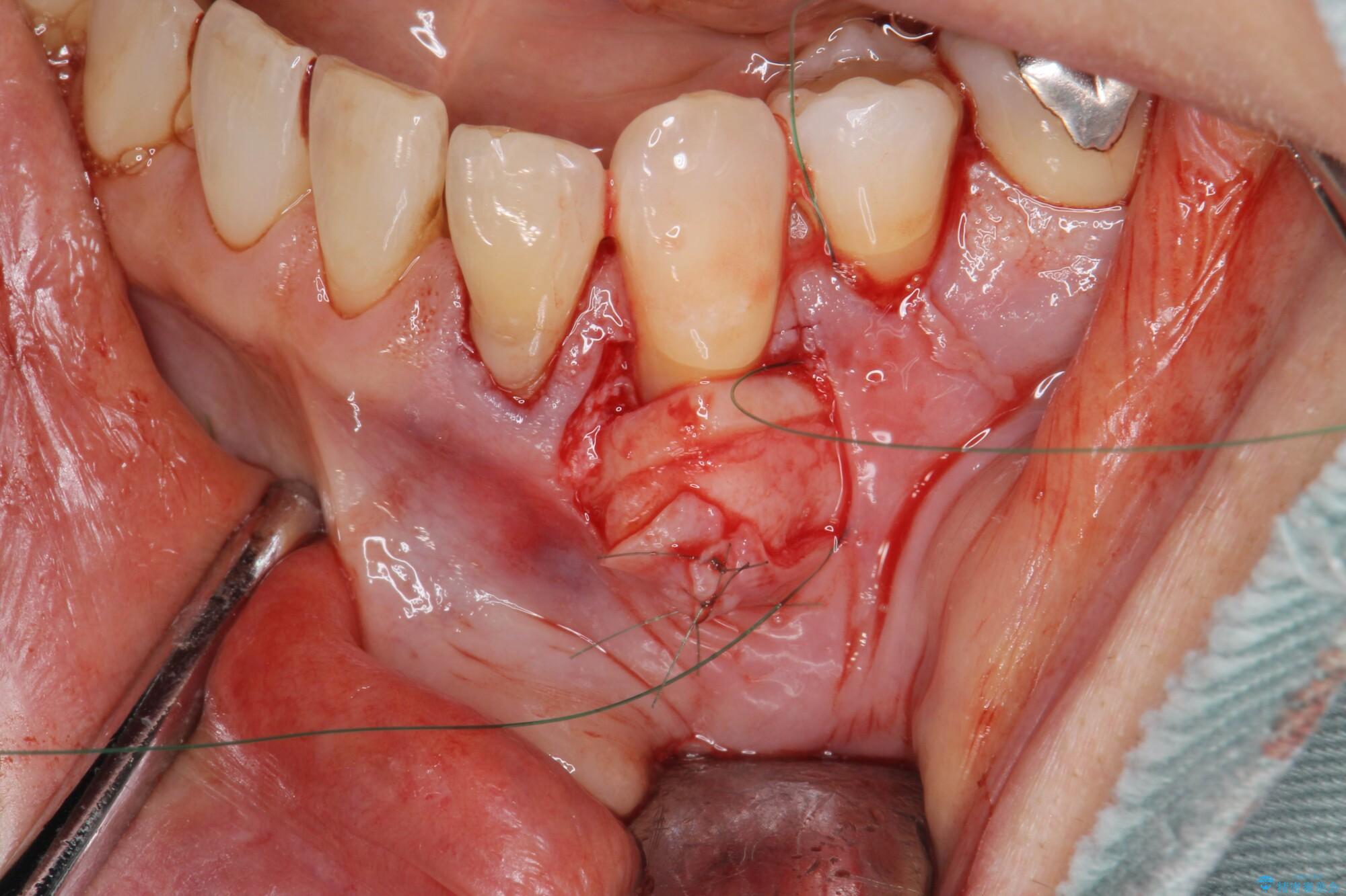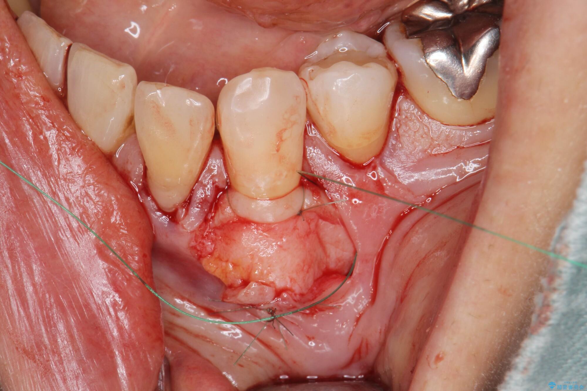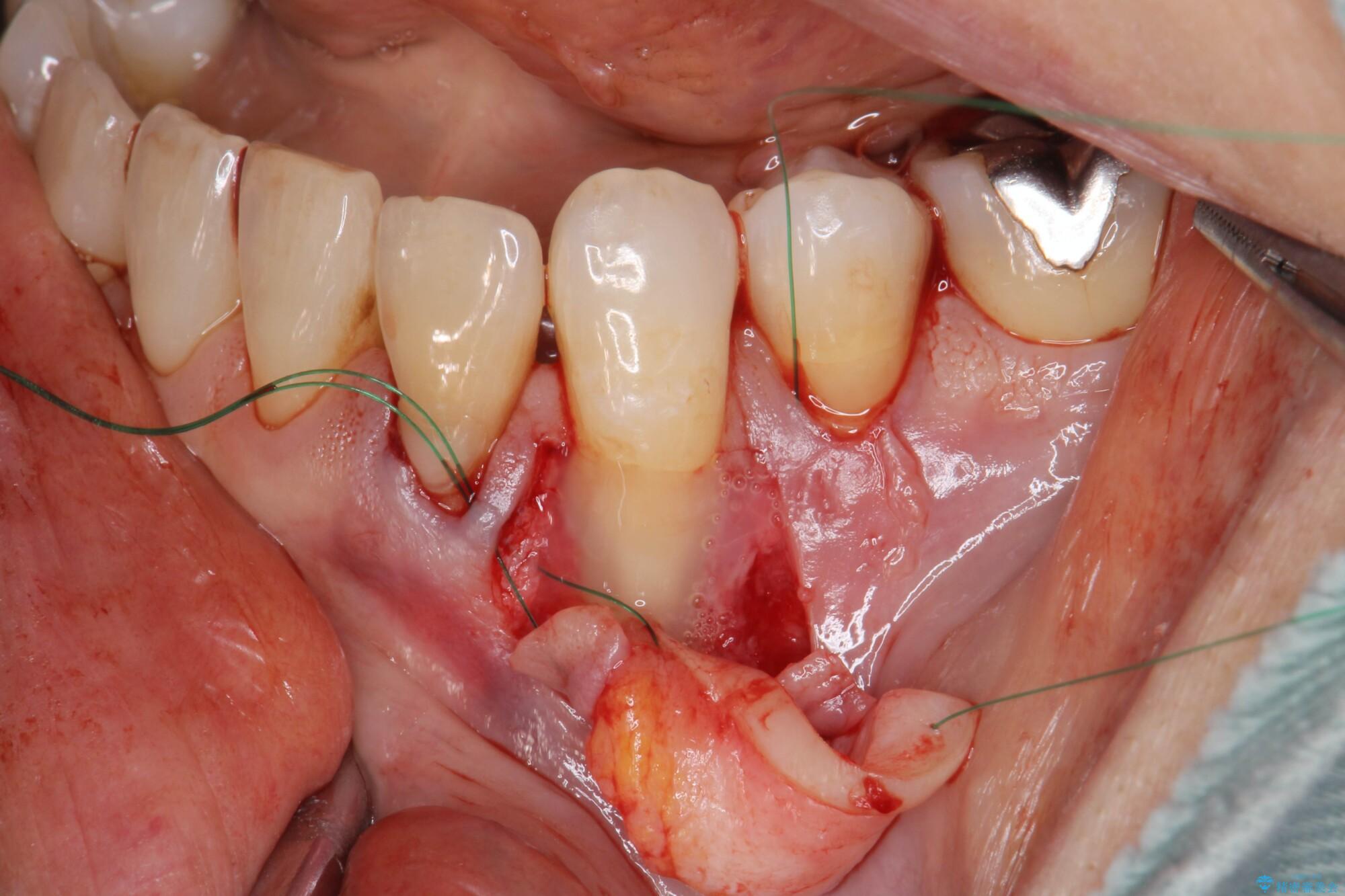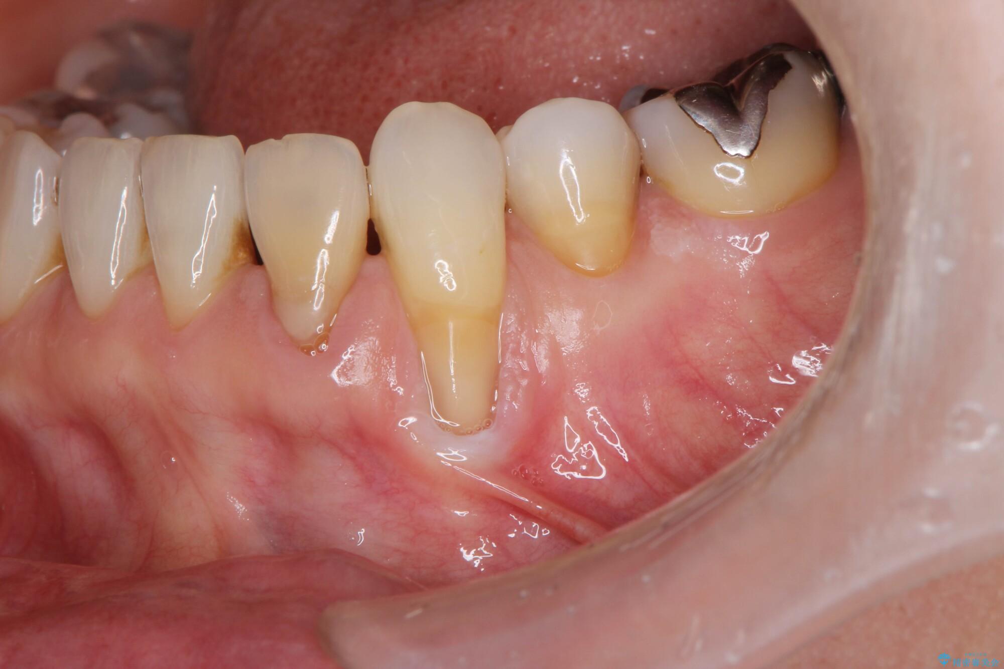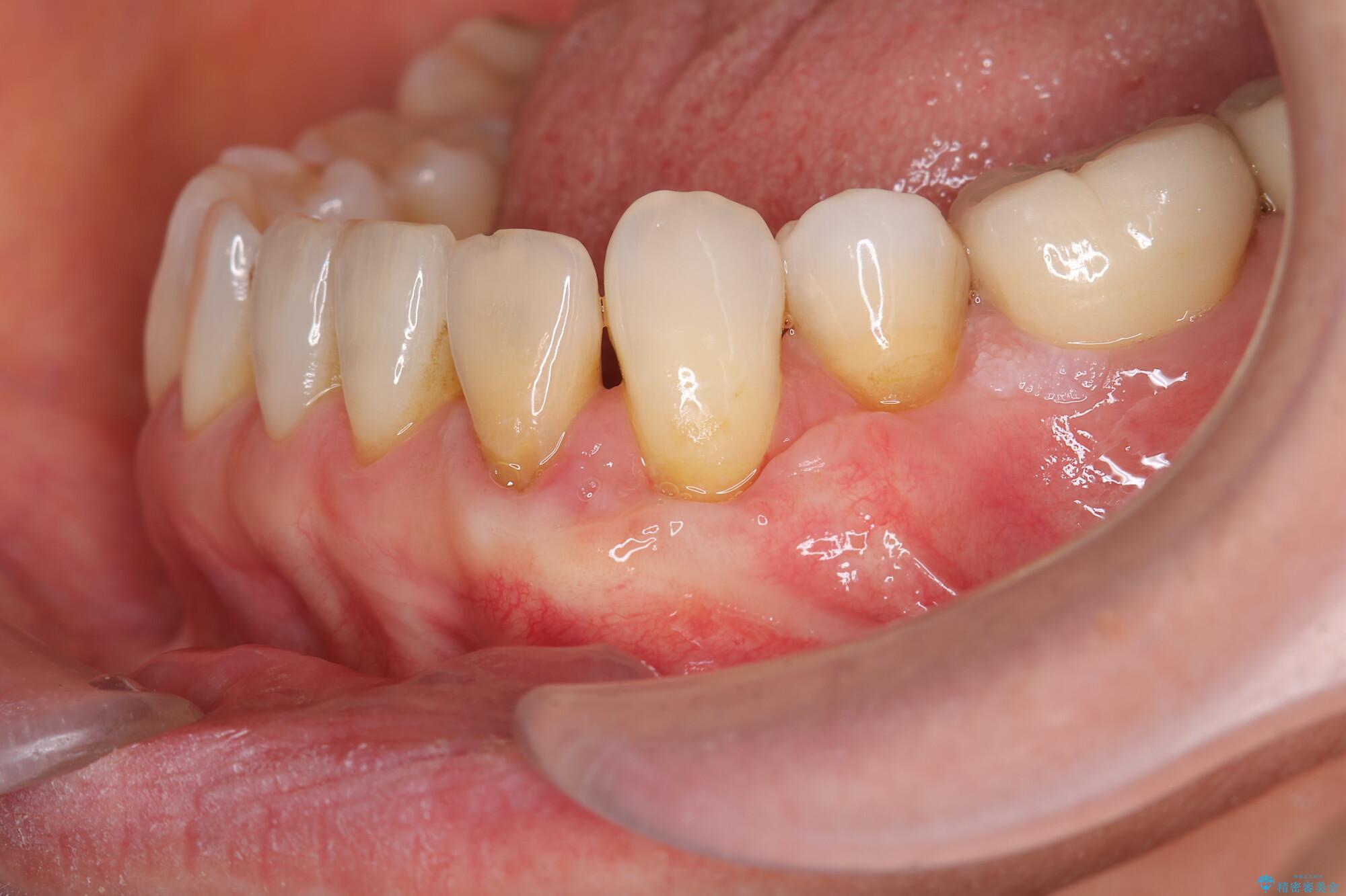 - 見た目に気になる下の前歯の歯肉退縮の改善を希望され来院されました。