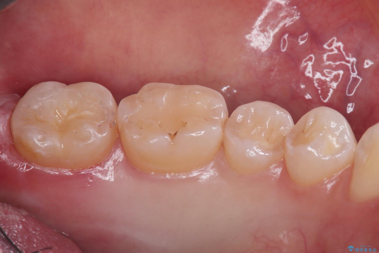 詰め物のやりかえを提案したところ、セラミックインレーをご希望されたのでセラミックインレーにて治療をすることにしました。
