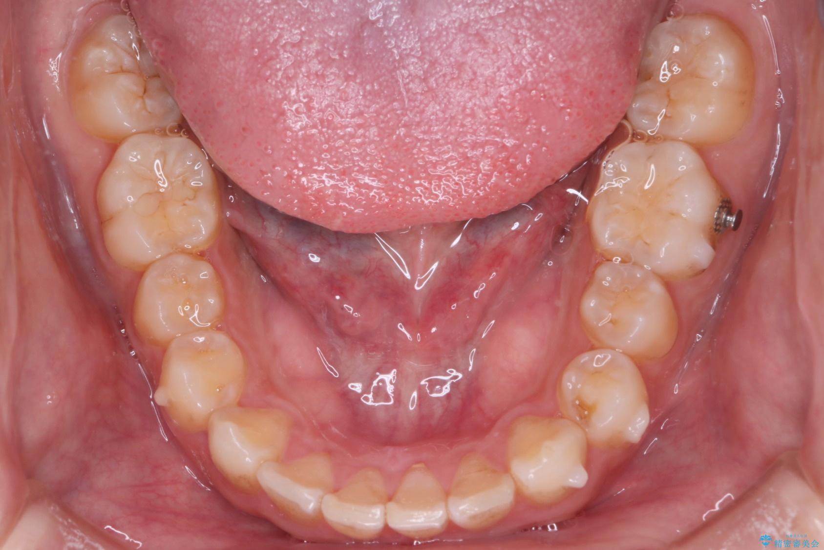 患者様に理解していただいた上で、インビザラインにてIPR(歯と歯の間を削る処置)を行いながら前歯のがたつきを整える治療計画を立てました。