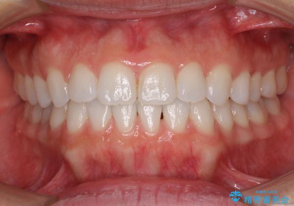 こちらの患者様も、一時的に前歯でしか咬めない時期がありましたが、比較的早く咬み合わせが安定し、1年ほどで治療を終えることができました。