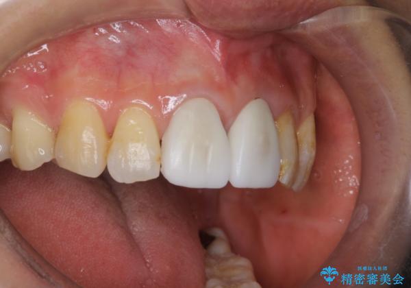 他の歯に亀裂や白濁など複雑な色合いがある場合、それらをセラミックで再現することも可能ですが、スタンダードのオールセラミックではある程度の同調となります。