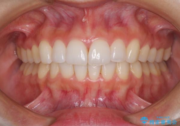 結婚式までに前歯を整えたいとのことでしたが、インビザラインでは先に奥歯を移動させてから前歯を動かすため、間に合わない可能性がありました。しかし、結婚式までに期間があったことと、マウスピースをしっかりと装着してくださったことで、十分な歯列に整えることができました。