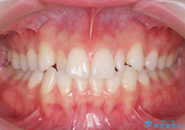 大きくしようにも、幅が少ない上に、また、内側に入ってしまっているため、矯正治療で前歯を並べてからセラミックでかぶせることにしました。