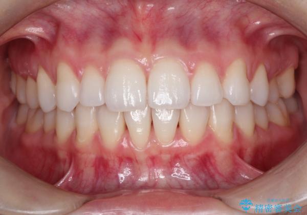 非抜歯矯正の場合、大きく前歯を下げることはできませんが、奥歯の遠心移動や歯のサイズダウンにより歯軸を立て、見かけ上の出っ歯感をある程度改善することができます。