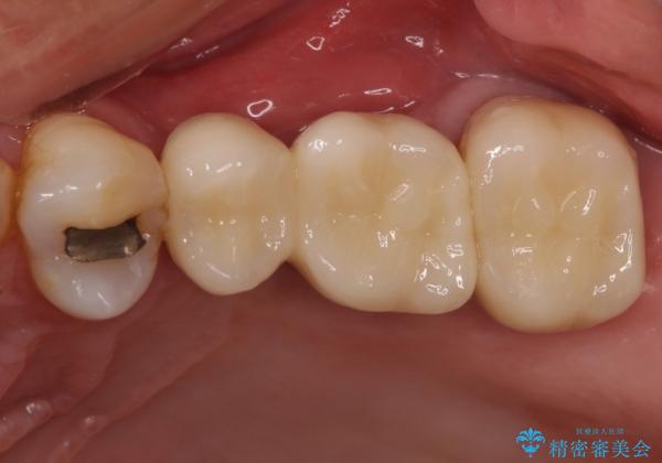 部分矯正期間中はアンカースクリューやフック、ゴムなどが粘膜にあたり、大変な思いをすることになりましたが、そのおかげでインプラント補綴した歯と最後方歯の位置が非常に良好となり、まるでご自身の歯のように咬むことができるようになりました。