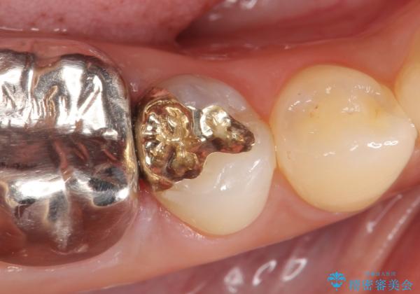 銀歯及び虫歯を除去し、適合に優れたPGA(ゴールド)インレーにて修復を行いました。