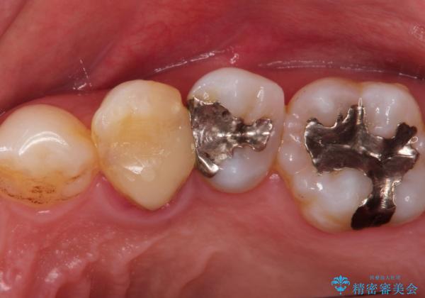 かかりつけ医にて応急的に修復してますが根本的な治療を希望され、矯正的挺出を行ったのち、歯周外科を行い、歯冠修復をしております。