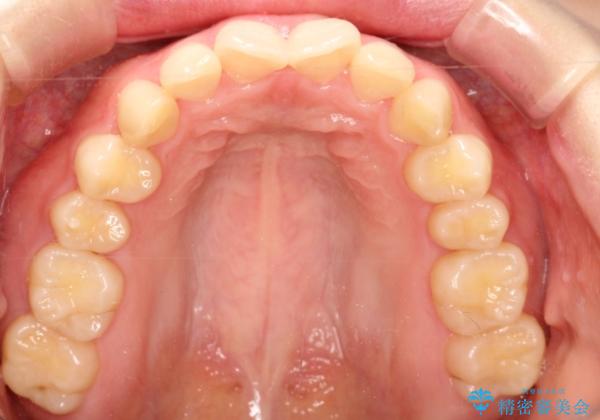 下の前歯が1本少ないこともあり、上顎の歯と歯の間にわずかな隙間を作り歯並びを改善することとしました。