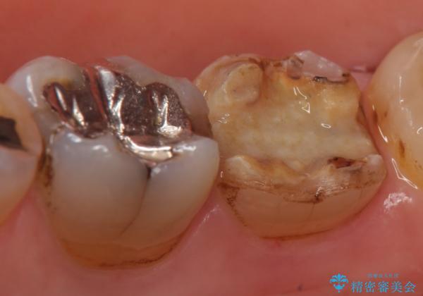 古い樹脂やカリエスを除去後、形を整え、オールセラミッククラウンによる補綴を行いました。