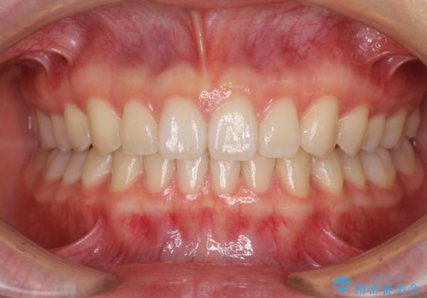 そのため、上下ともに前歯の裏側を細いワイヤーで固定し、その上から保定装置のマウスピースを使用していただくこととしました。