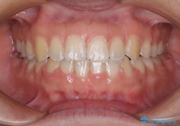 下の前歯が上の前歯を突き上げるように咬合するため、咬み合わせの位置を改善しながら隙間を閉じていきました。